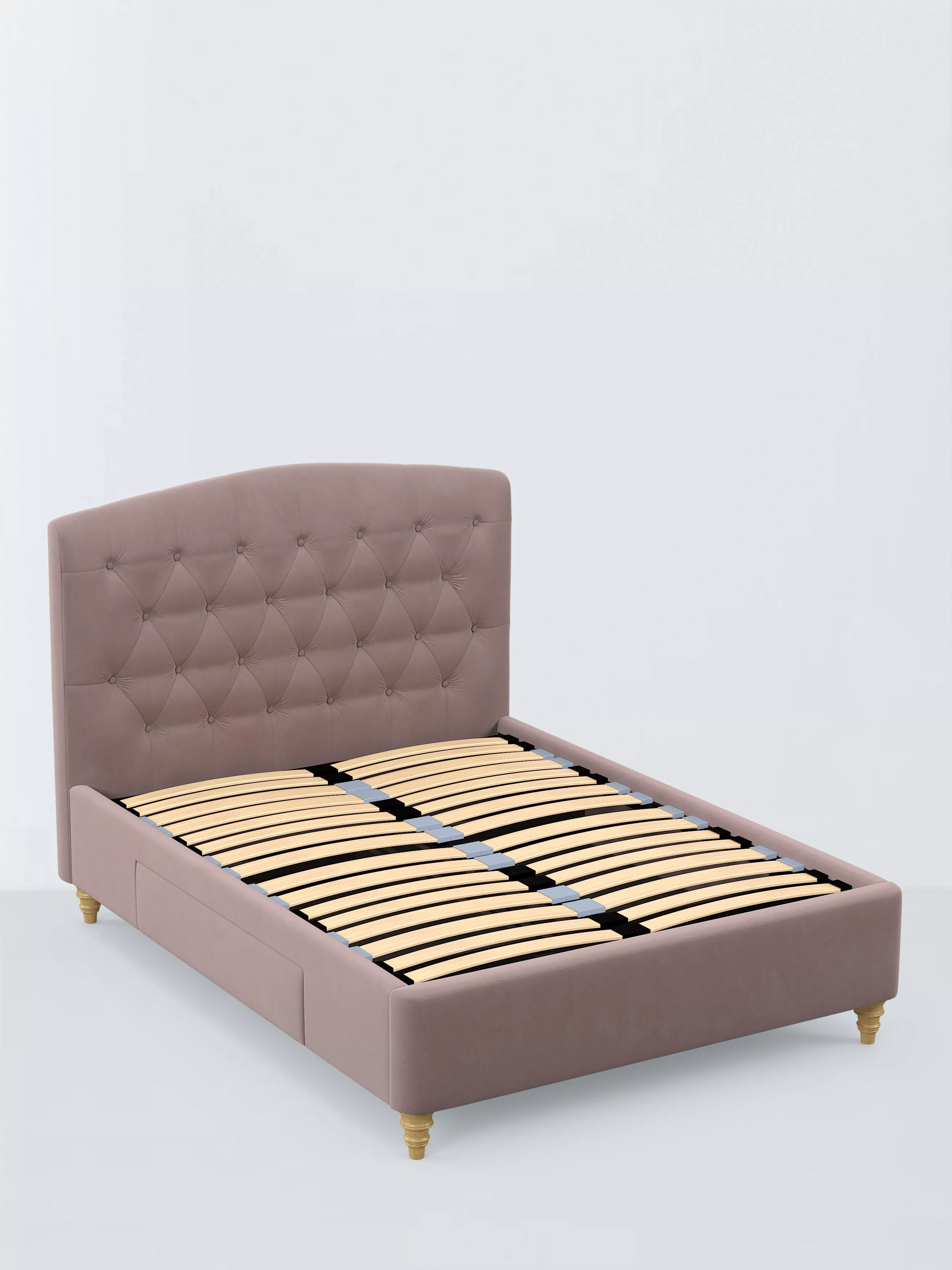 The design of our Rue bed frame is timeless and sophisticated. We've included button detailing to the headboard and two spacious drawers that are ideal for extra storage. We've added sprung Smart Slats to the base which provide enhanced support where you need it most.