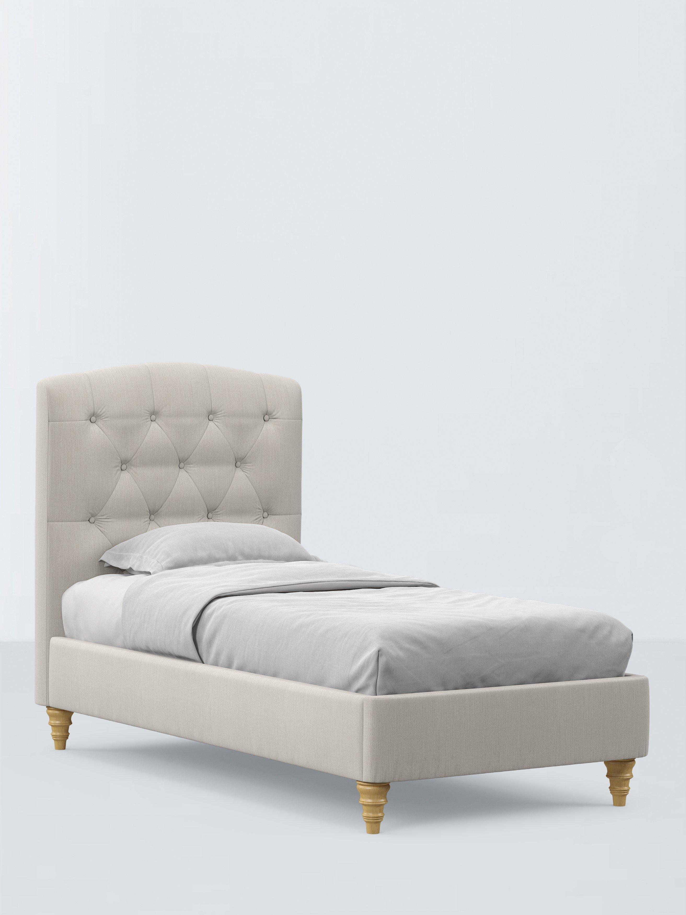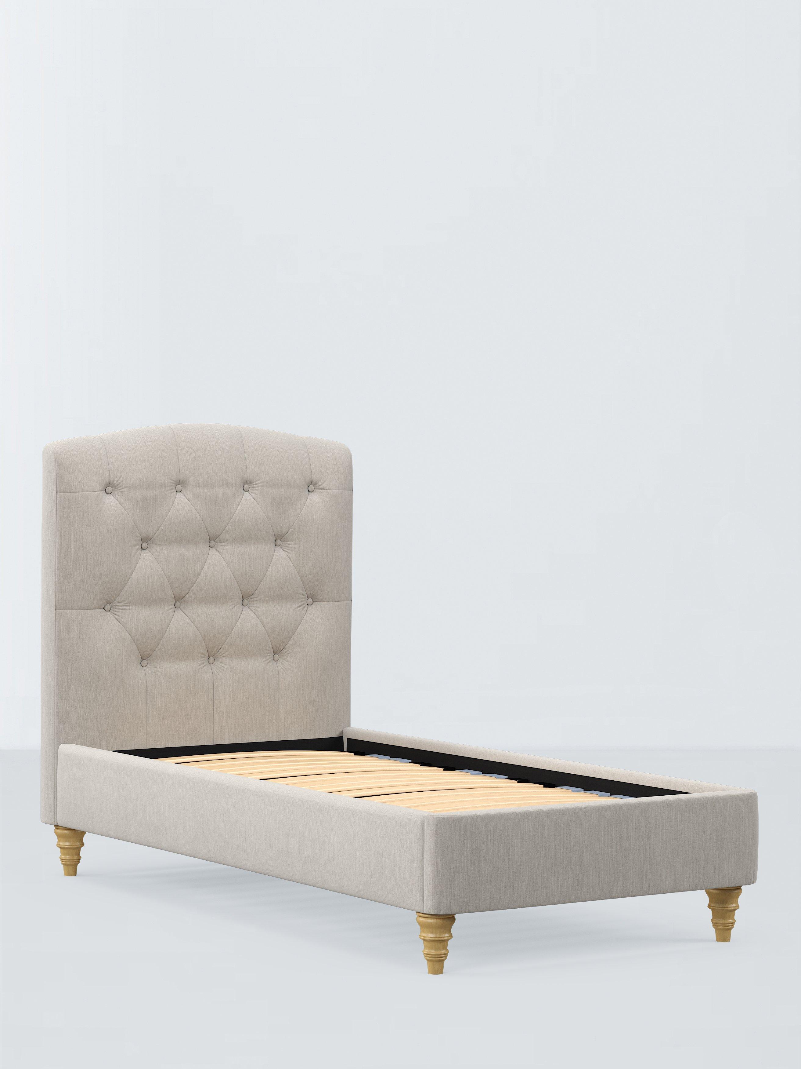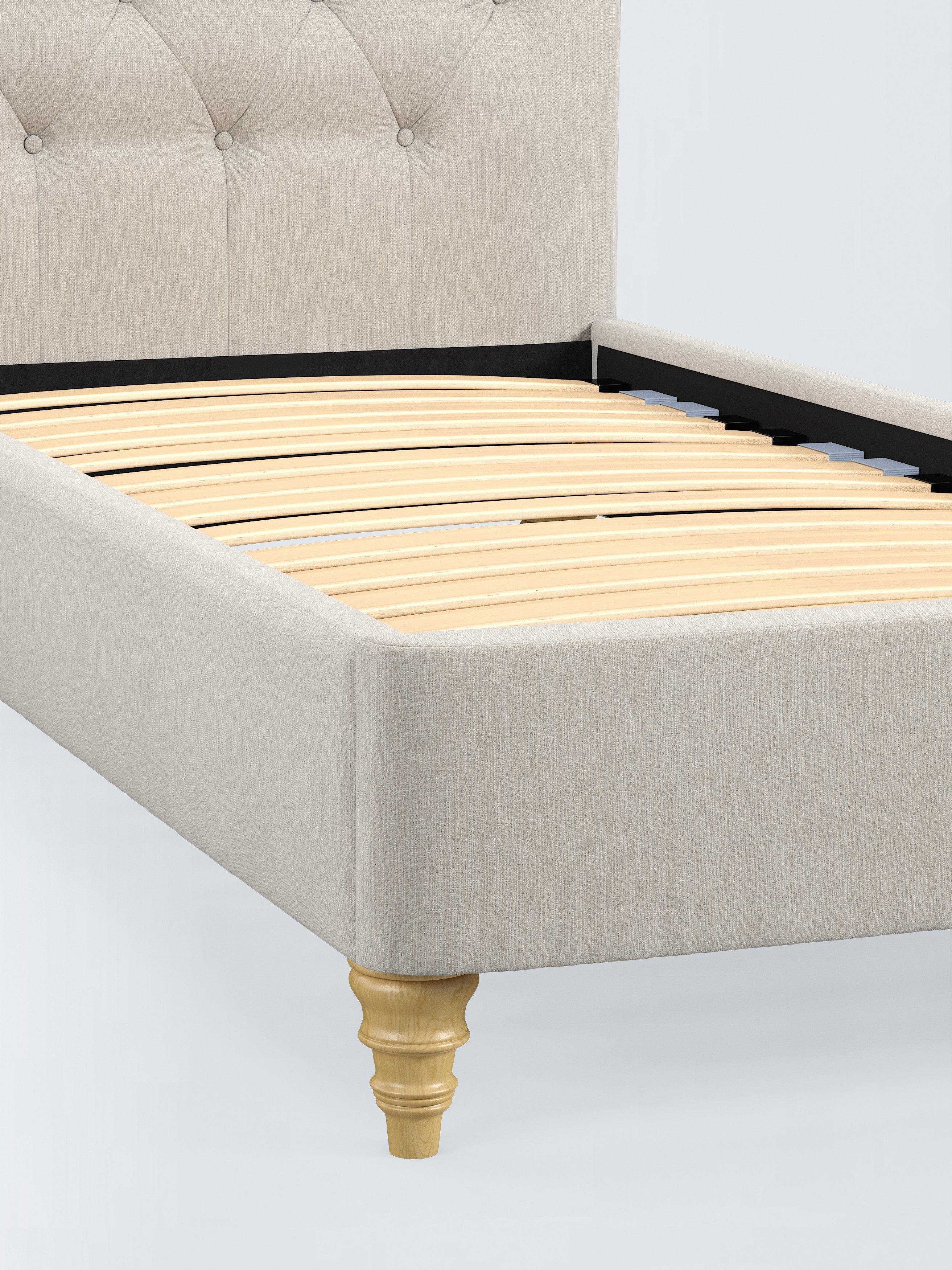 The design of our Rue bed frame is timeless and sophisticated. We've added button detailing to the headboard and supported the frame with low, twisted legs made from high quality wood. There are also supportive sprung slats in the base.