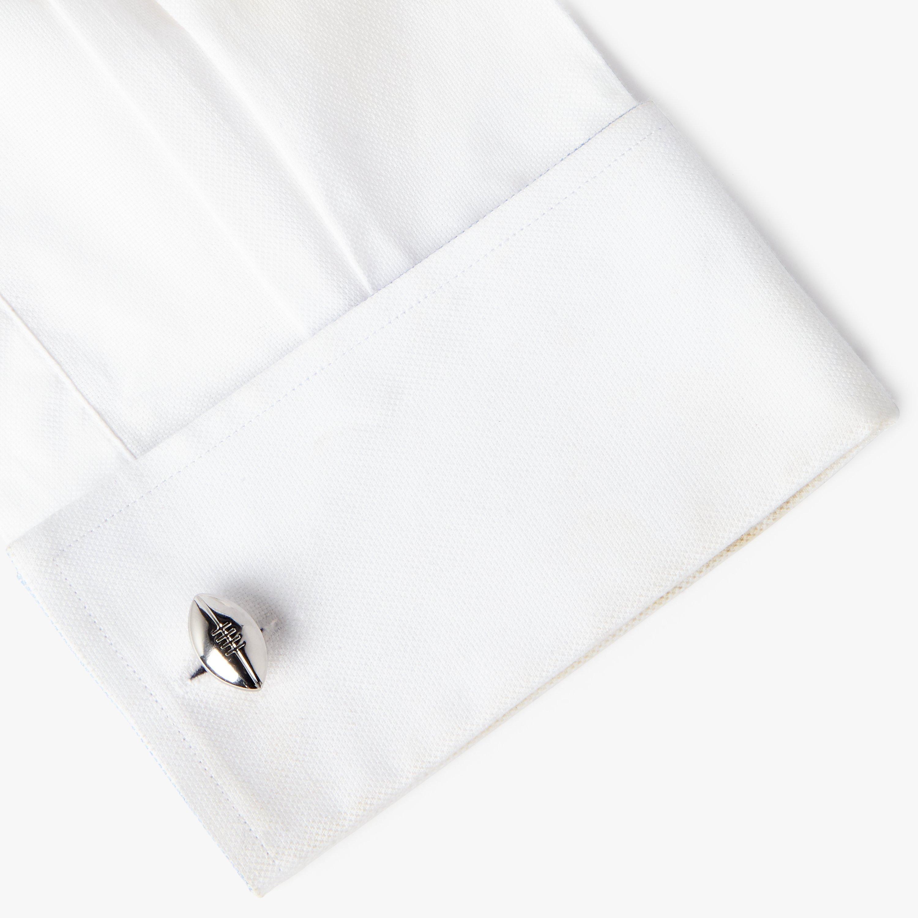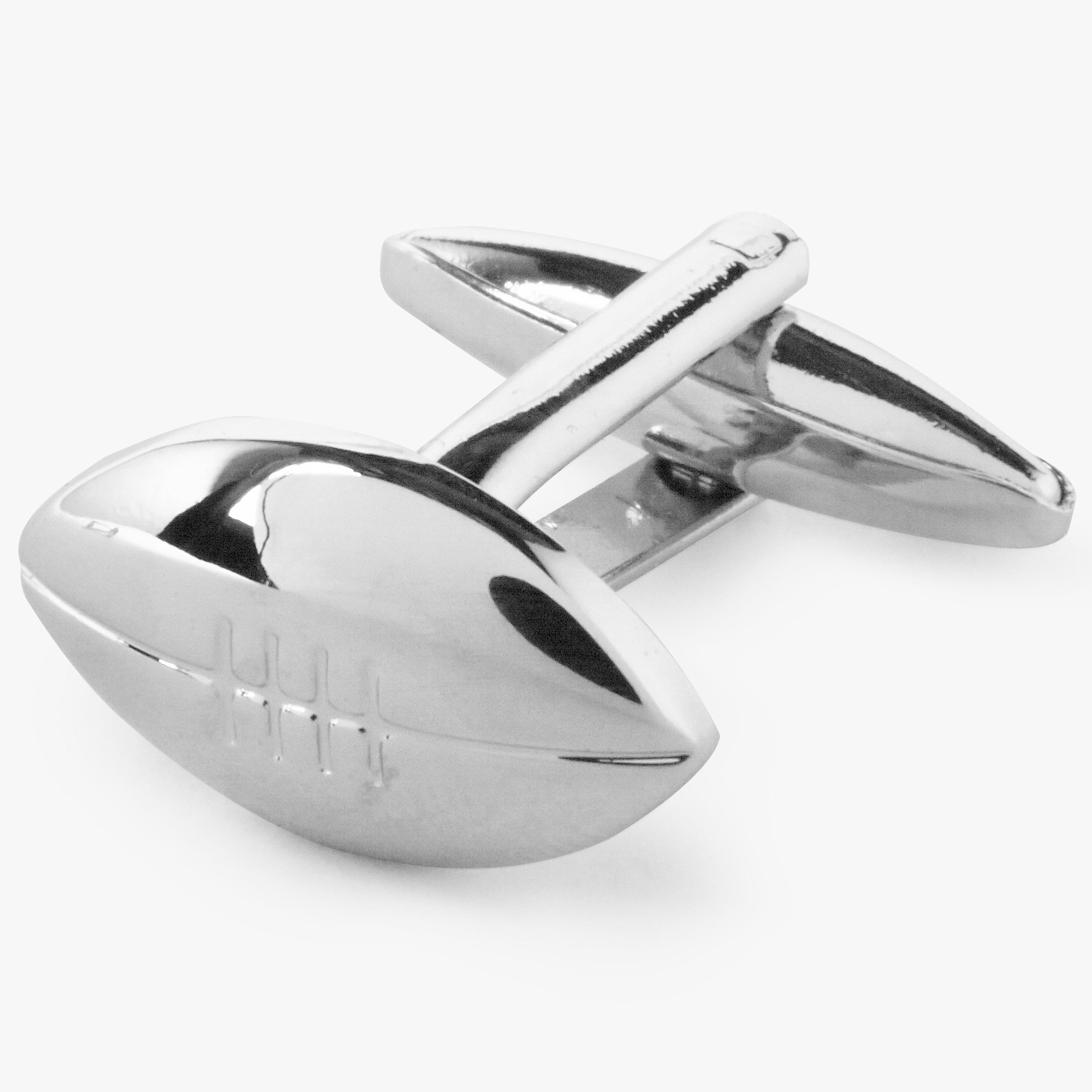 Crafted from lustrous metal in a quirky rugby ball design, they attach at the back with a swivel T-bar fastening.