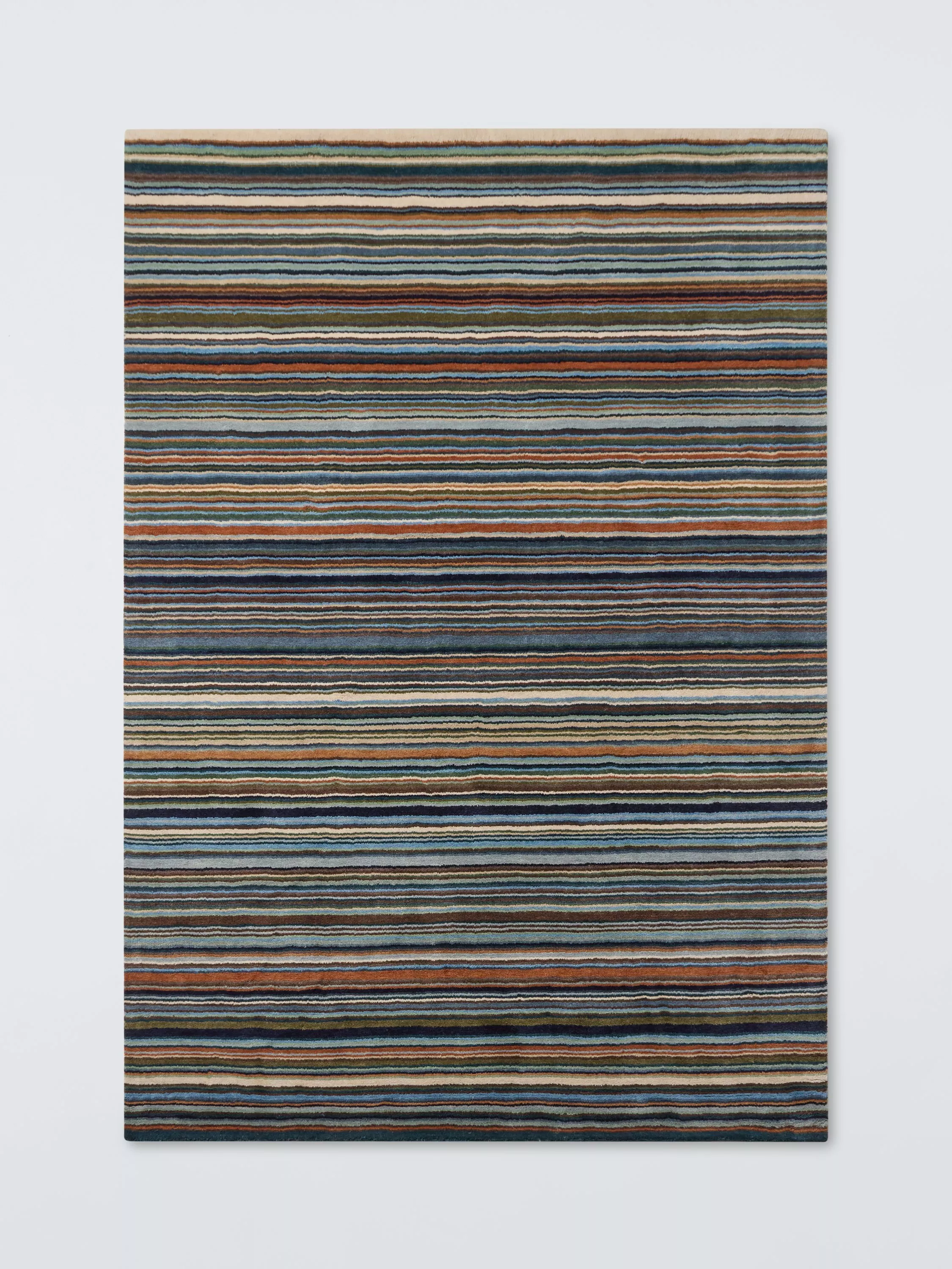 The rich, varied tones give off a dark and moody vibe, allowing you to tap into the chic hotel trend by emulating a city boutique. The striped pattern runs parallel across the wool rug, allowing for a rich colour palette that has a gradient design. The piece is hand knotted in India, giving you a durable and attractive floor covering for your home.