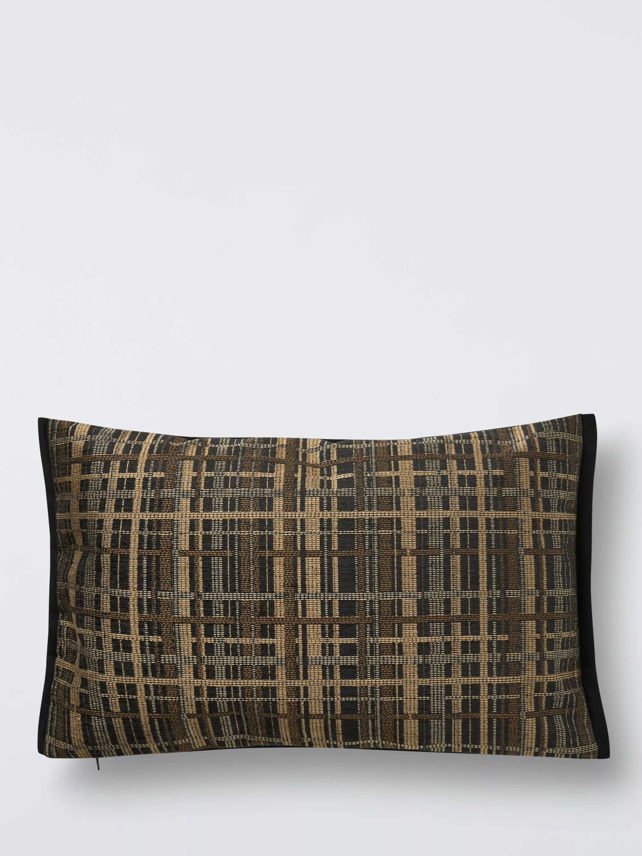 The deep shades of this rustic check woven cushion set the tone for cosy evenings on the sofa.