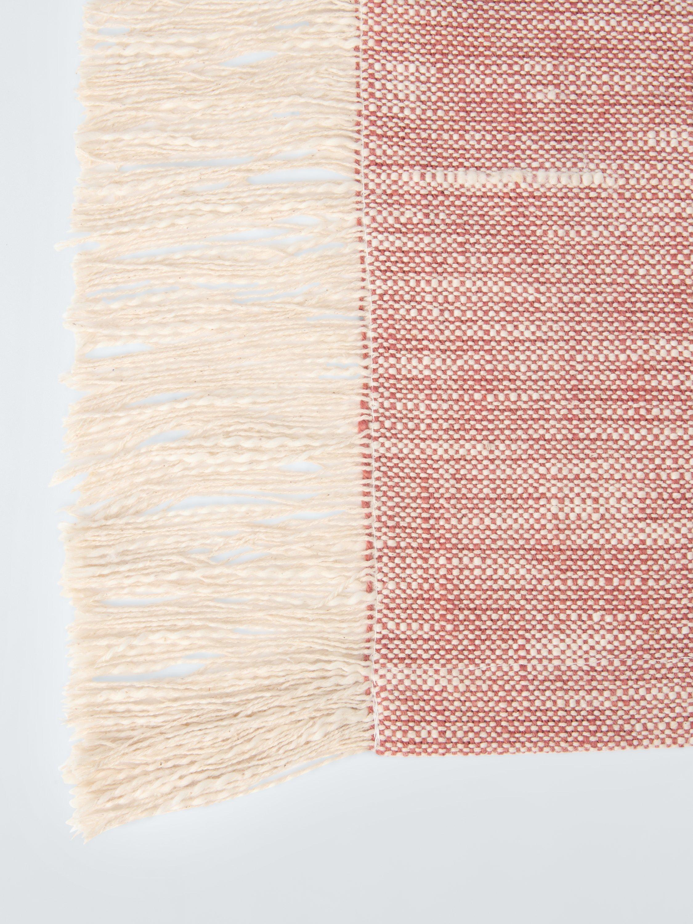 A textured weave creates a sophisticated visual rhythm on this table runner, finished with fringed ends. The cotton-rich blend provides a hardwearing base with a soft handle and a graceful drape.