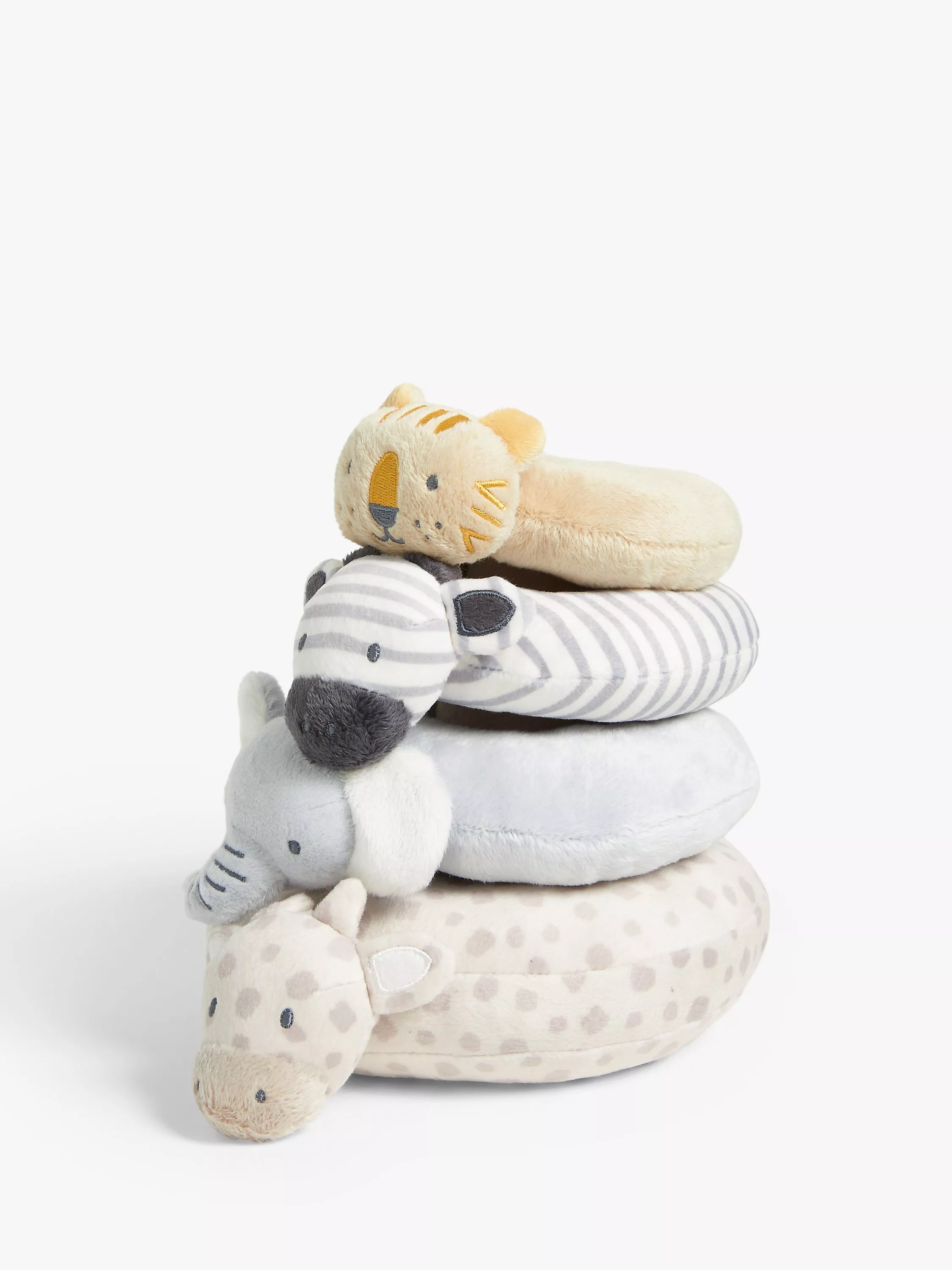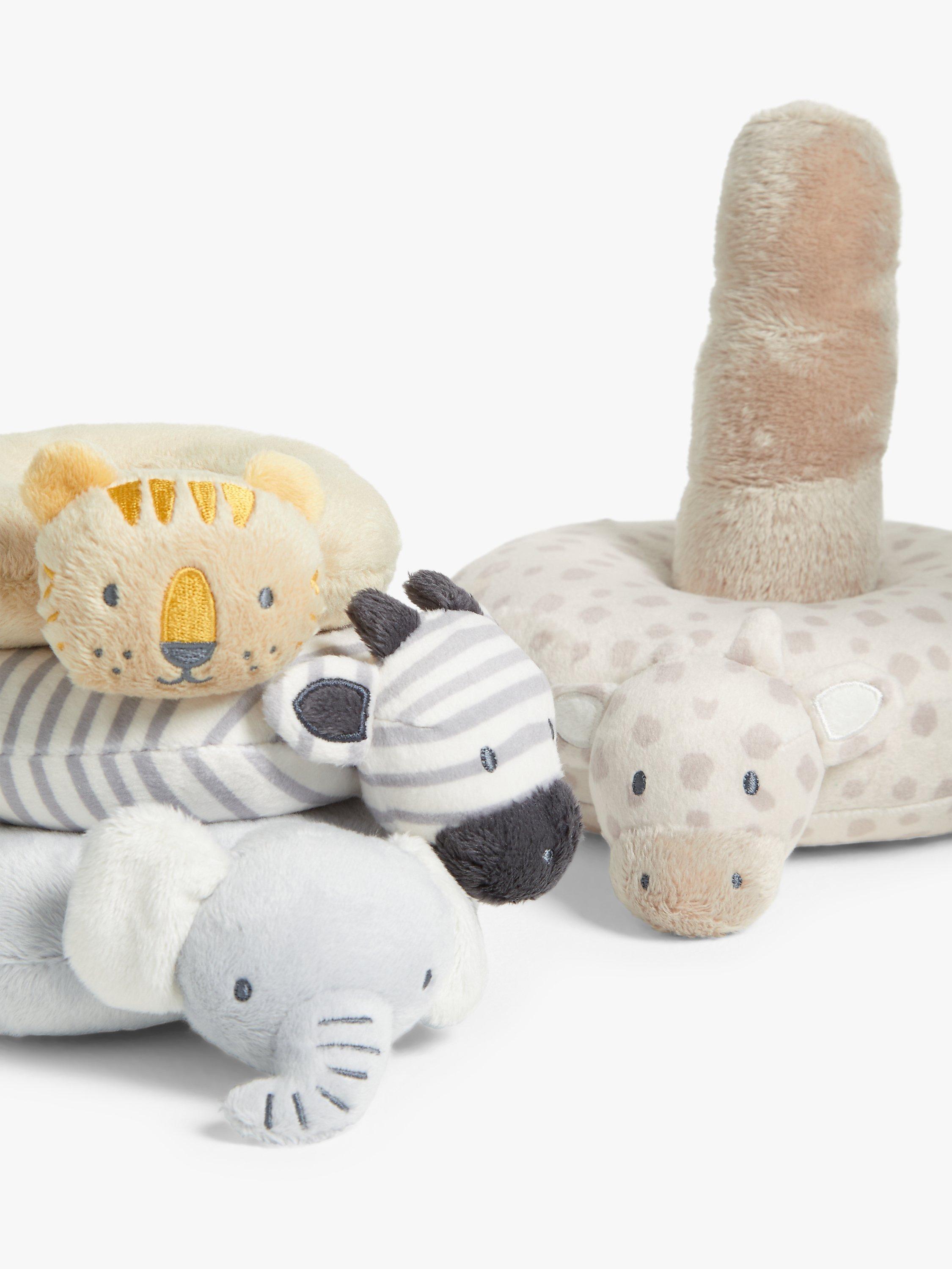 Kept soft so it's lovely to touch and safe to play with, the rings take the shape of a lion, zebra, elephant, and giraffe. The mix of colours and sizes help keep little ones interested, sparking their imagination and developing their coordination and problem-solving.