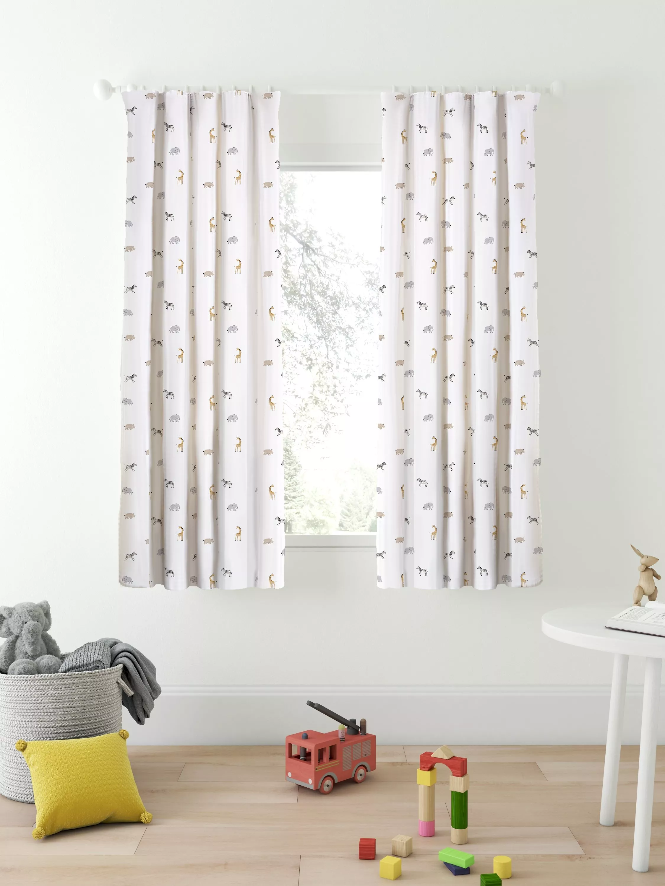 Made from cotton and designed with a ditsy Safari & Friends print, these curtains are blackout lined to block out any distracting sun beams or street lights. The width stated refers to each curtain in the pair.