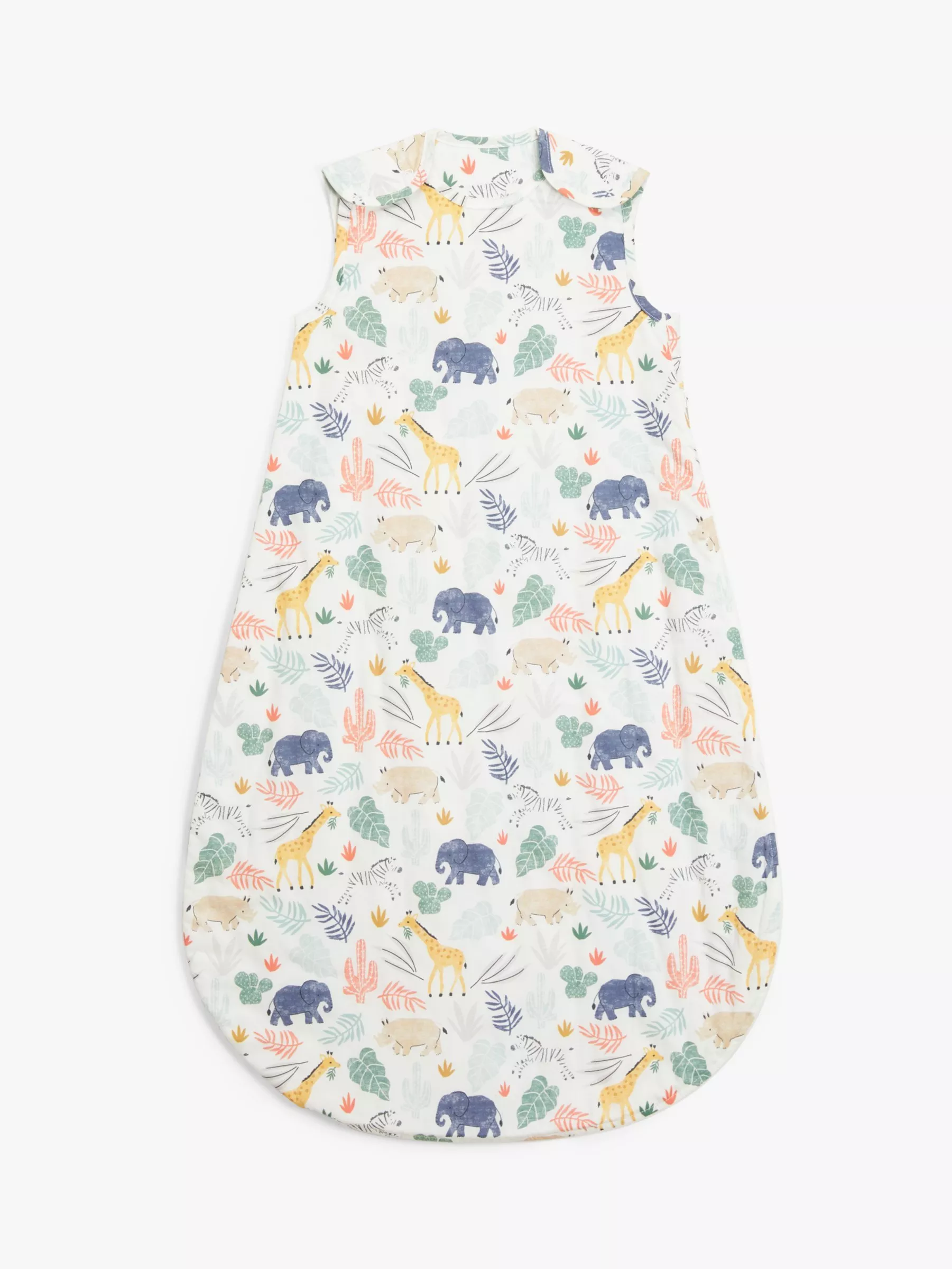 Made from pure, breathable, cotton, this cosy sleeping bag unzips from the bottom to keep your little ones warm at the top with minimum disturbance - making night-time changes a dream. They'll love the adorable safari animal print too!