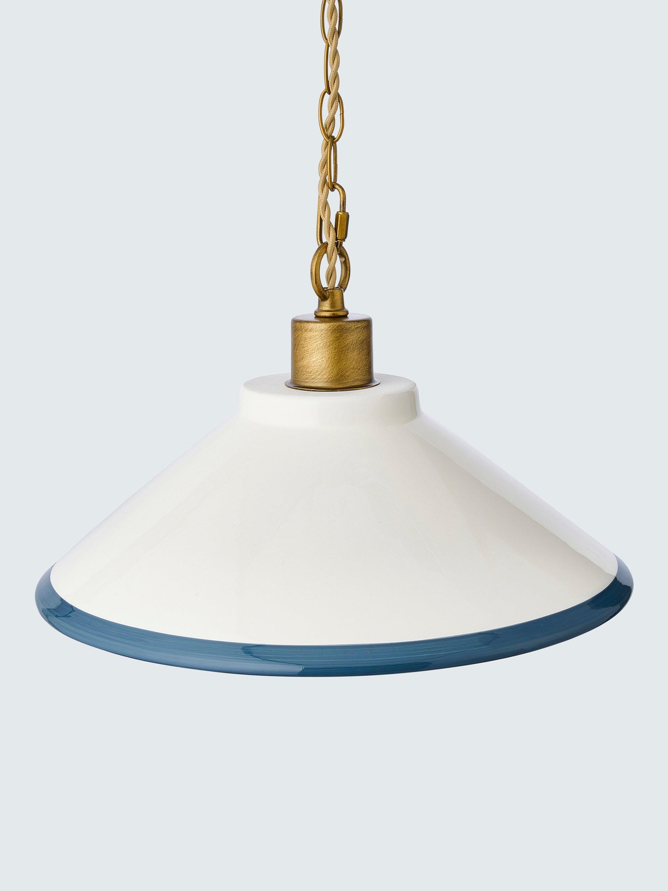 Our Salcombe Stripe pendant light brings to life a classic and timeless nautical look. Completed with weathered brass-effect plating and a hand-painted stripe on a softly glazed earthenware shade, the understated elegance of this light speaks for itself.