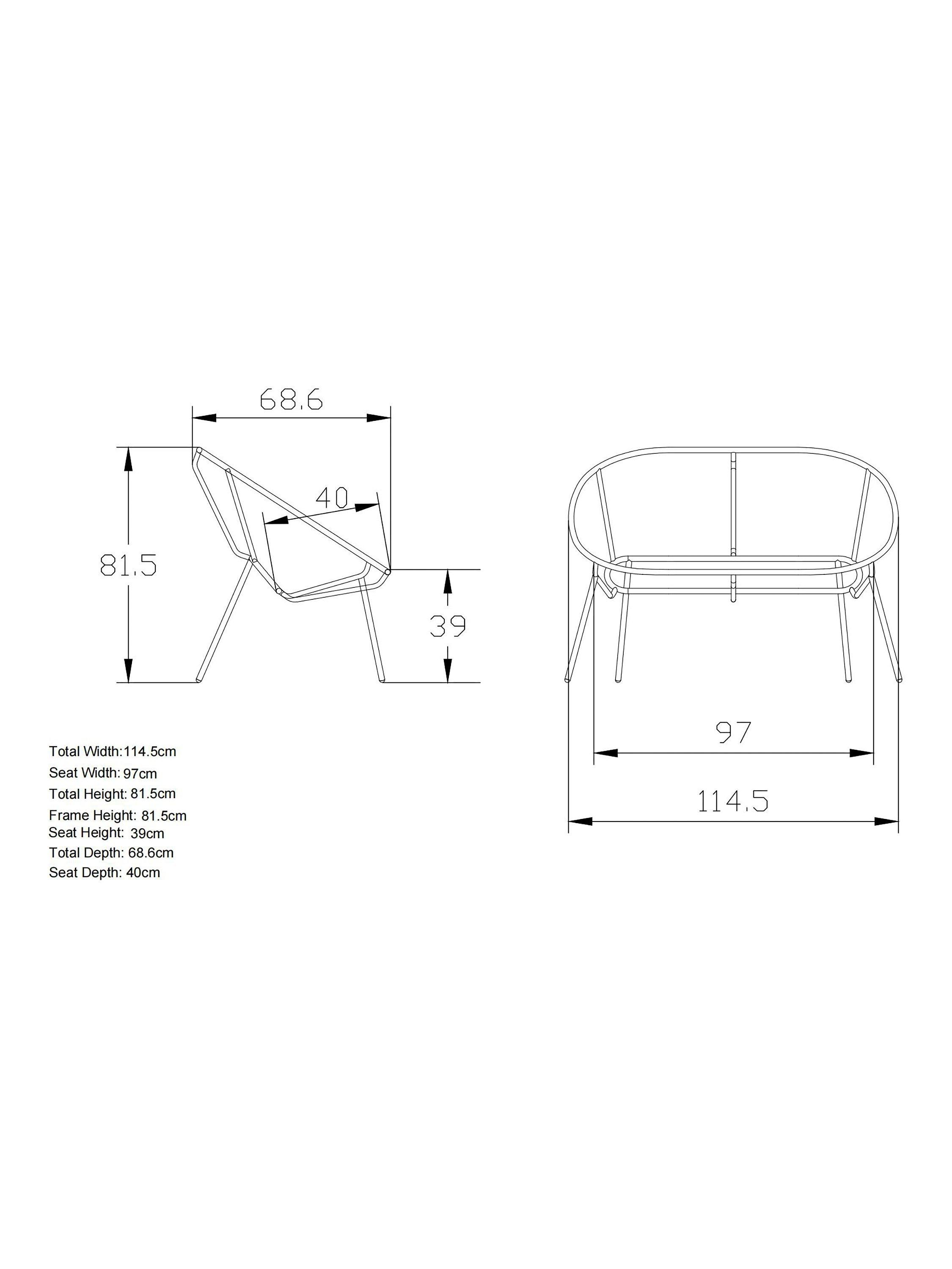The steel legs and frame are sturdy and able to withstand a weight of up to 50 stone (320kg), exceeding the industry standard. The robust design allows the rattan to form its eye-catching shape, with a dense weave ensuring comfortable support. The sofa arrives fully assembled, ready for immediate use.
