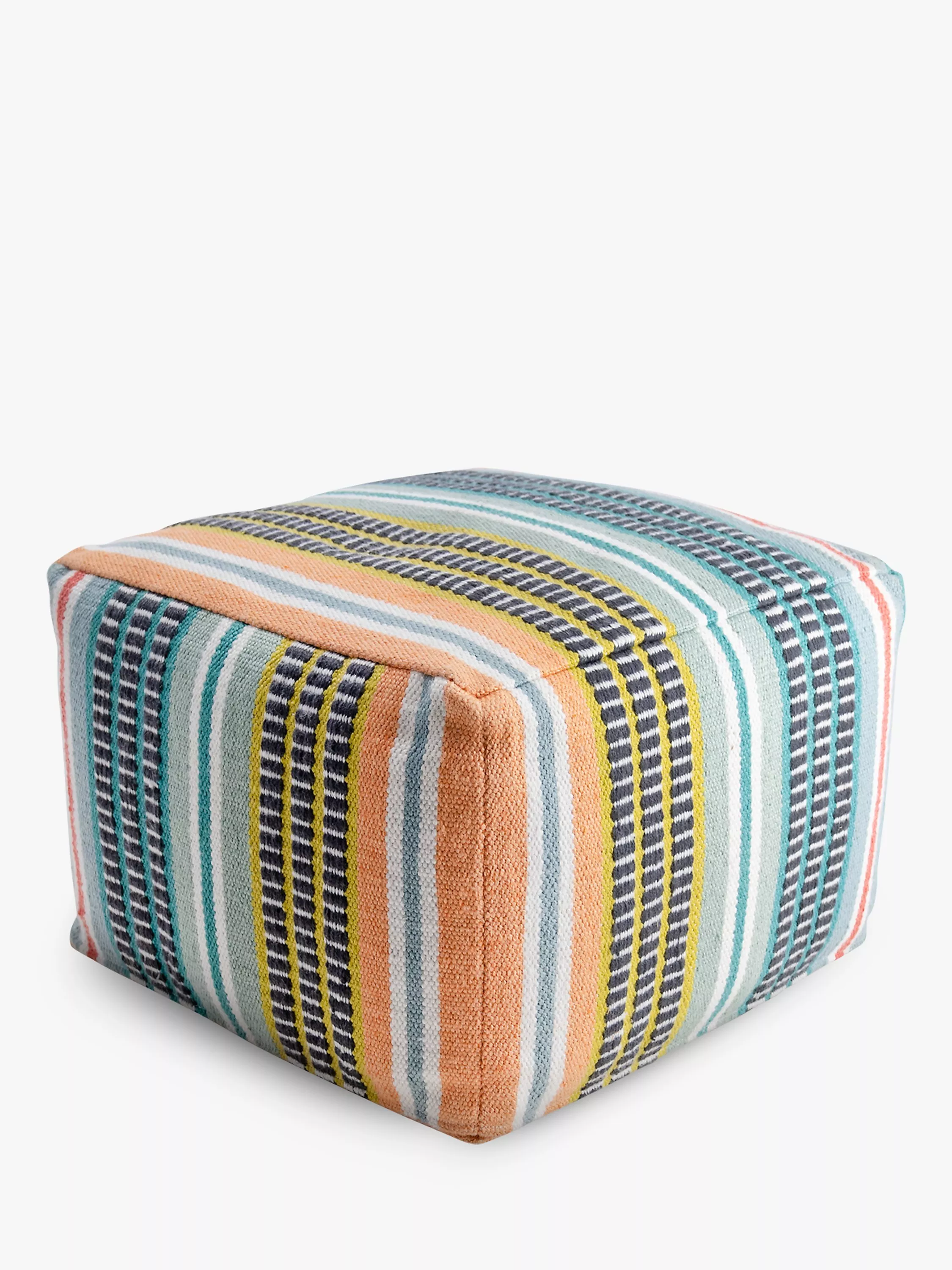 Get comfy in your garden or on your patio with this colourful, hardwearing pouffe. It can be used as both a seat and a footstool.