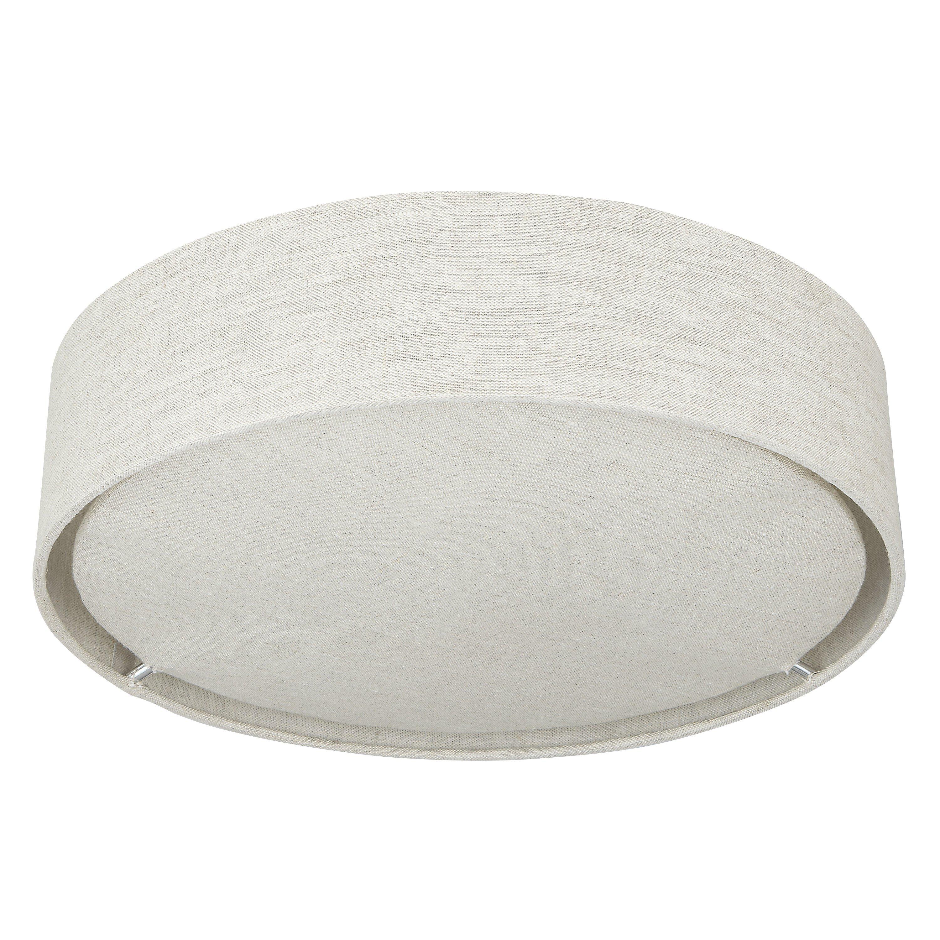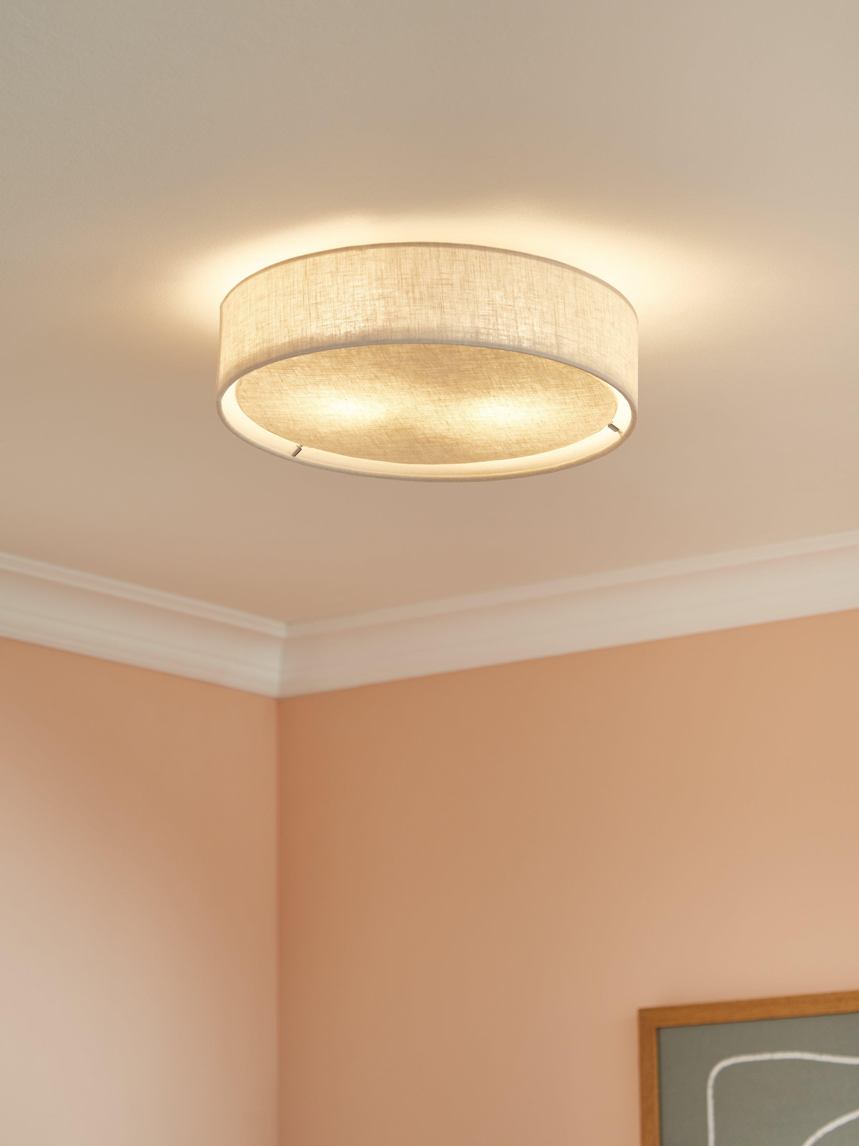 A chic alternative to a flush-mounted light, made from natural linen, this fixture is airy and harmonious. It features a frosted diffuser for gentle illumination. Ideal for rooms with lower ceilings.