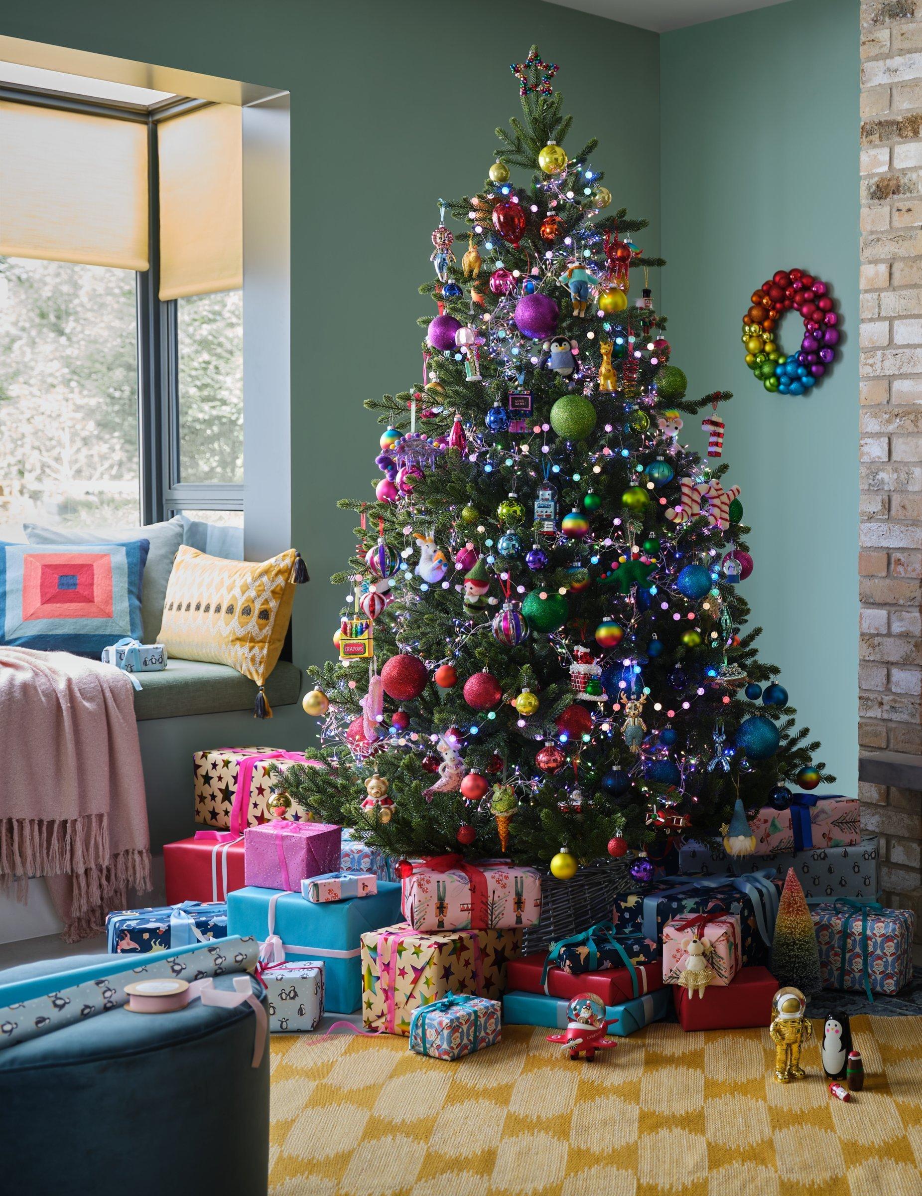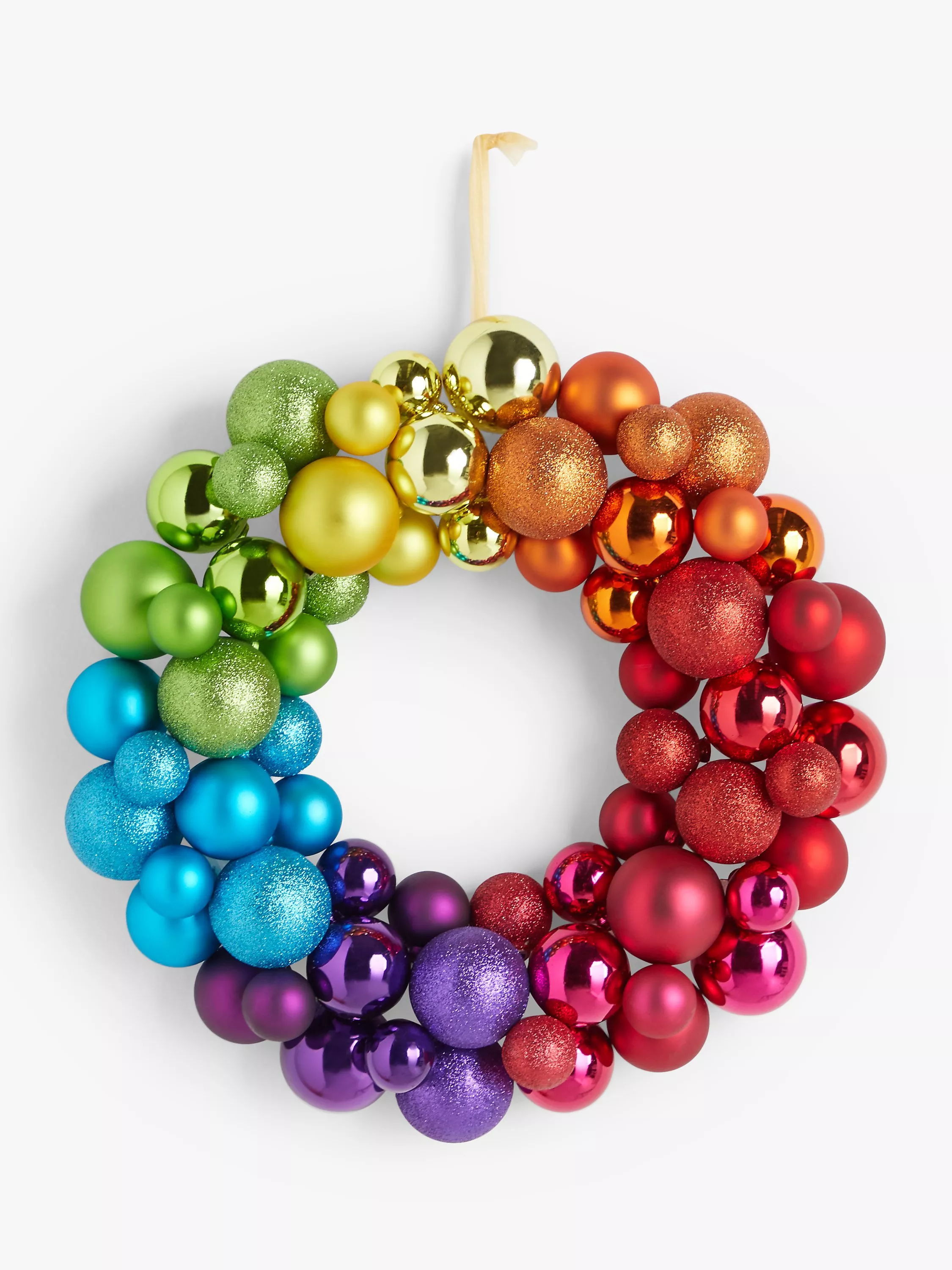 Put colour into Christmas with this fabulous rainbow bauble wreath.