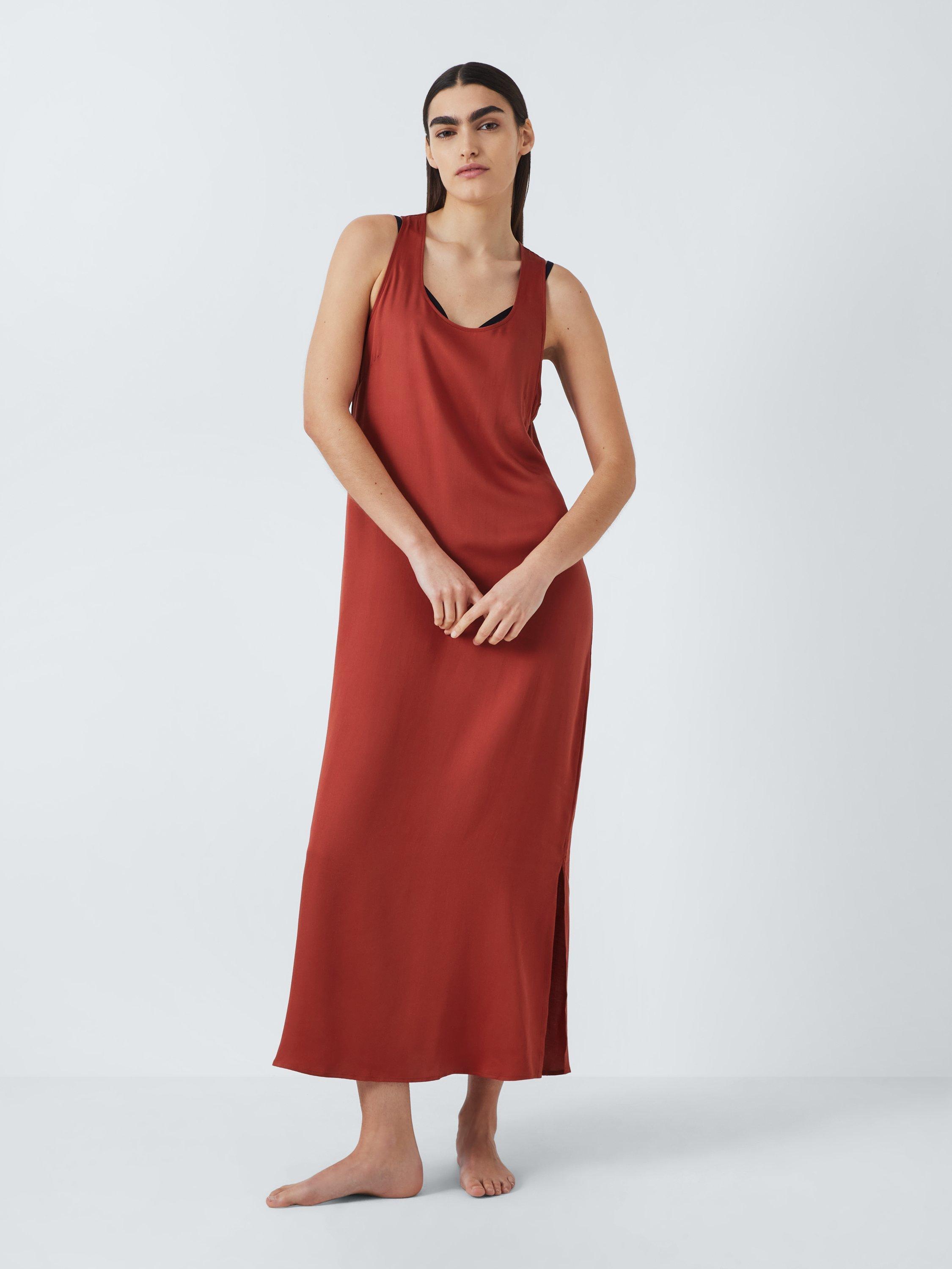 Nights don't get more fuss-free than this. A sleeveless racerback chemise with self fabric binding all over front, back, and armhole.