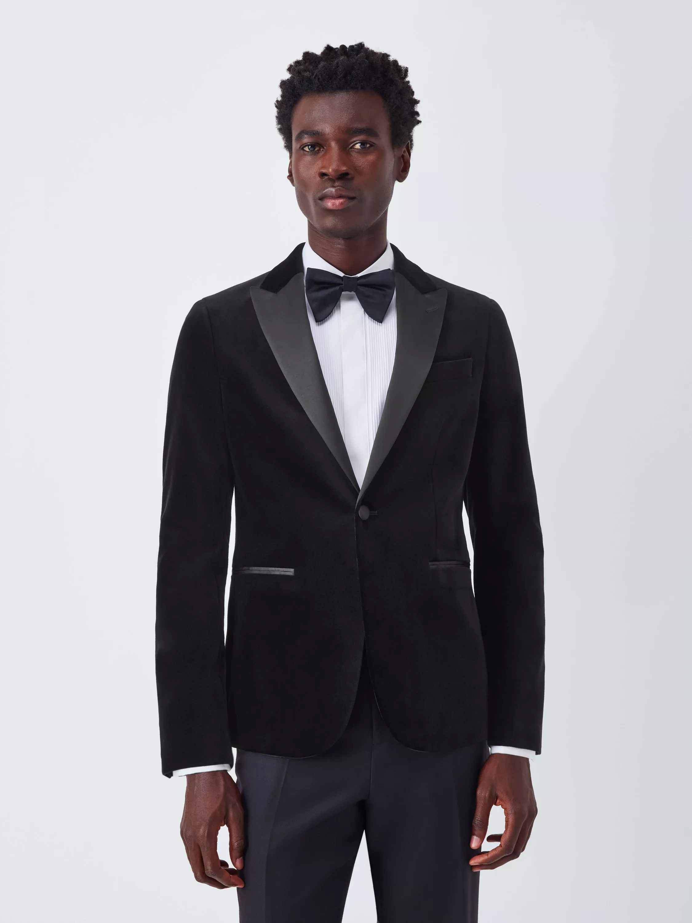 This velvet dinner jacket is styled with satin peak lapels, jet pockets at the hip and a single welt pocket at the chest. It also benefits from satin buttons and double vents at the back.