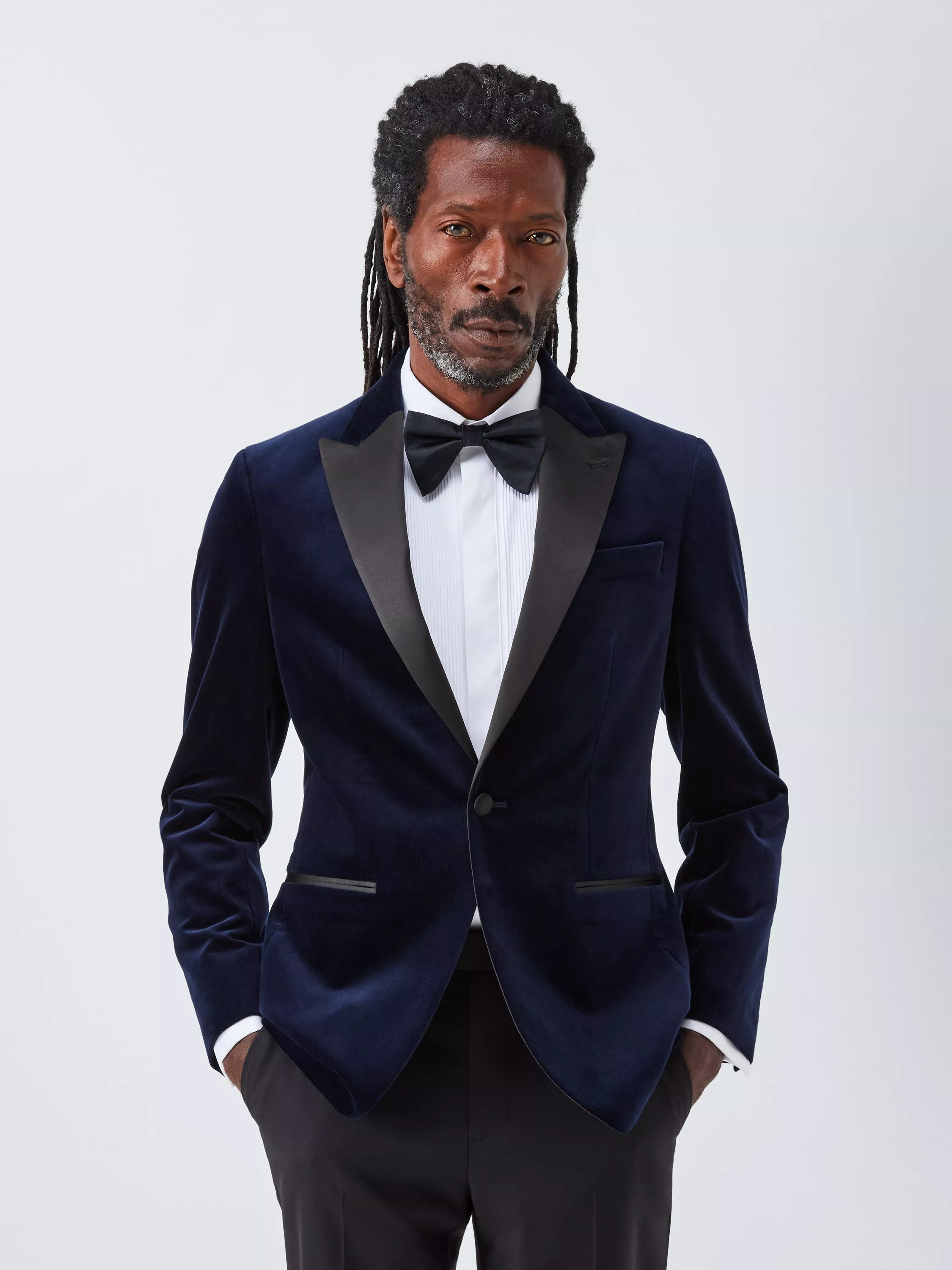 This velvet dinner jacket is styled with satin peak lapels, jet pockets at the hip and a single welt pocket at the chest. It also benefits from satin buttons and double vents at the back.