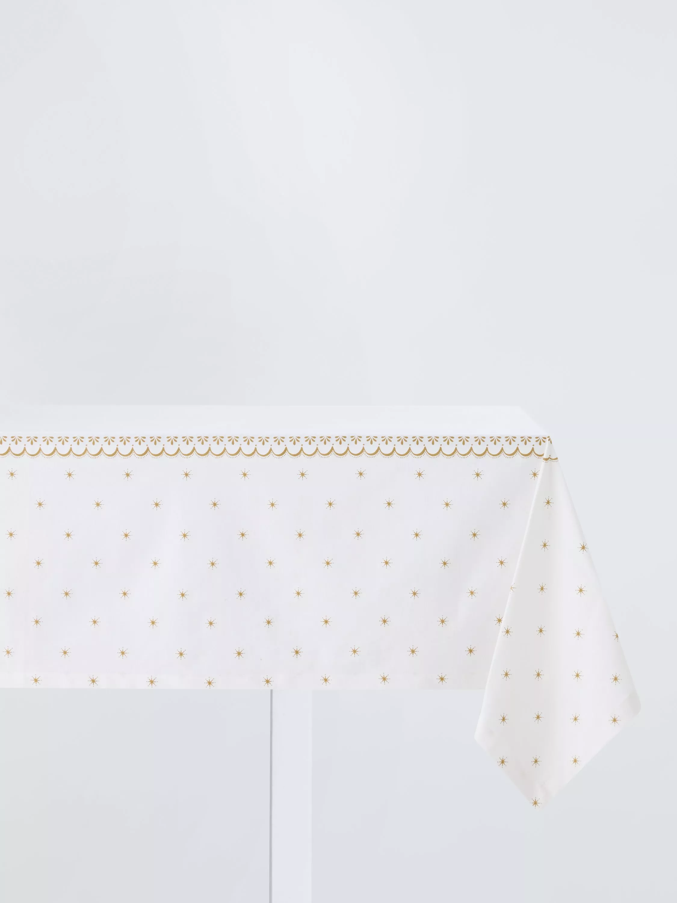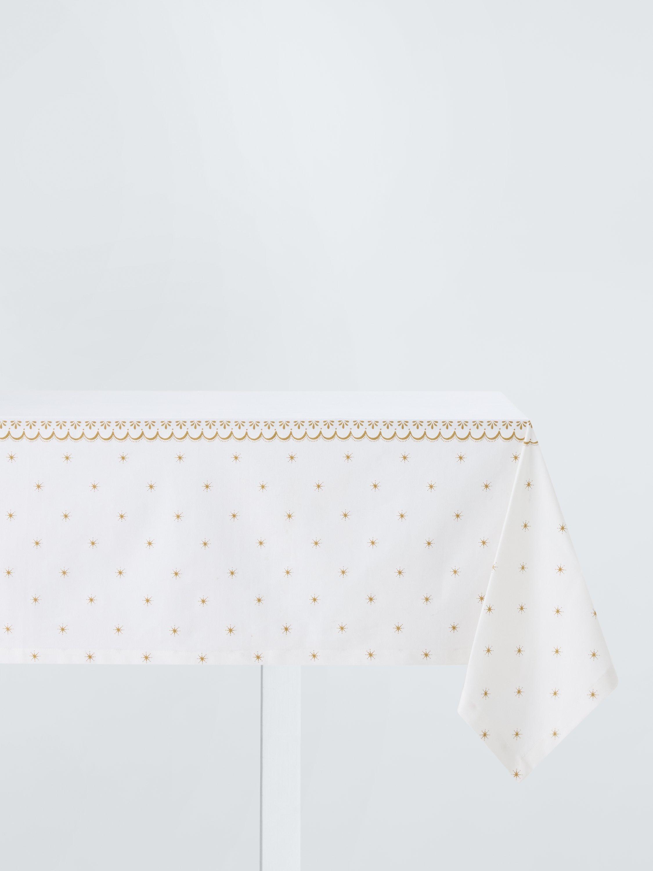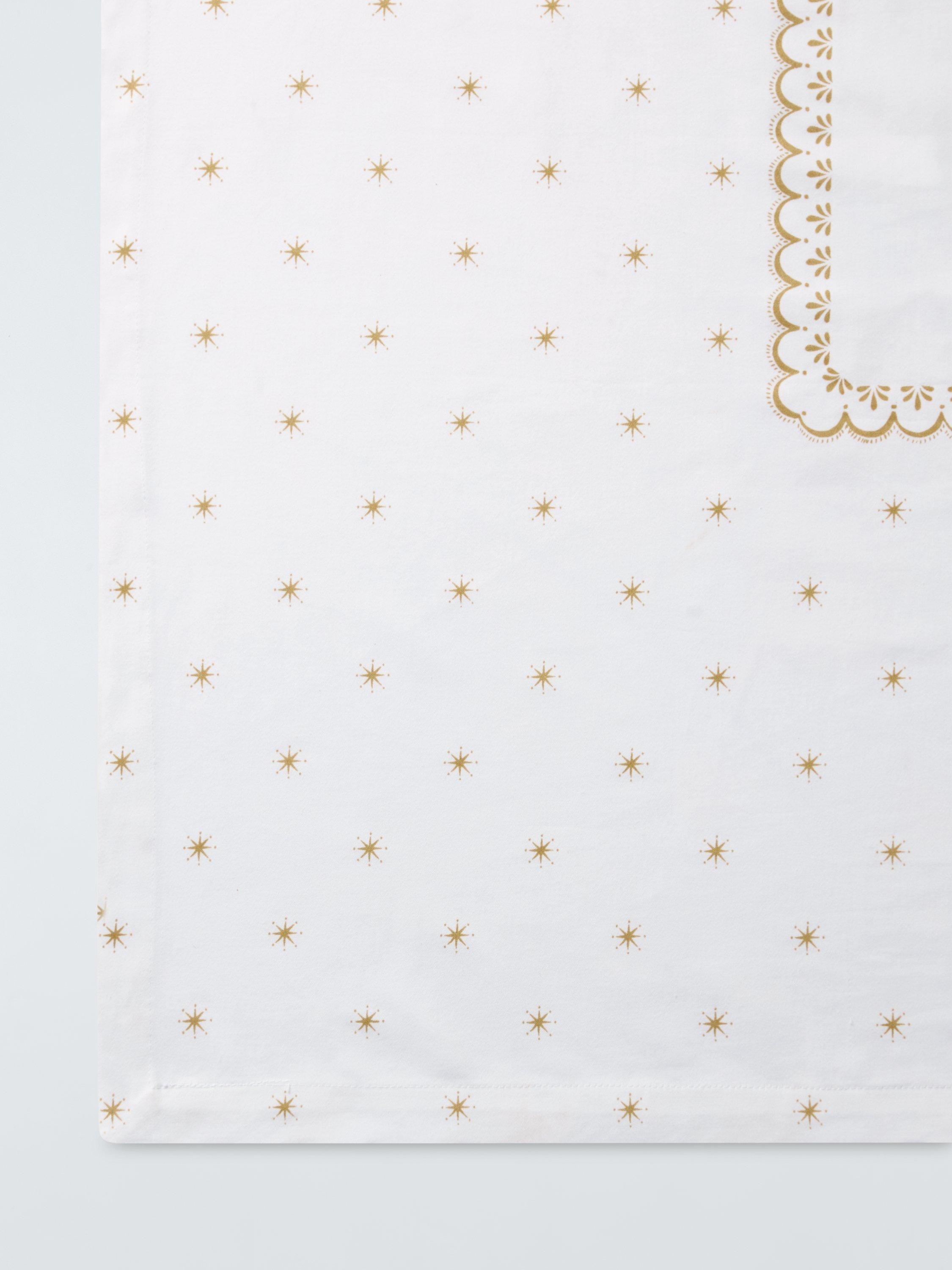 Tablecloth with a scalloped border and festive star motifs. Made of pure cotton, it's machine washable for easy cleaning.