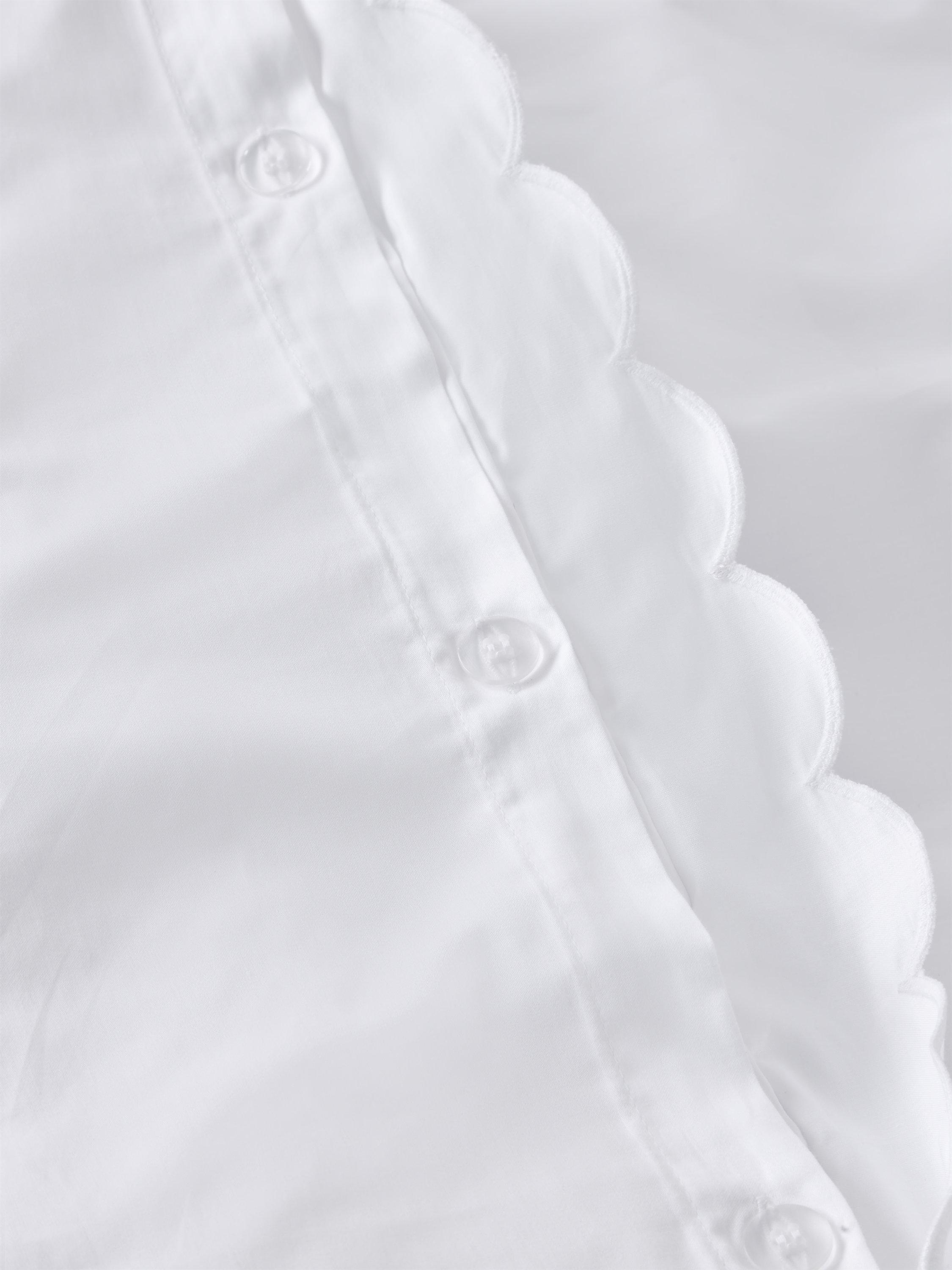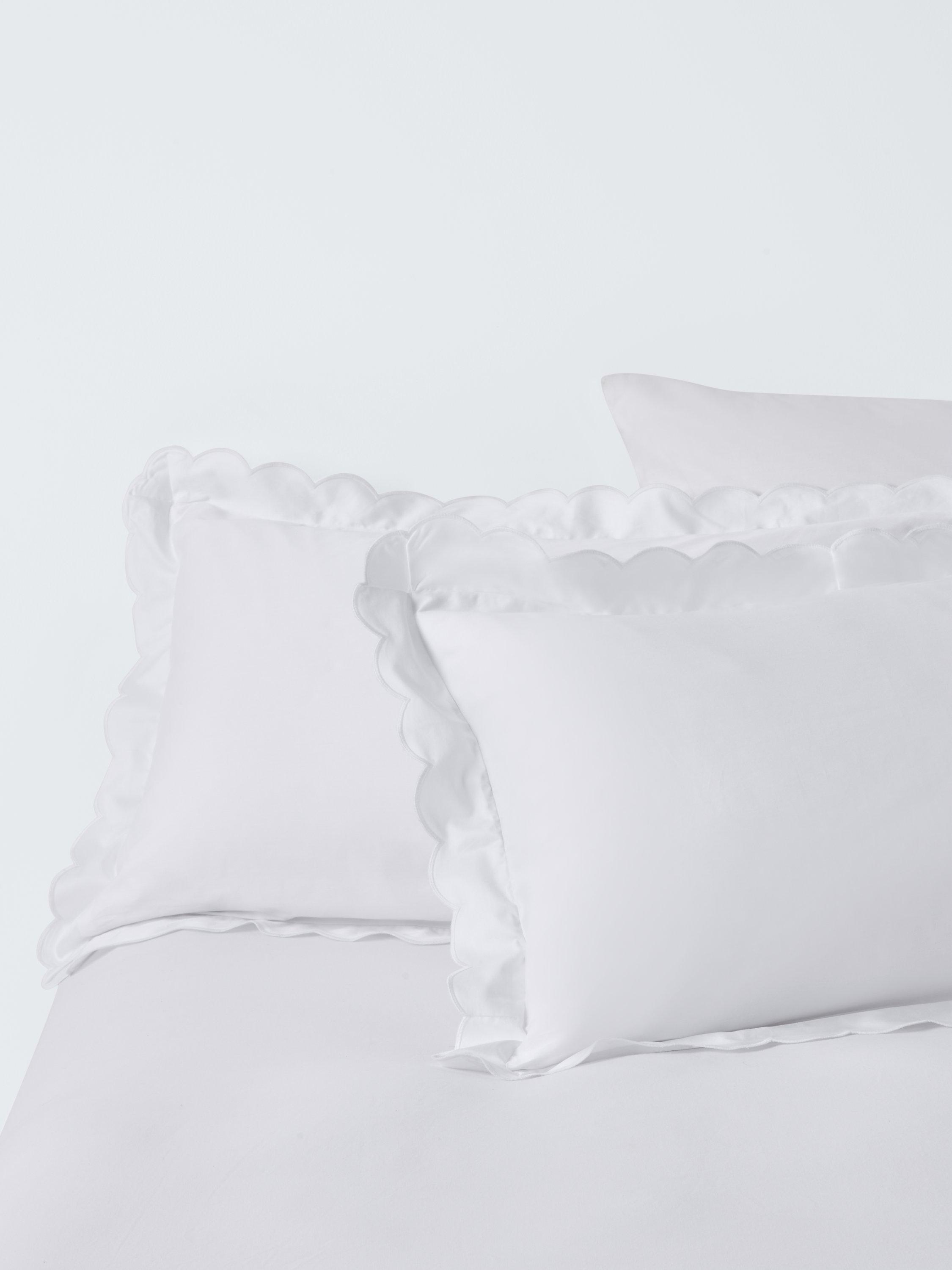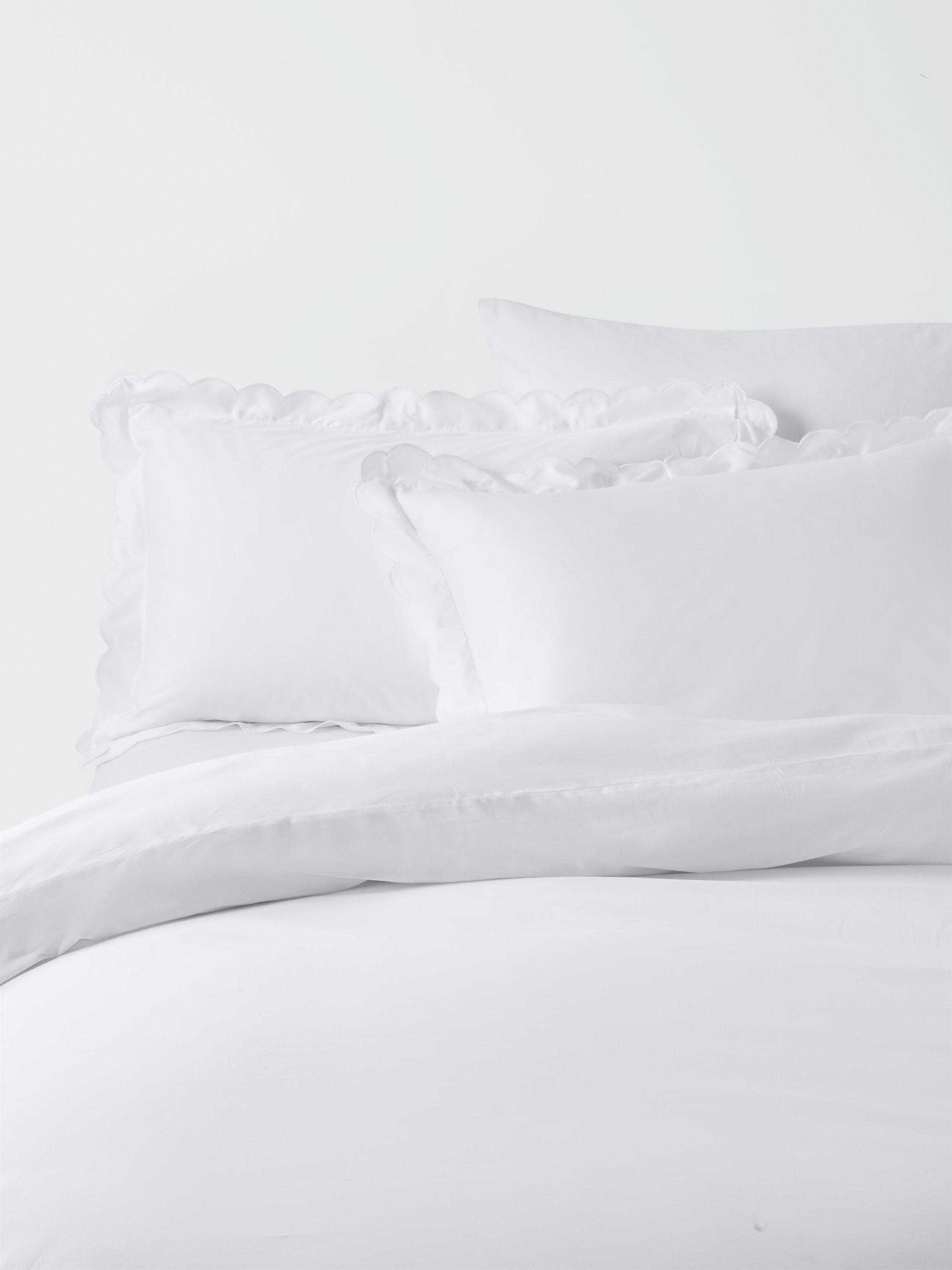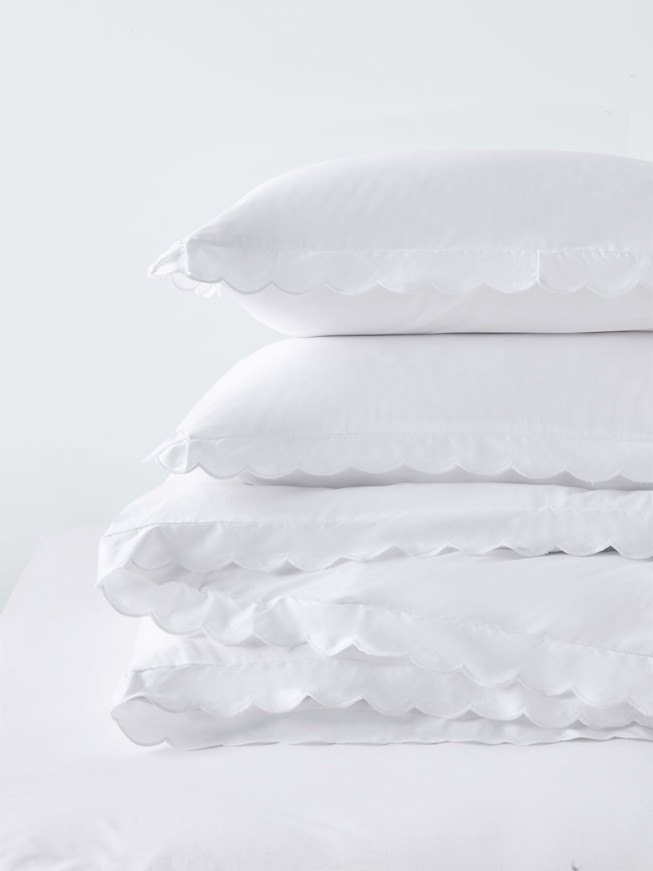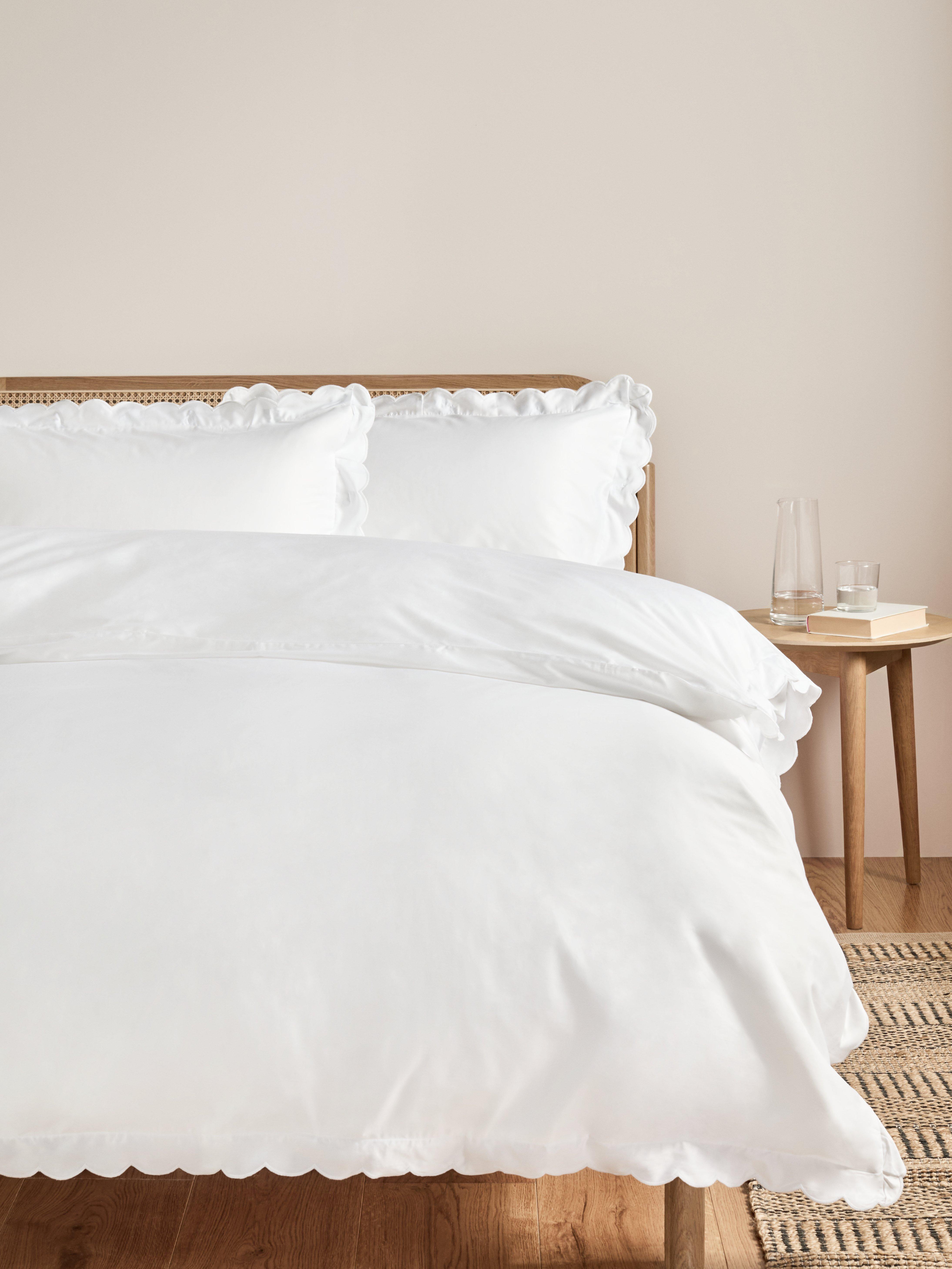 White cotton bedding trimmed with delicate scallop embroidery. Our range of Soft & Silky duvet covers is crafted from high-quality organic Egyptian cotton. Both duvet covers and pillowcases come with pretty scalloped trims.