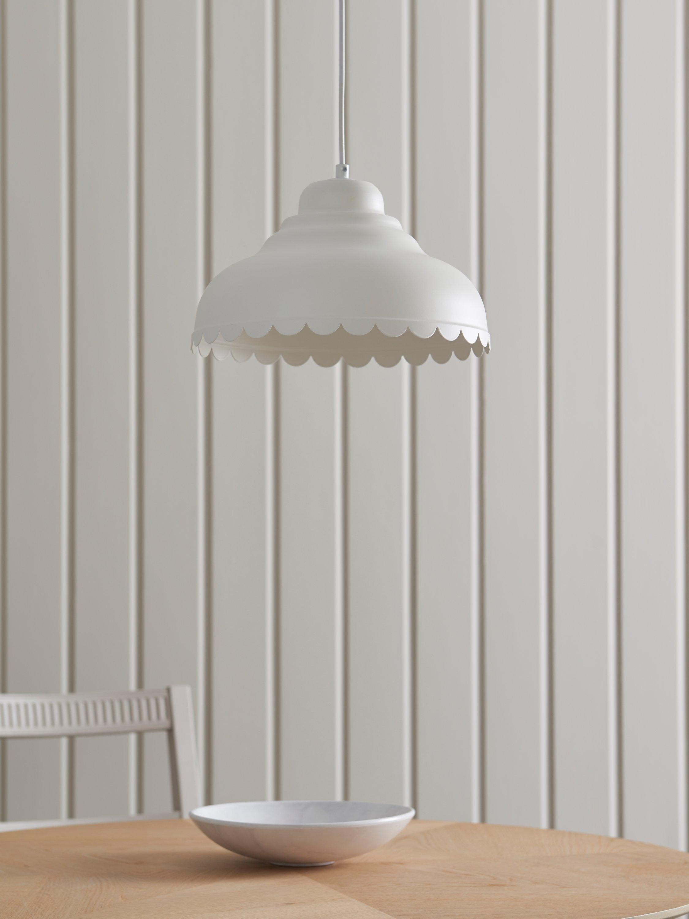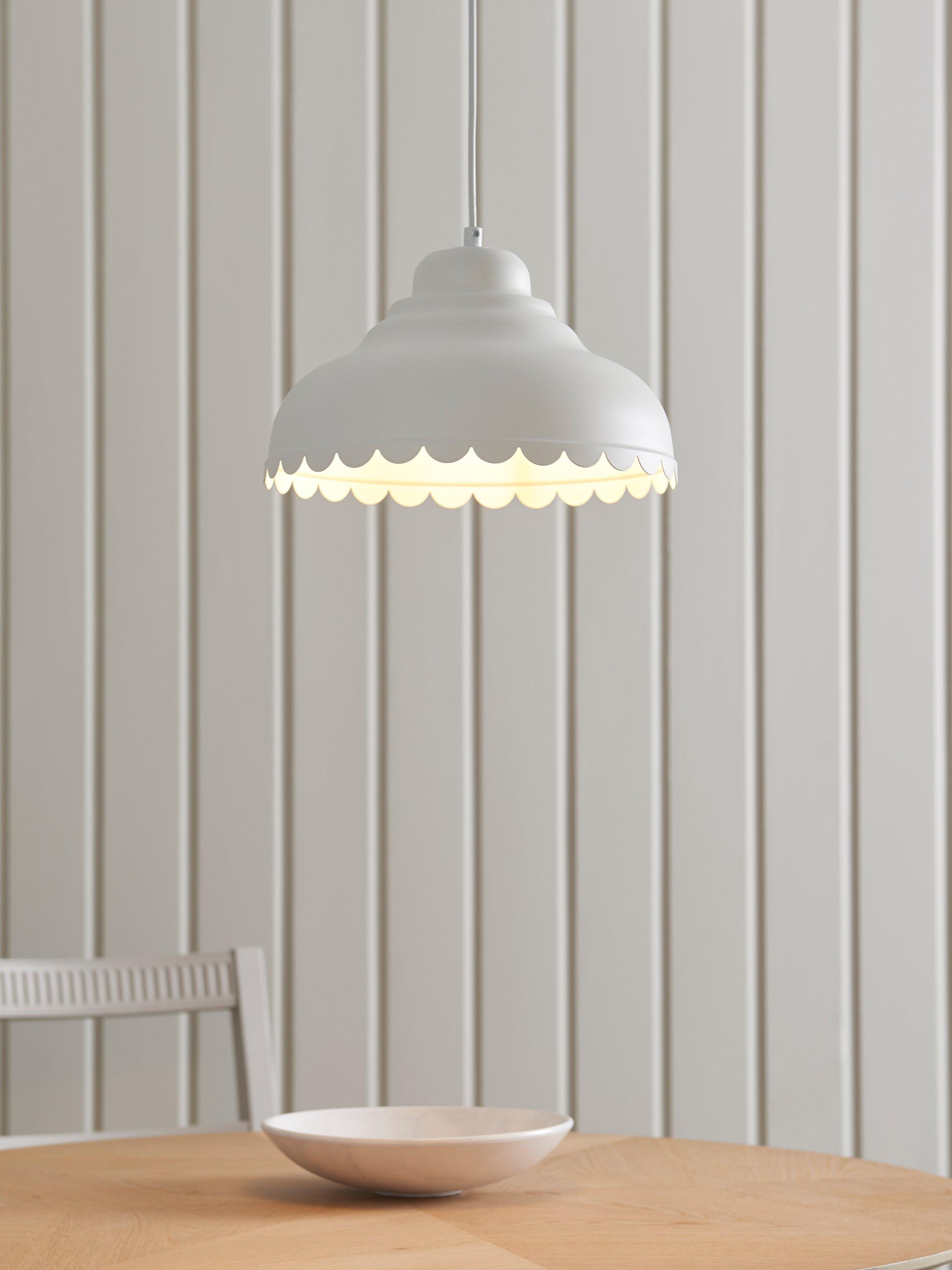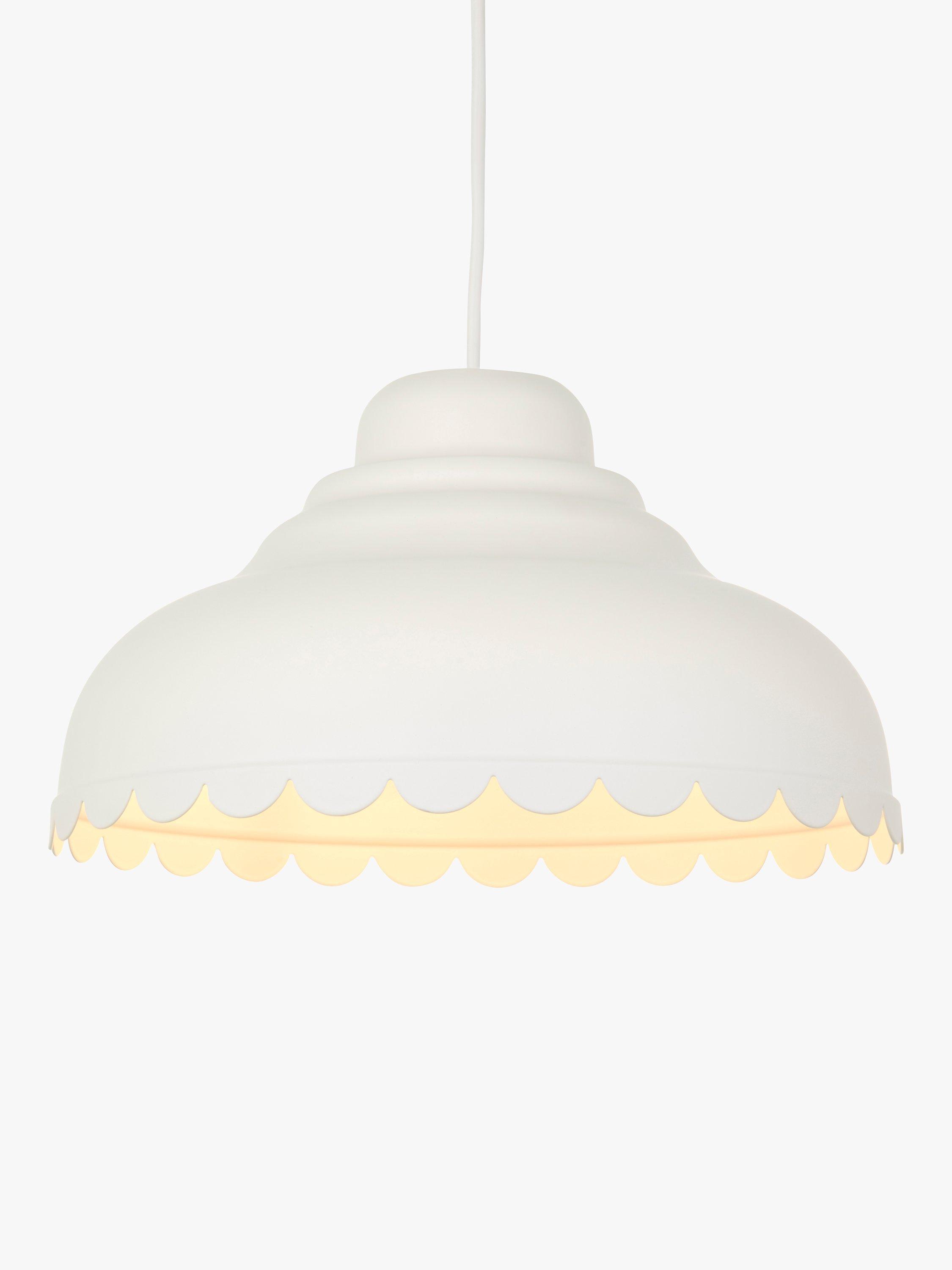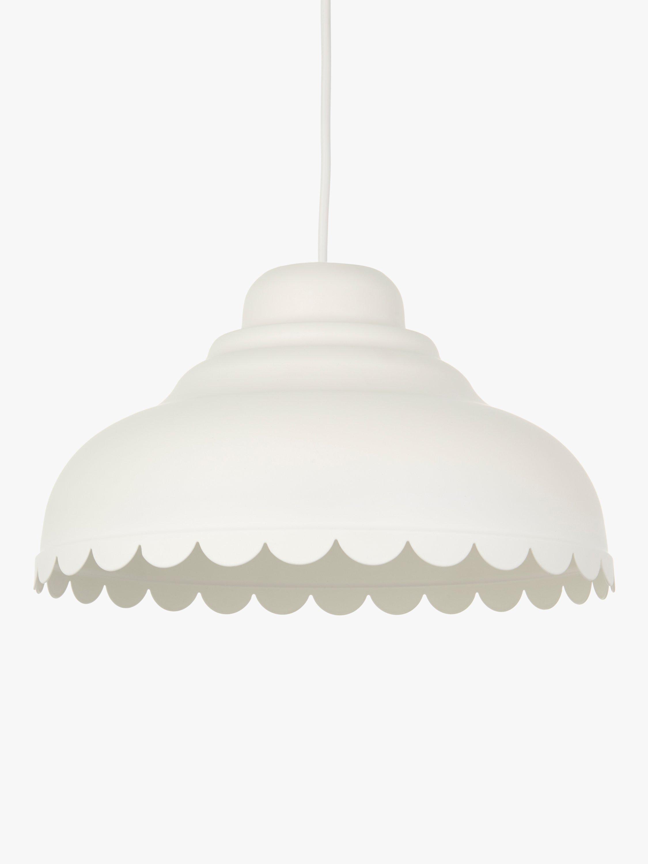 Introducing a fun, modern take on country style with our Scallop easy-to-fit shade. Its decorative edge catches the eye and it's available in a selection of colours. Designed to hide the lamp socket inside, the shade pairs well with our range of cable sets but it will also fit effortlessly to your current ceiling cable.