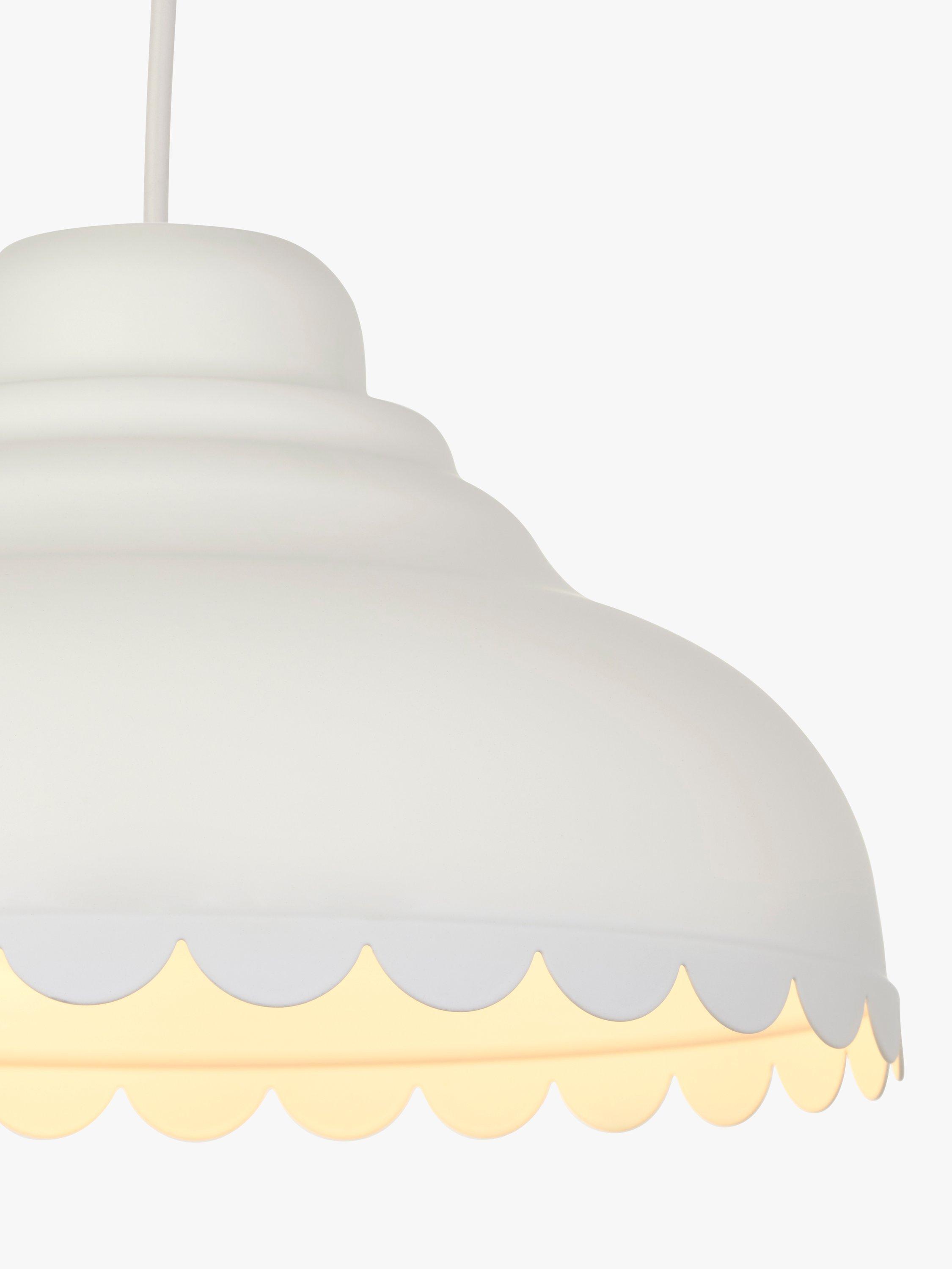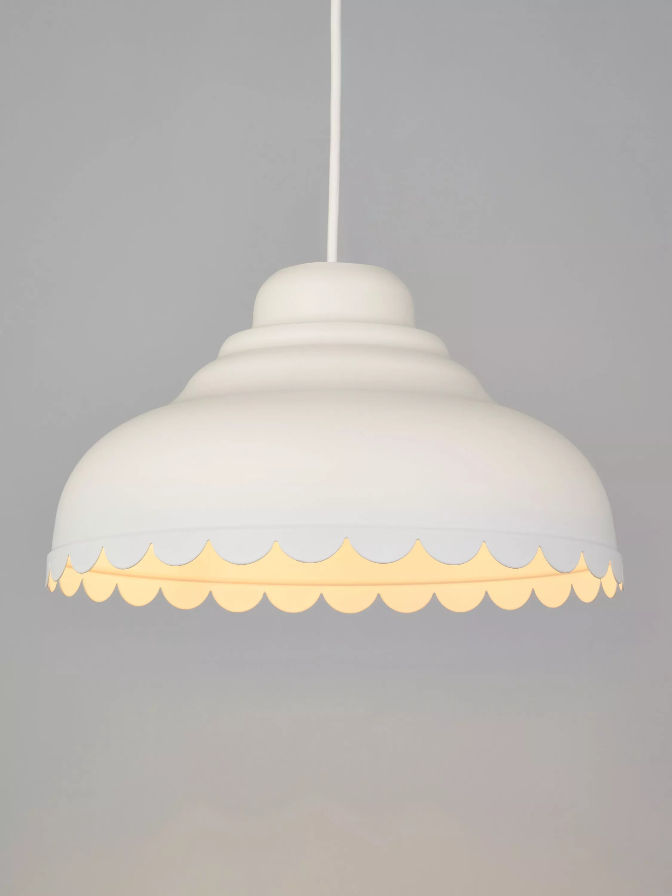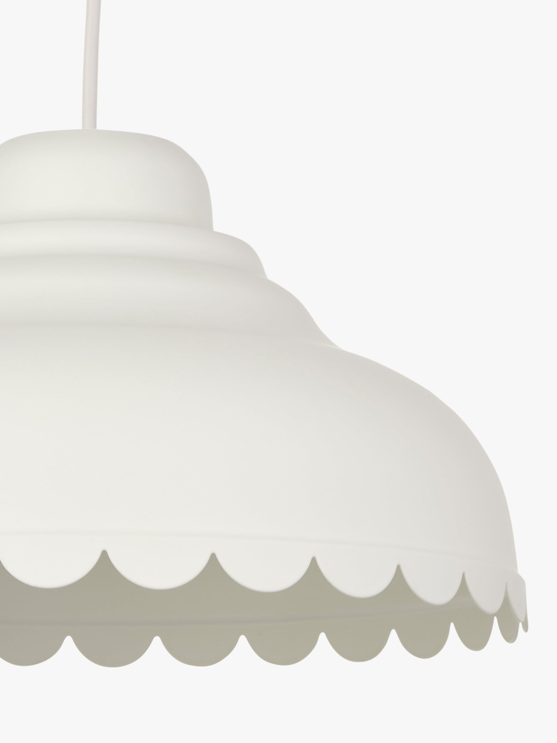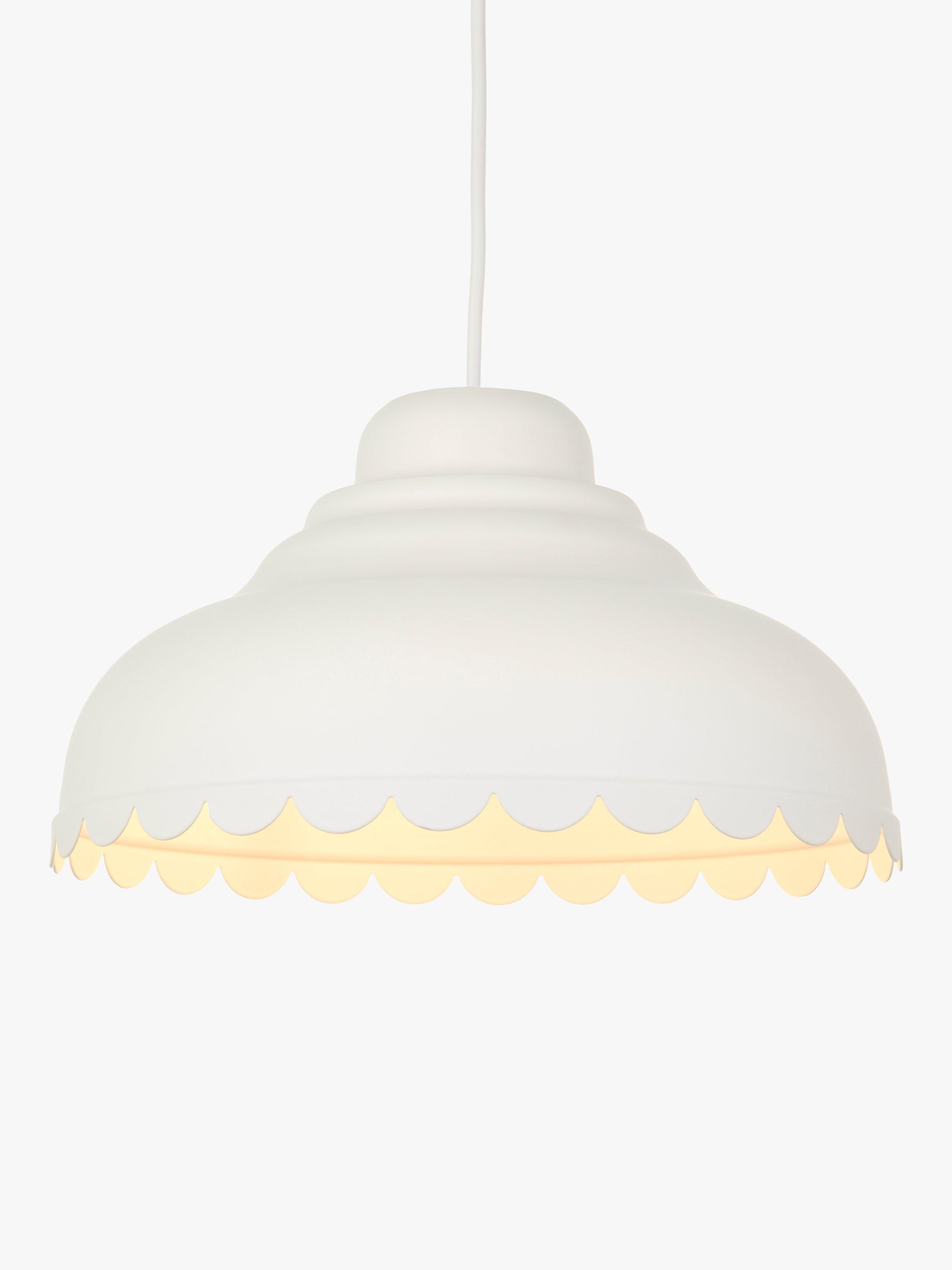 Introducing a fun, modern take on country style with our Scallop easy-to-fit shade. Its decorative edge catches the eye and it's available in a selection of colours. Designed to hide the lamp socket inside, the shade pairs well with our range of cable sets but it will also fit effortlessly to your current ceiling cable.