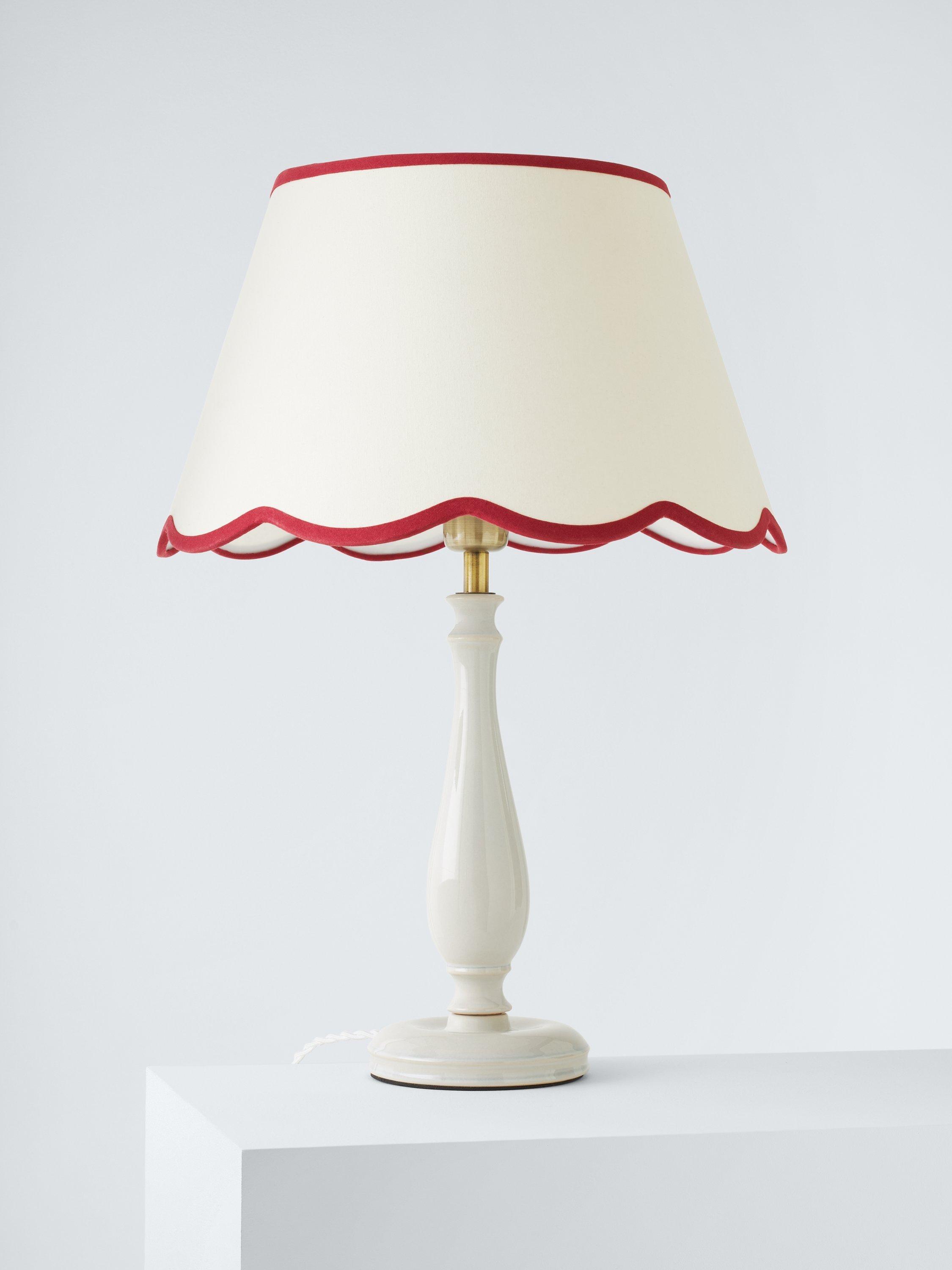 With a signature look, this tapered drum lampshade is complemented with a contrasting colour on the taped edges to highlight the scallop design.