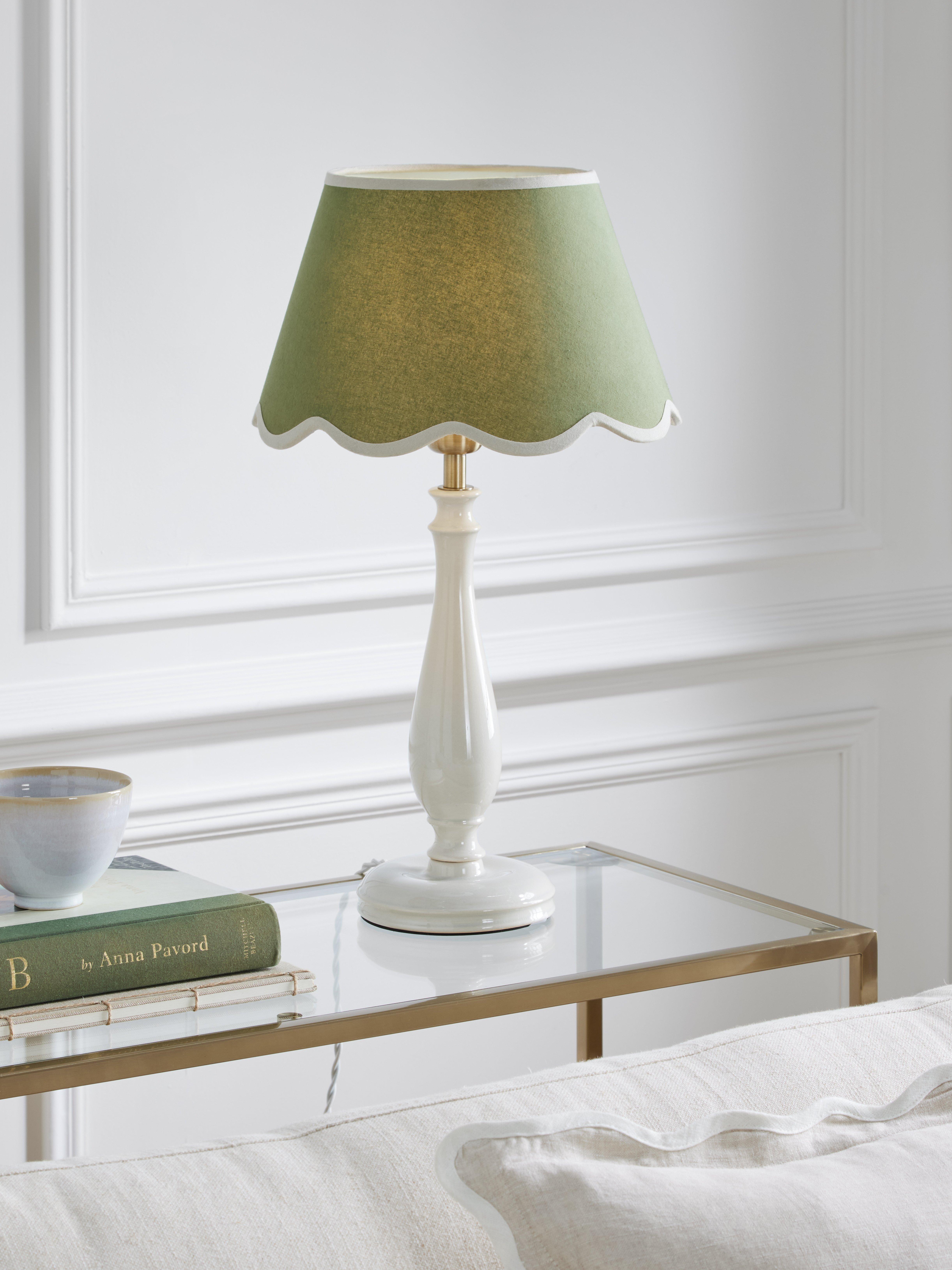 With a signature look, this tapered drum lampshade is complemented with a contrasting colour on the taped edges to highlight the scallop design.