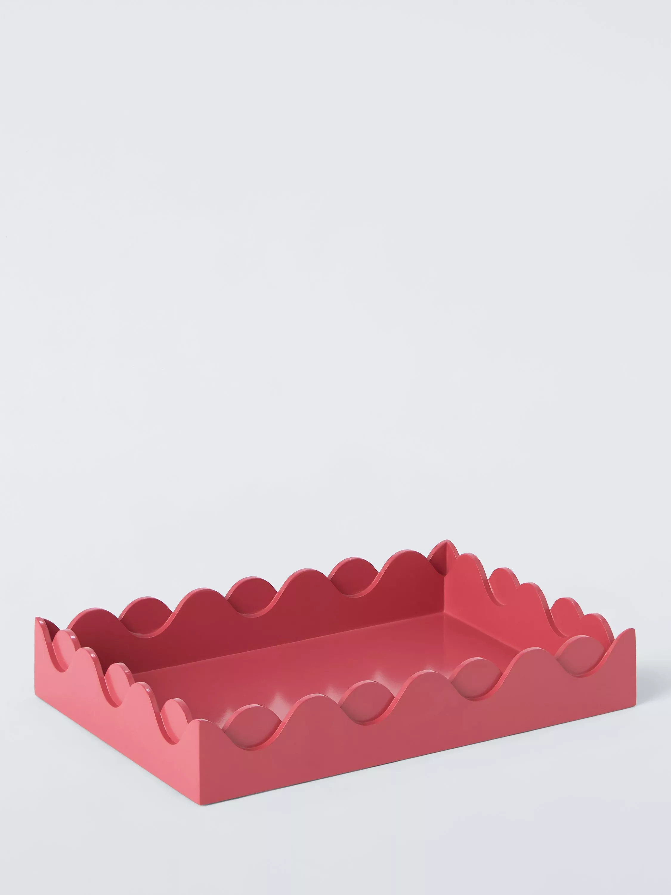Glossy lacquered tray with decorative scalloped edges. The high sides keep everything in place.