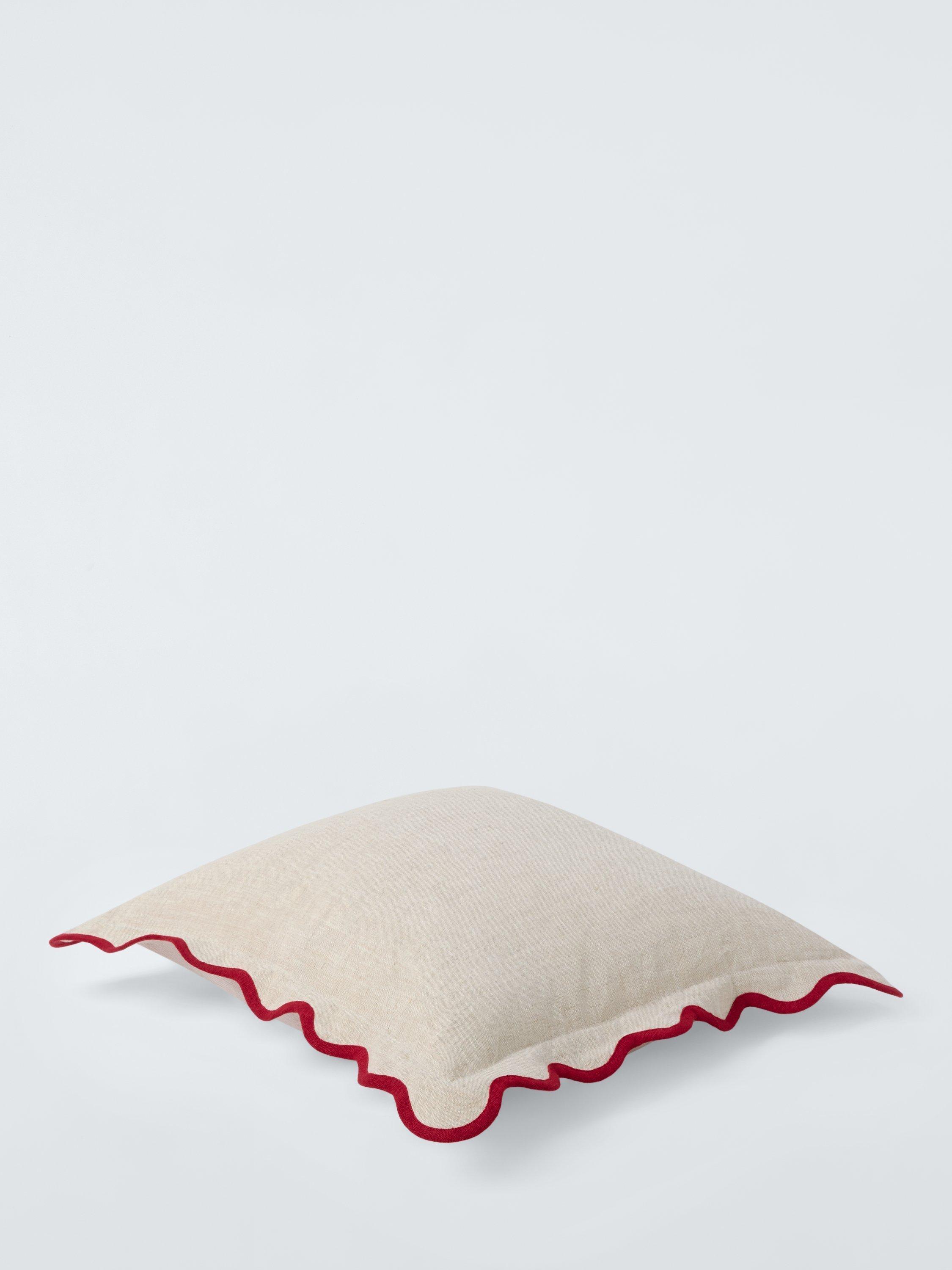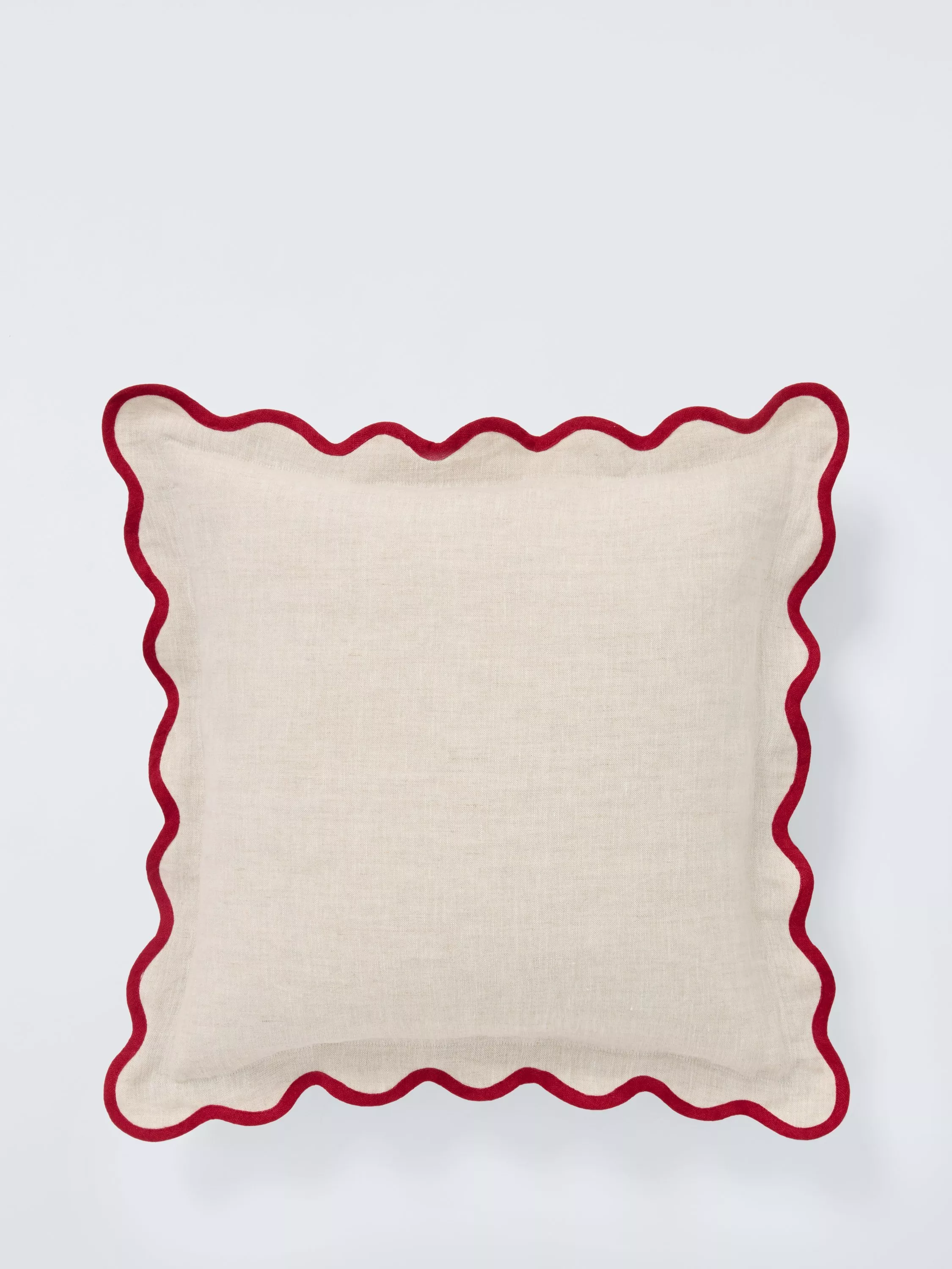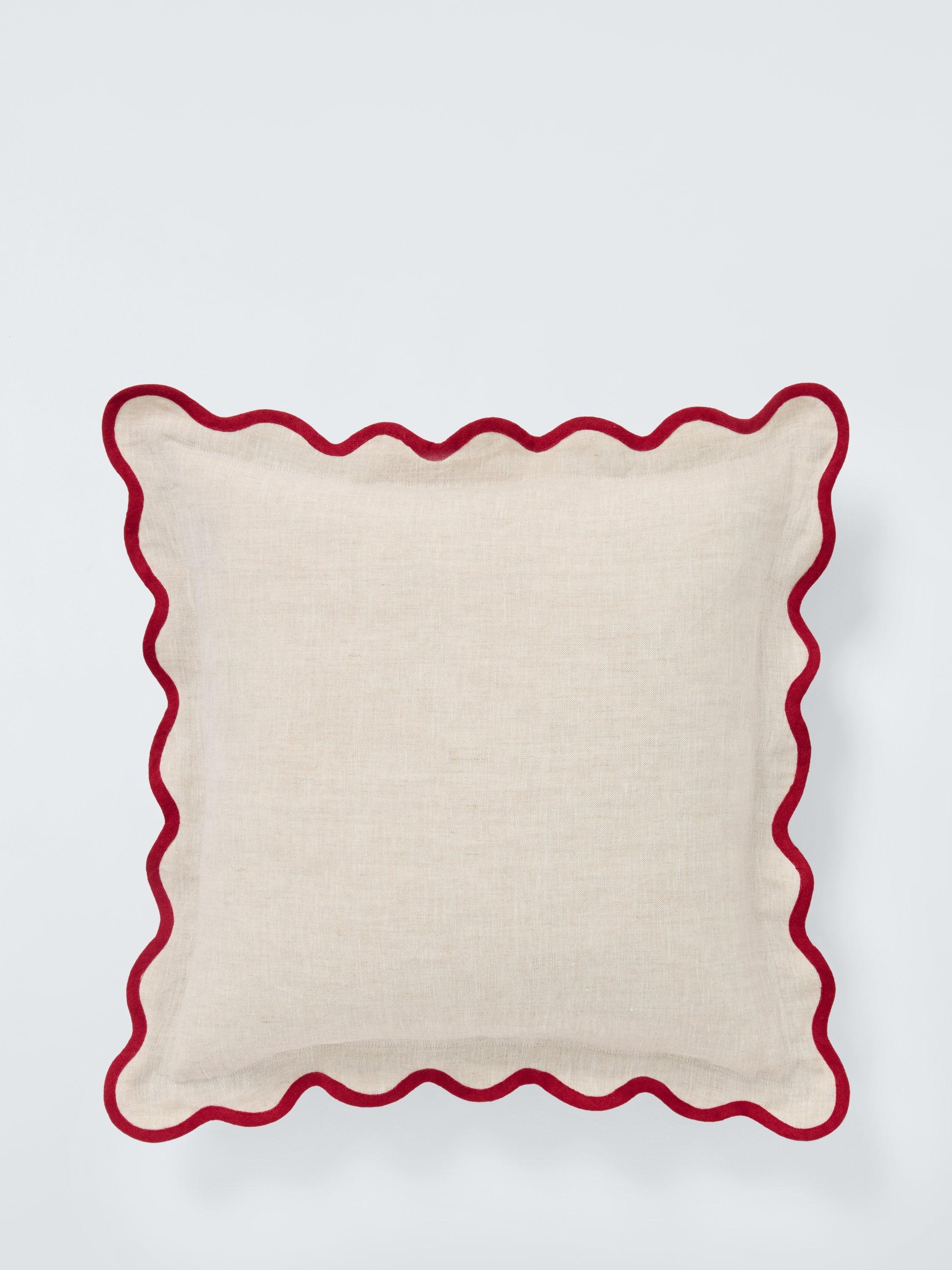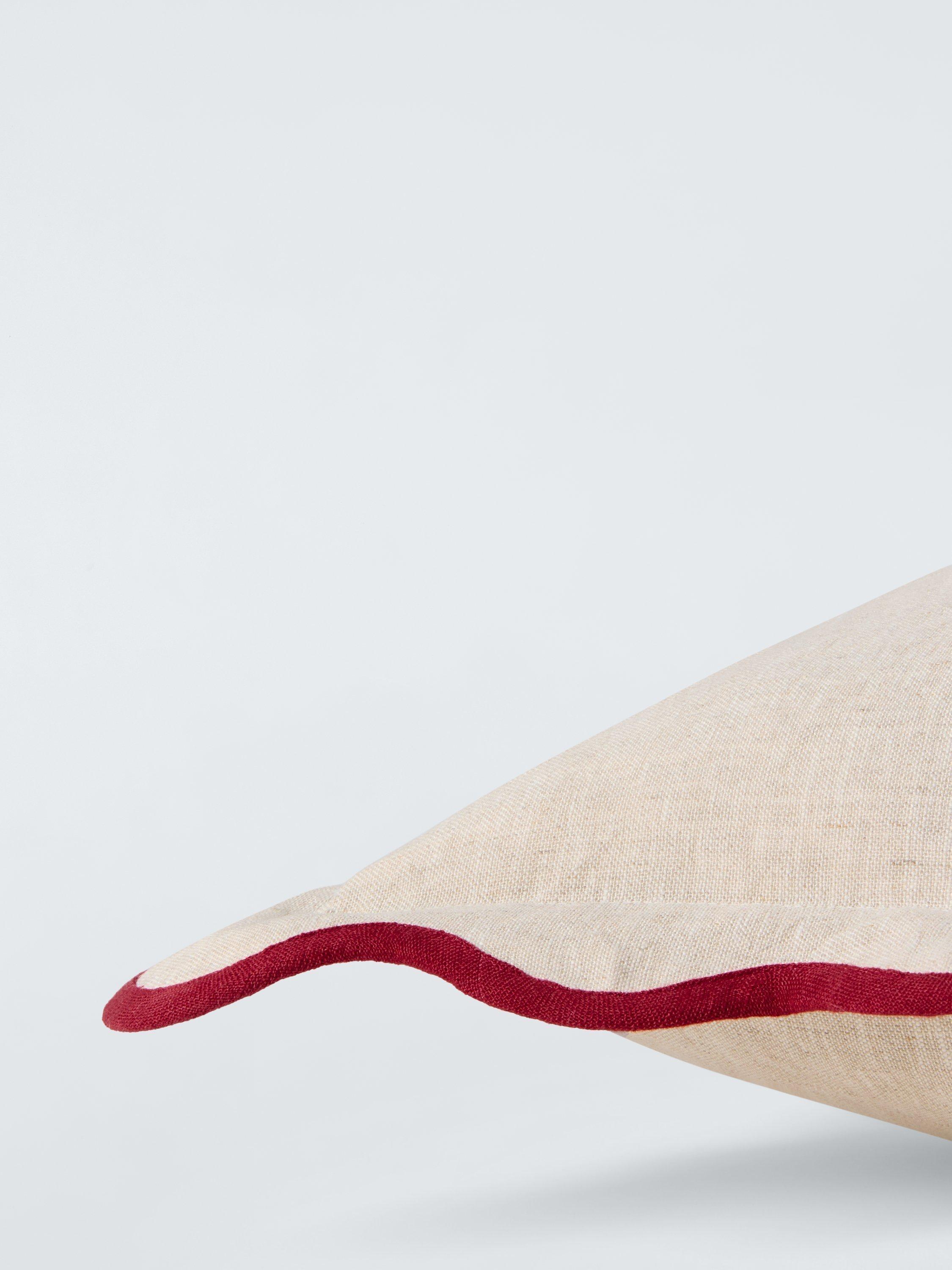This natural linen cushion is finished with a hand-embroidered scalloped edge for added interest.