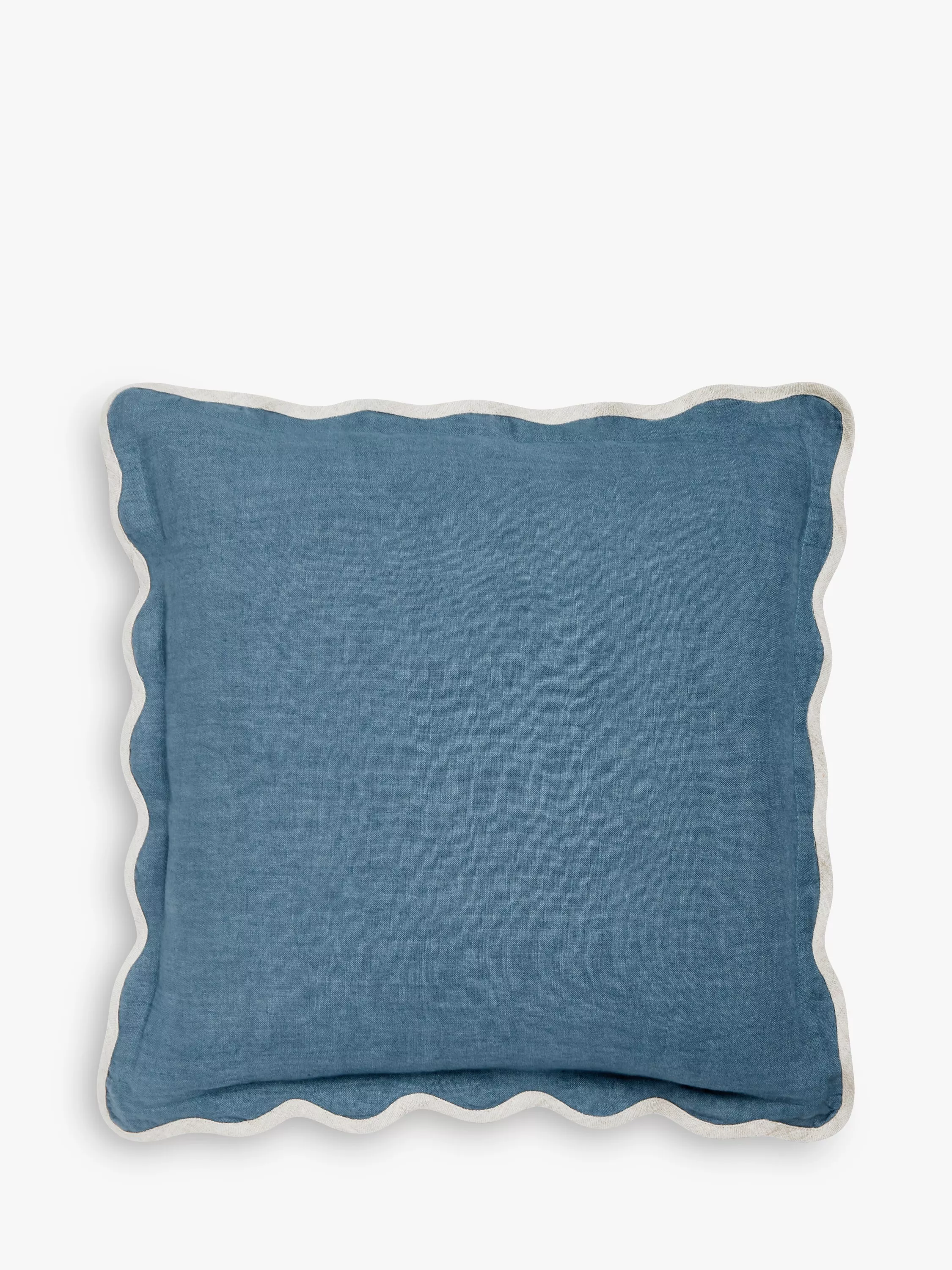 This natural linen cushion is finished with a hand-embroidered scalloped edge for added interest.