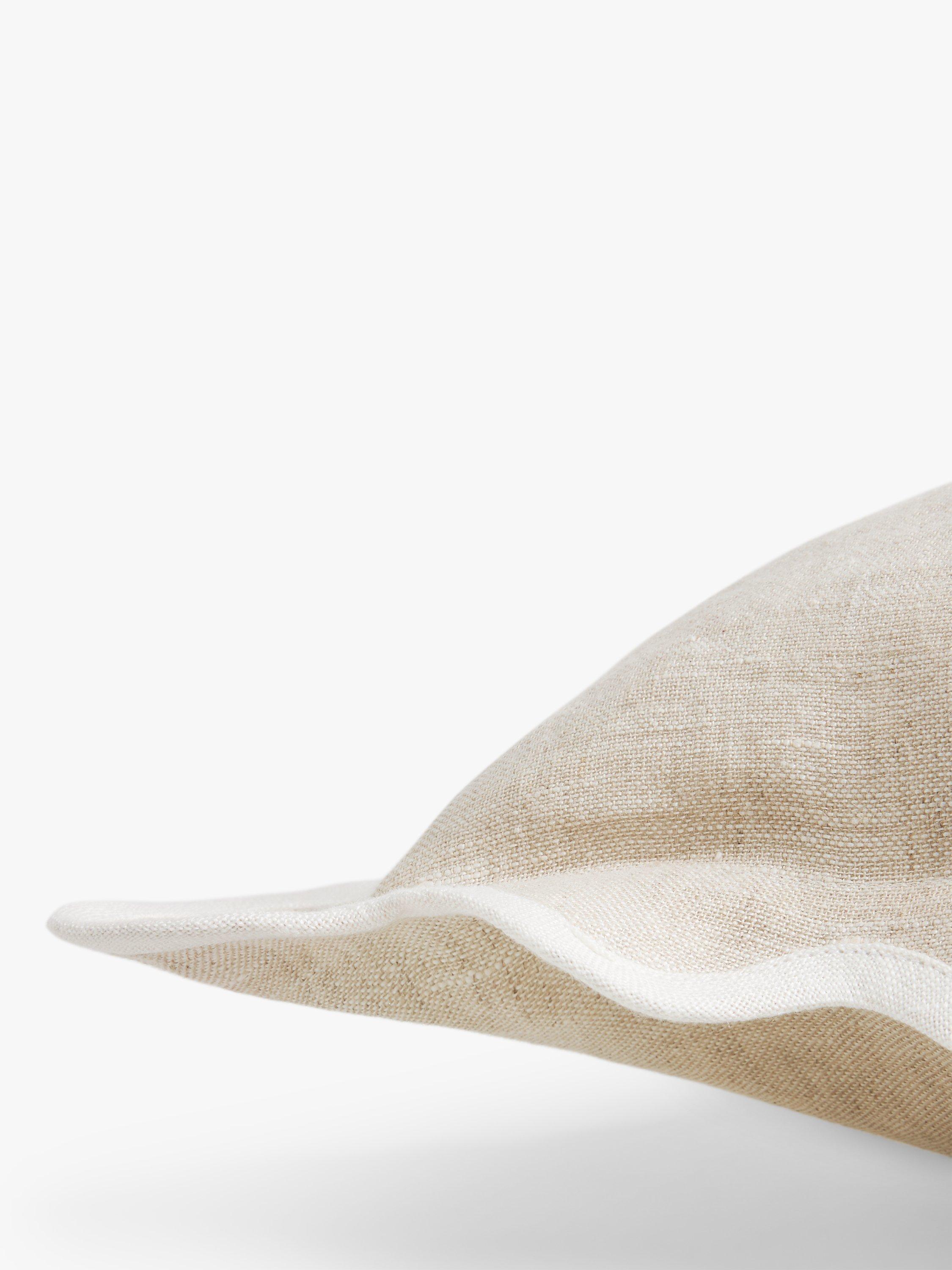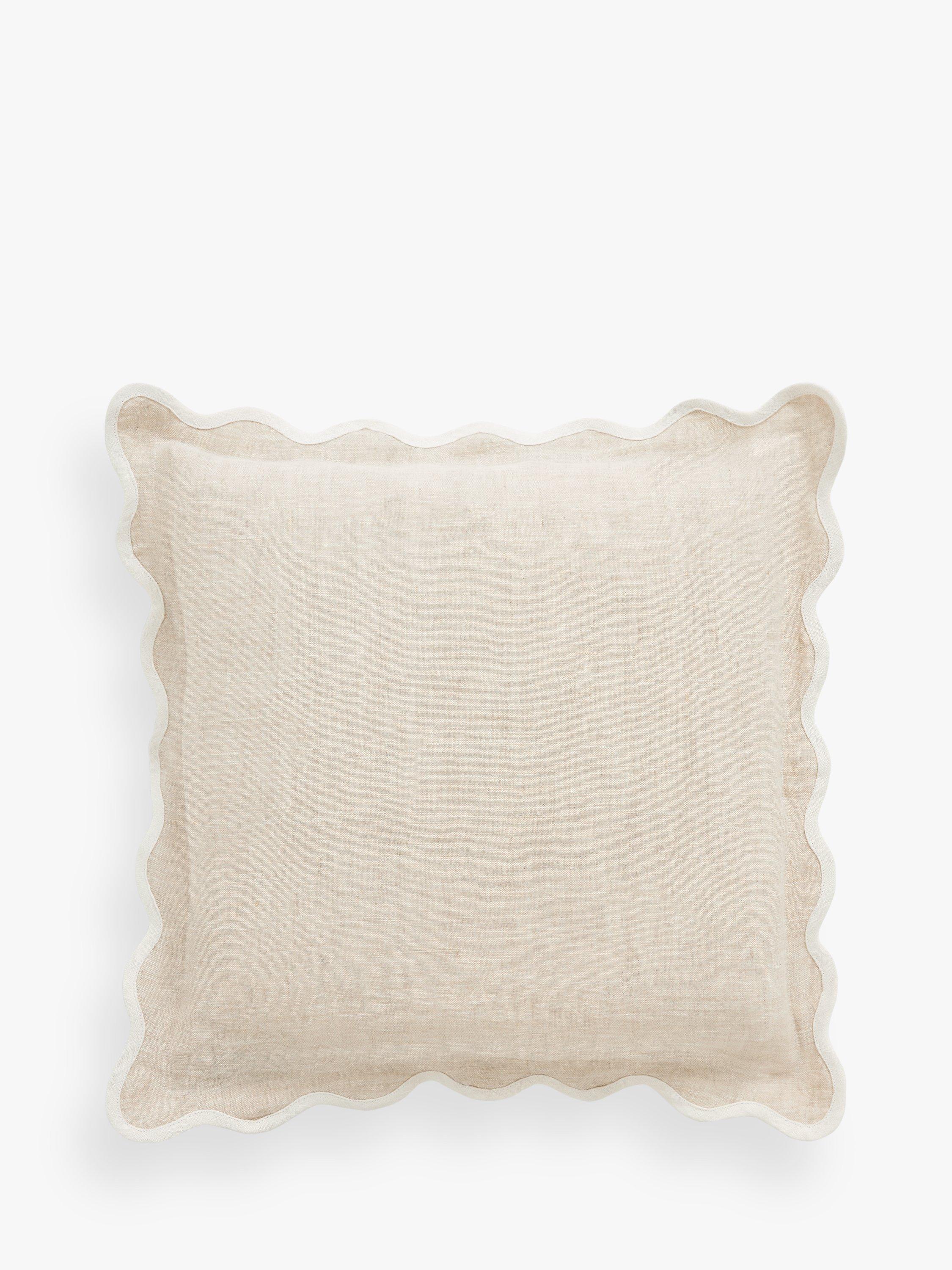 This natural linen cushion is finished with a hand-embroidered scalloped edge for added interest.