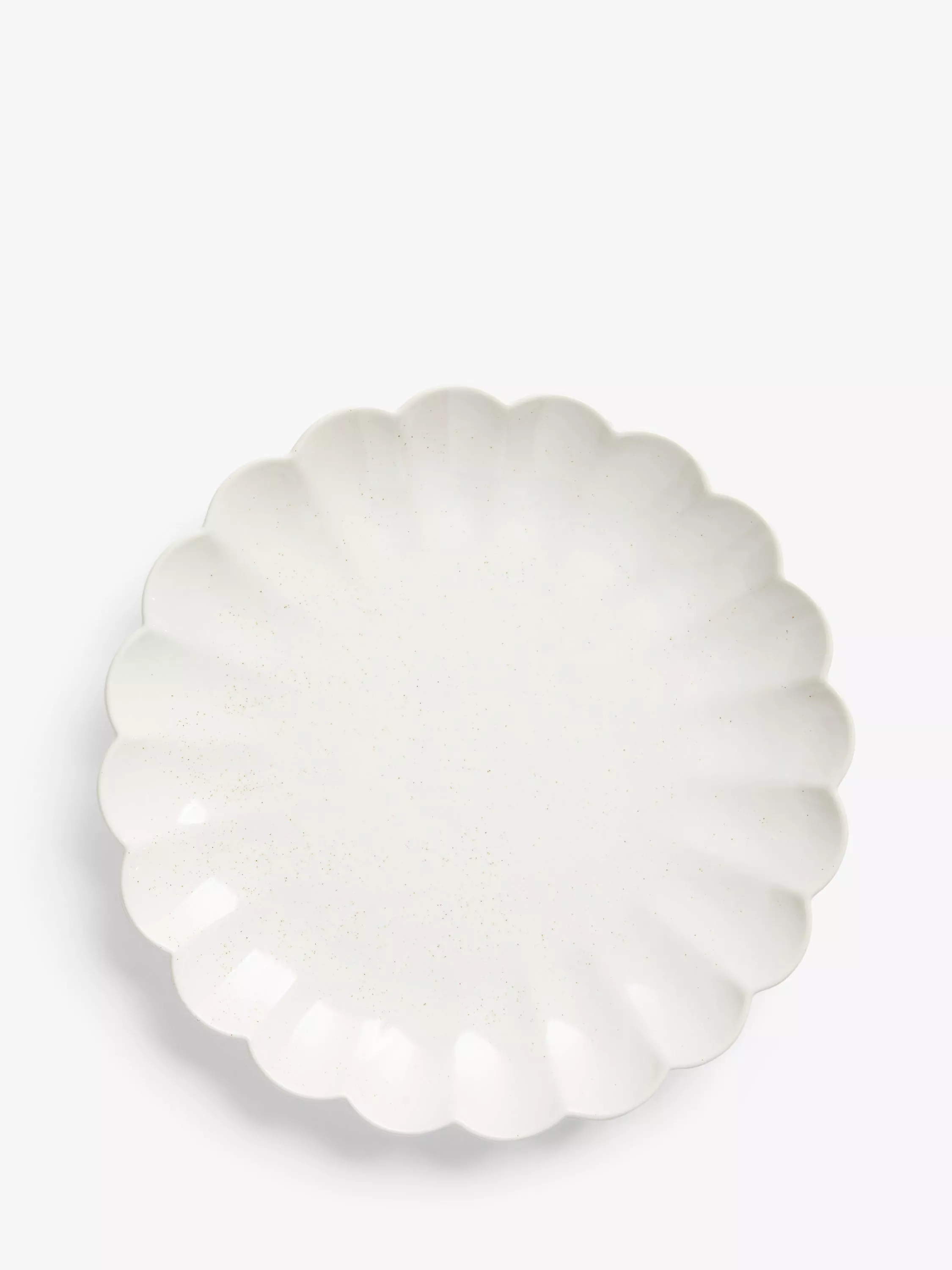 A traditional fluted design with a speckled glaze, this dinner plate has a beautifully scalloped edge. Made of stoneware, it's dishwasher and microwave safe for everyday use.