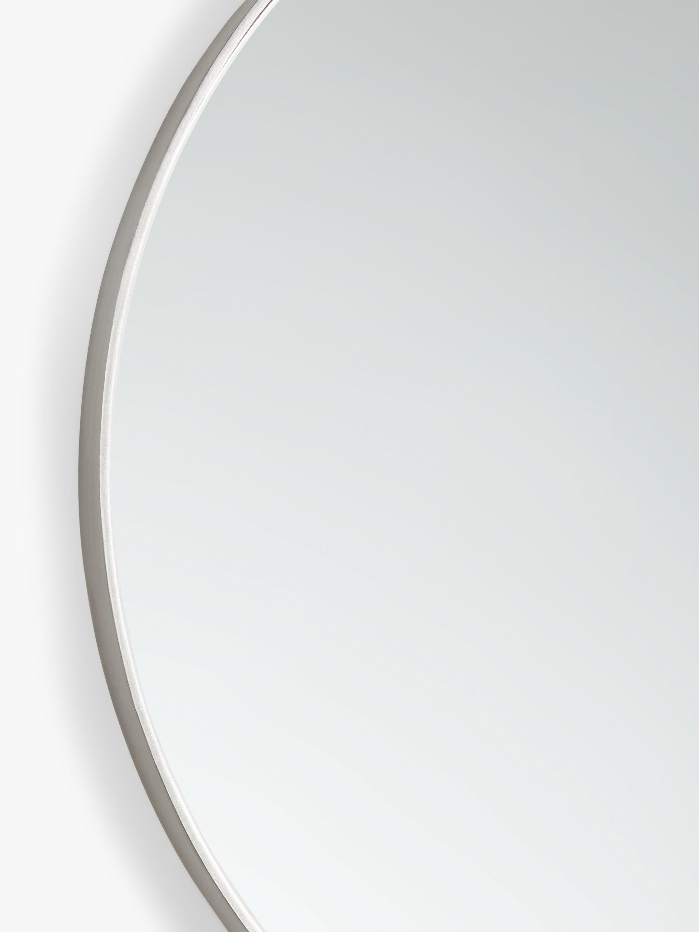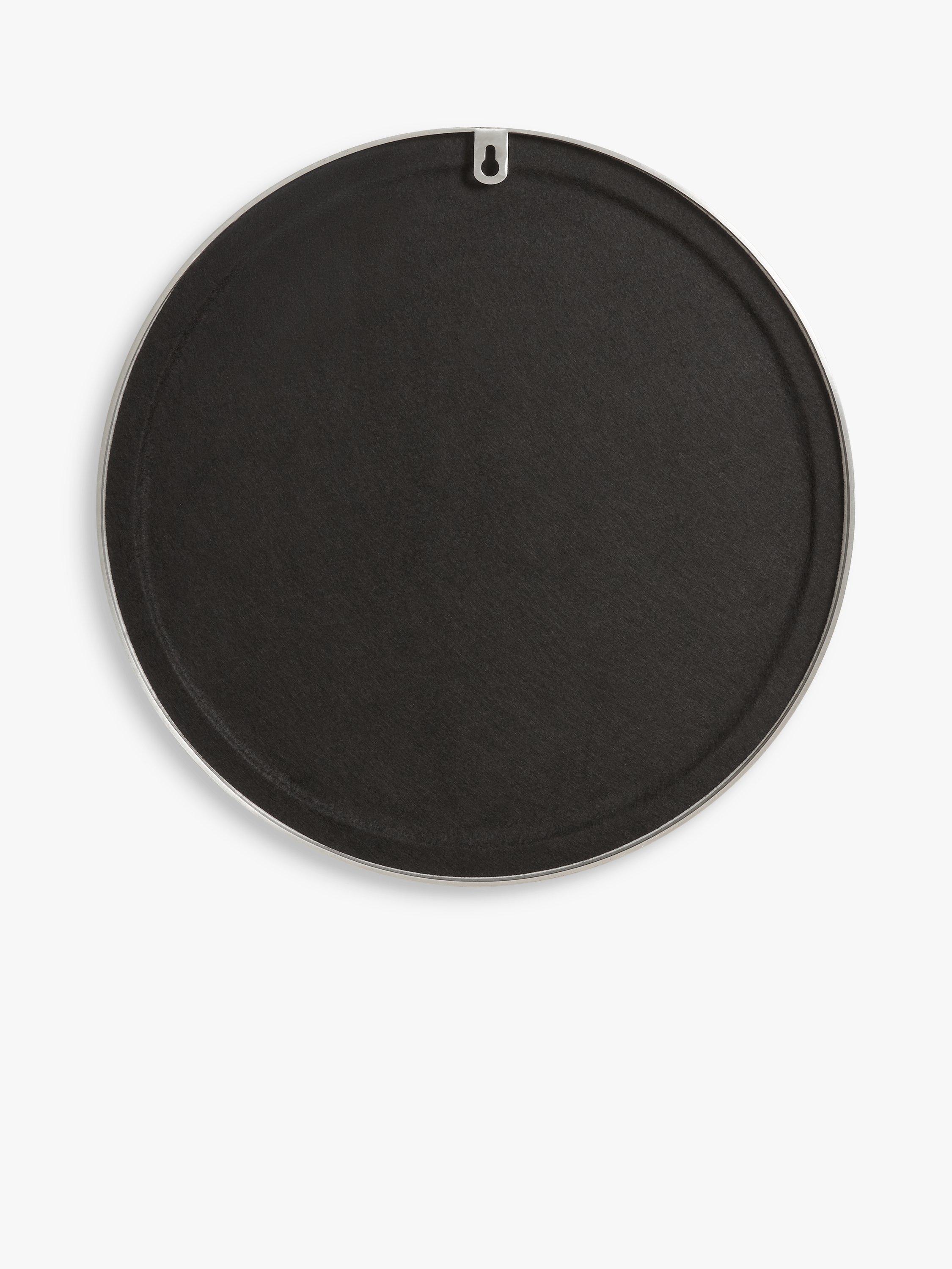 A contemporary round mirror with a slim-profile frame inspired by minimalist Scandinavian design. The mirror is ready to wall mount using the keyhole fittings on the reverse side.