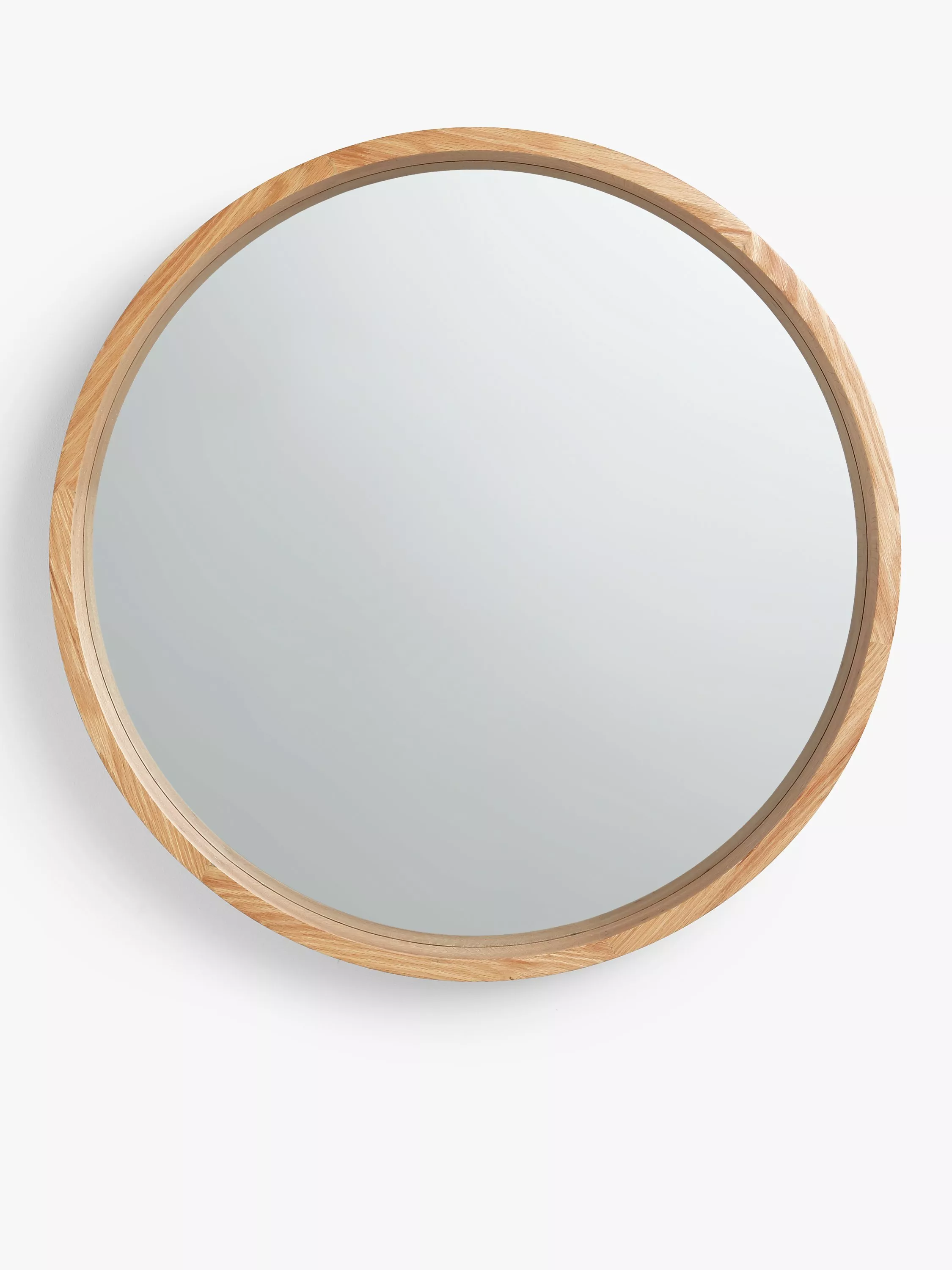 Understated and chic, in true Scandinavian style, this round mirror has a deep oak wood frame creating a natural look. Ready to hang in any room or hallway, it has D-ring fittings on the reverse side for wall mounting.