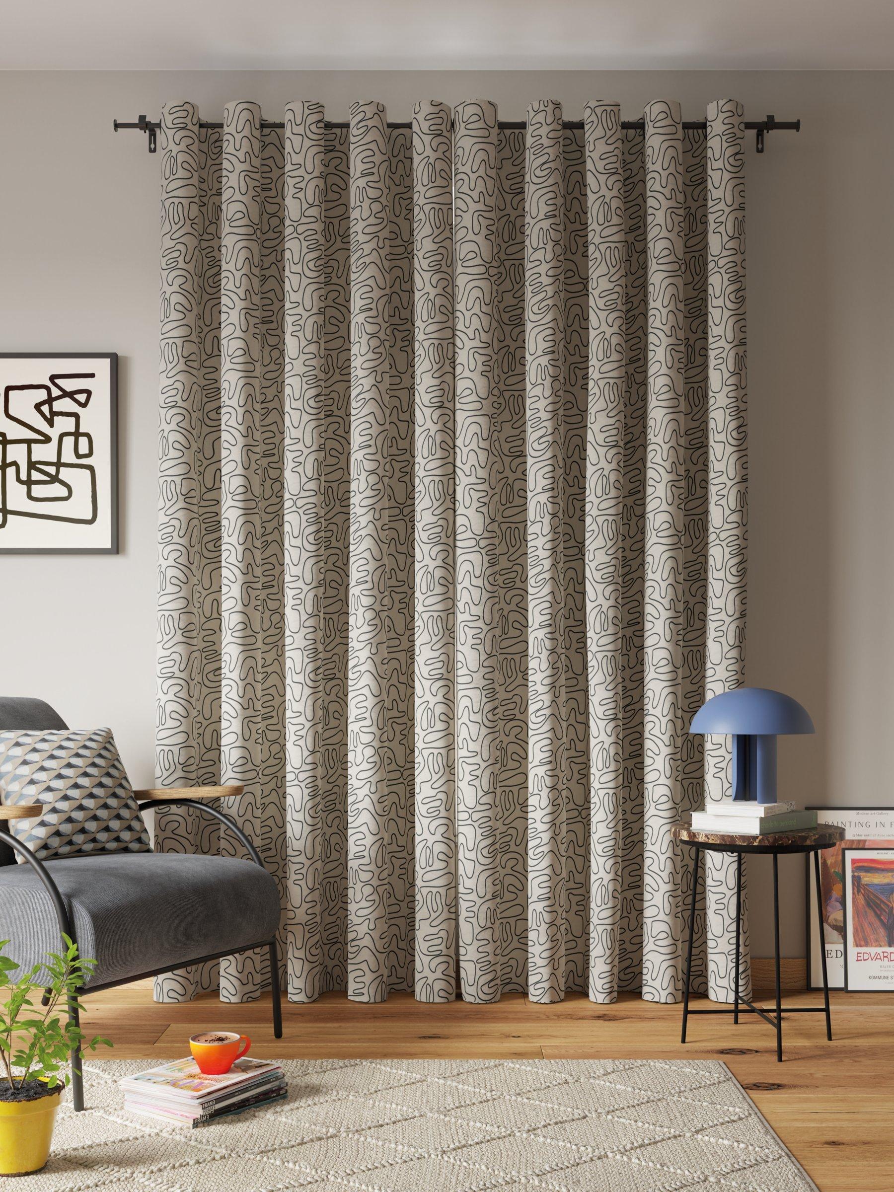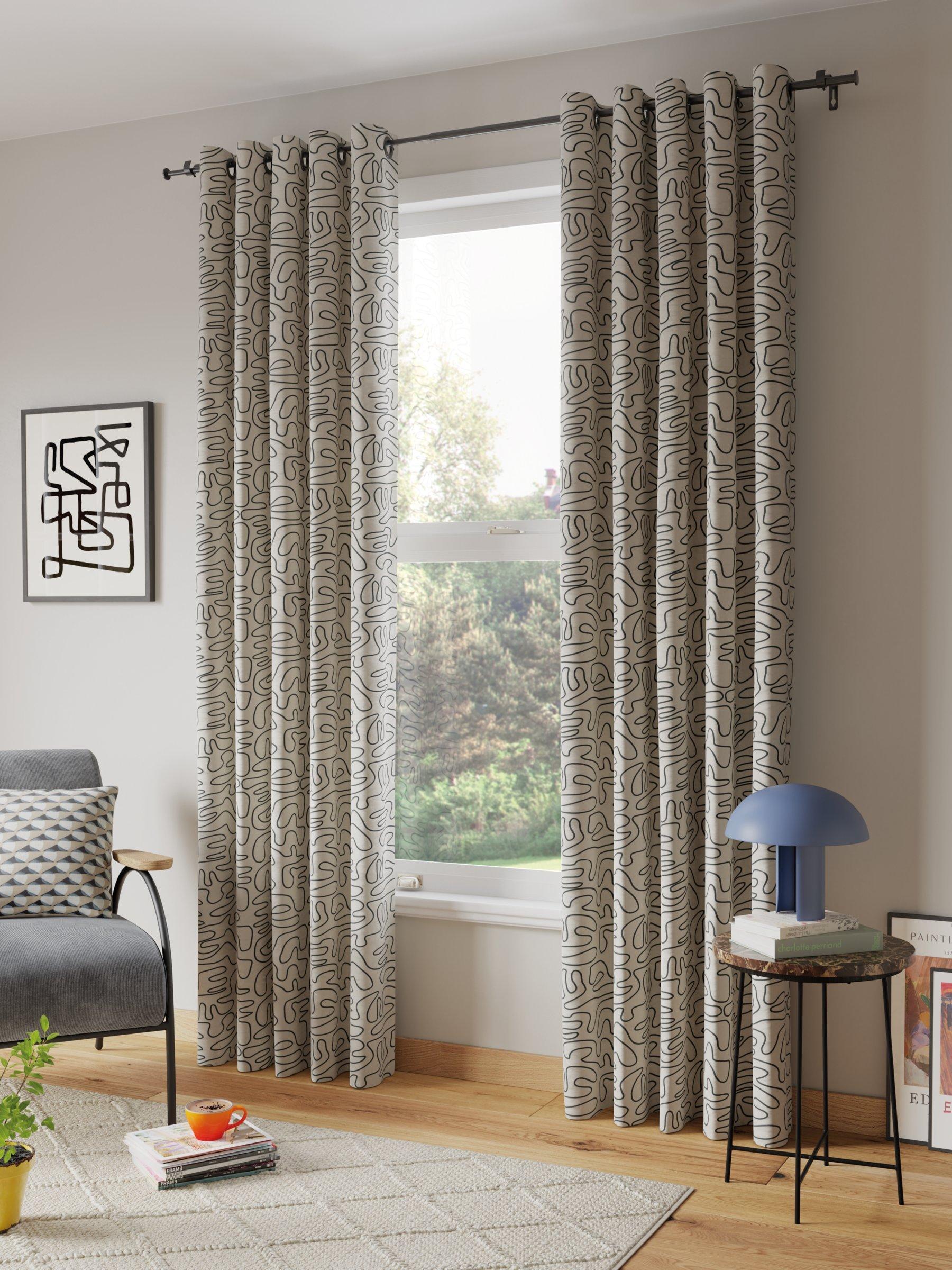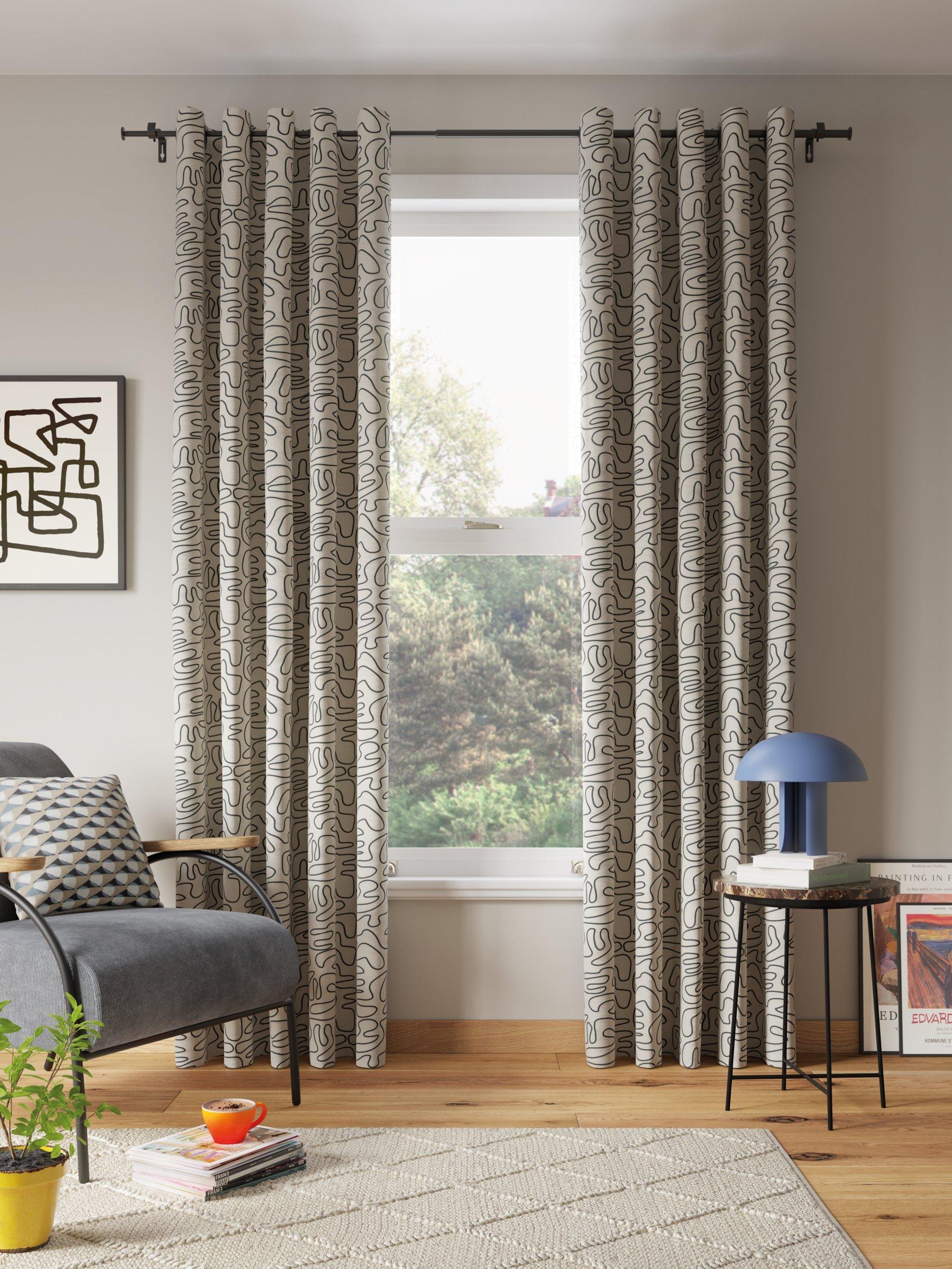 John Lewis ANYDAYJohn Lewis Scribble Print Pair Lined Eyelet Curtains, Grey, Graphite