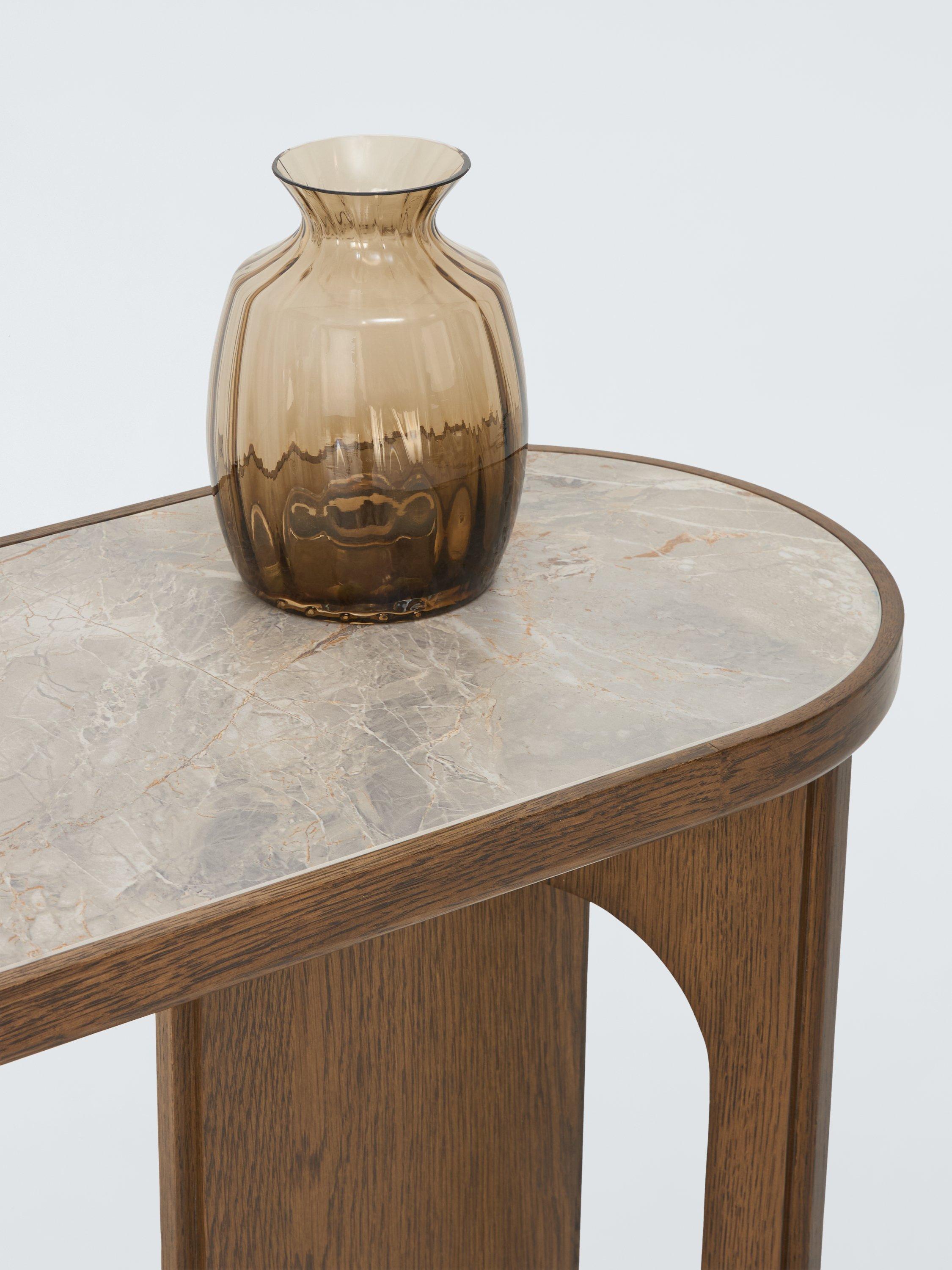 Enhance your space with our sleek and stylish Sculpt console table, featuring a luxurious ceramic top and a lacquered finish.