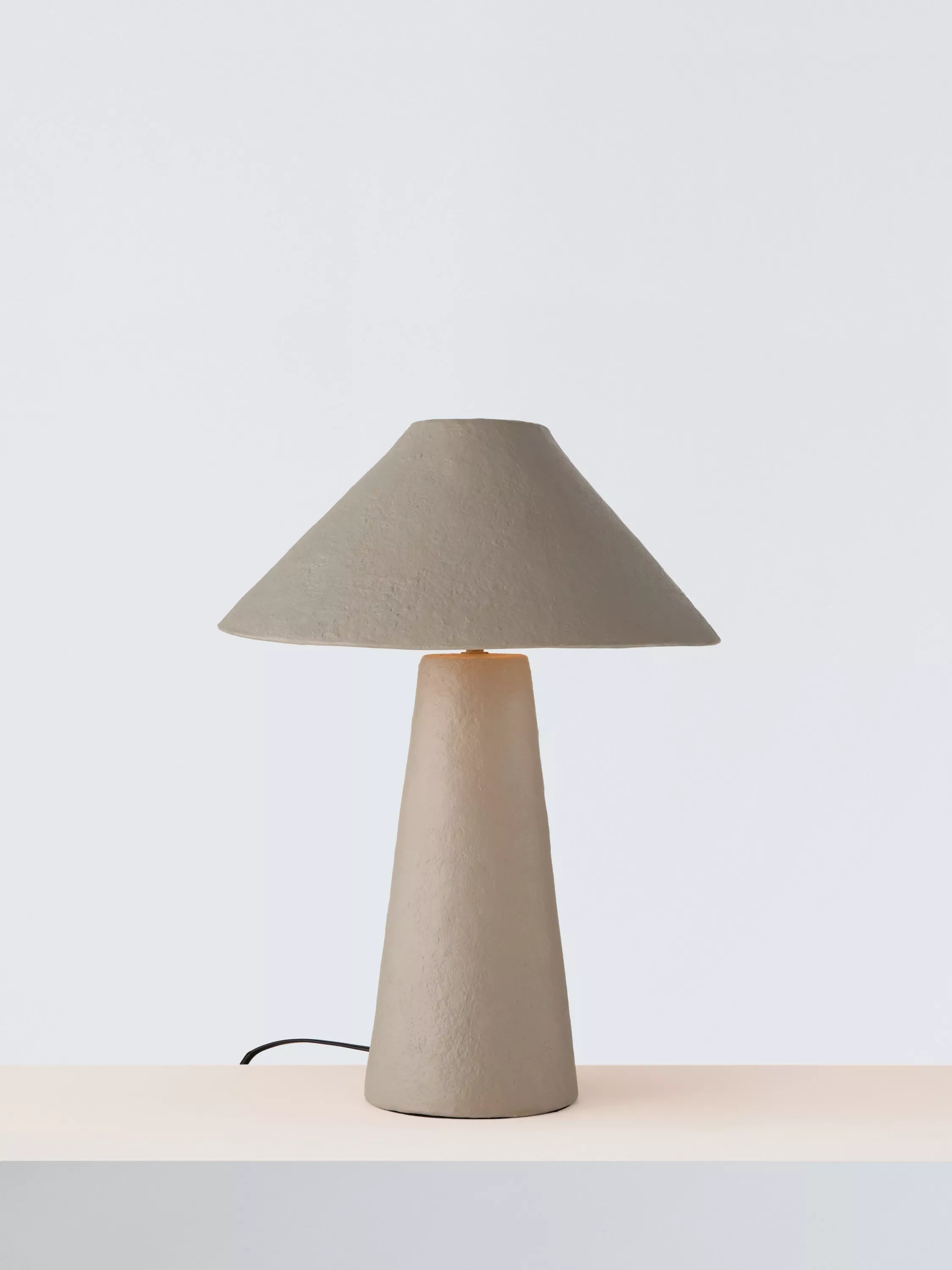 This sculptural table lamp features a tapered shape and a textured paper mache finish. With a height of 52cm, it's sure to be an eye-catching addition to your home.