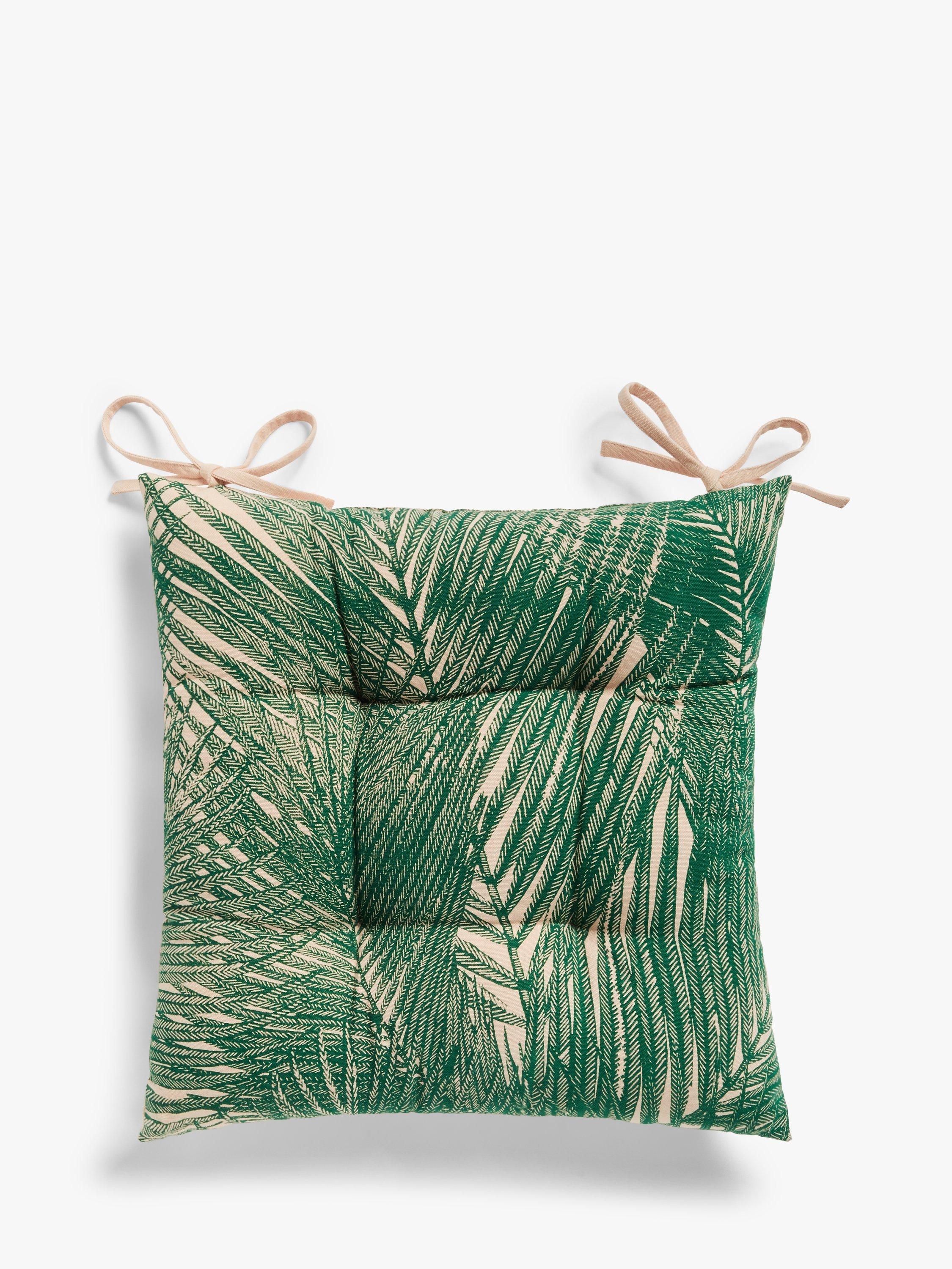 This polyester-filled seat pad has a hand screen printed palm leaf fabric on the front and a pale pink reverse. It can be used with either side facing upwards.