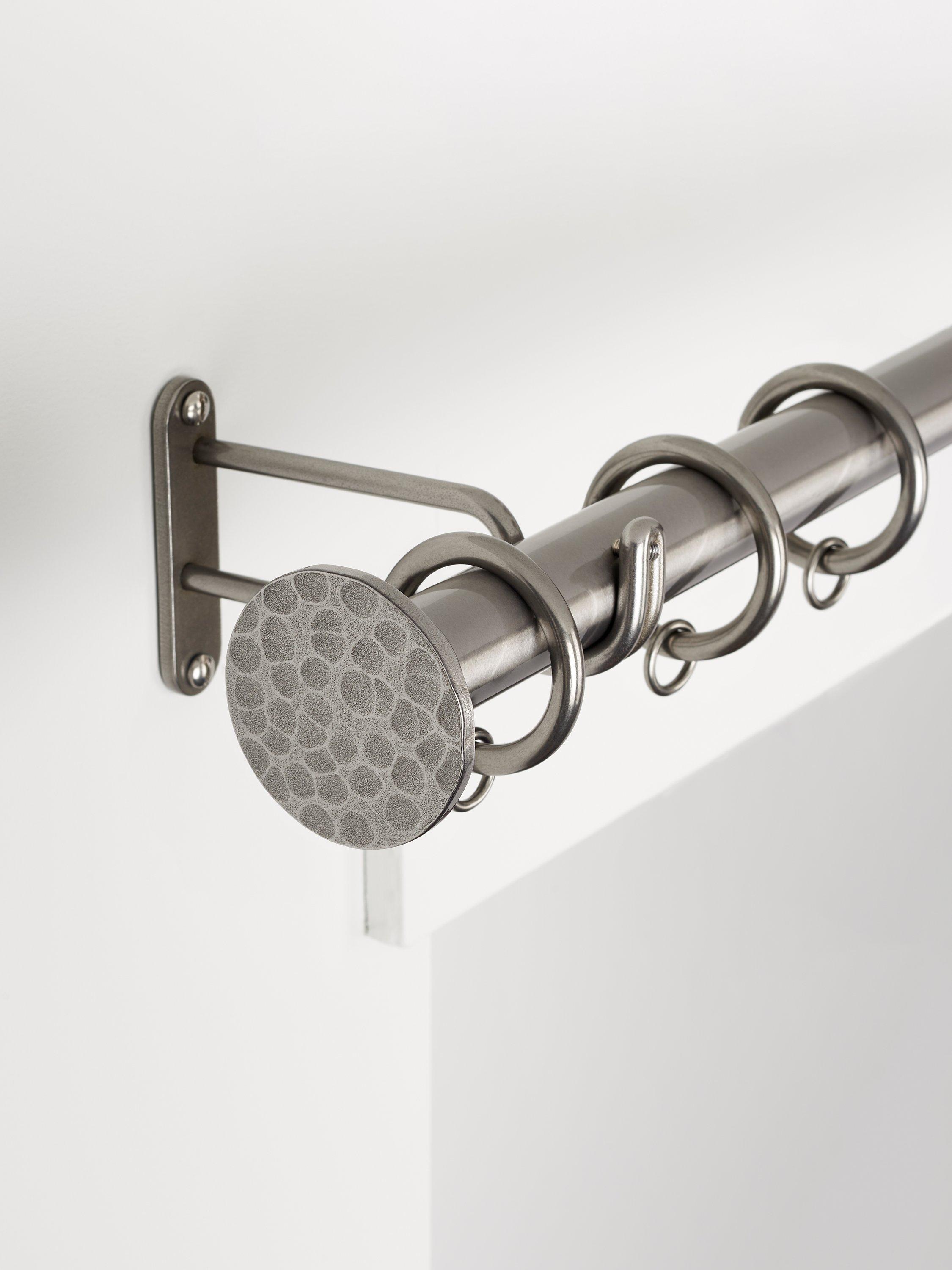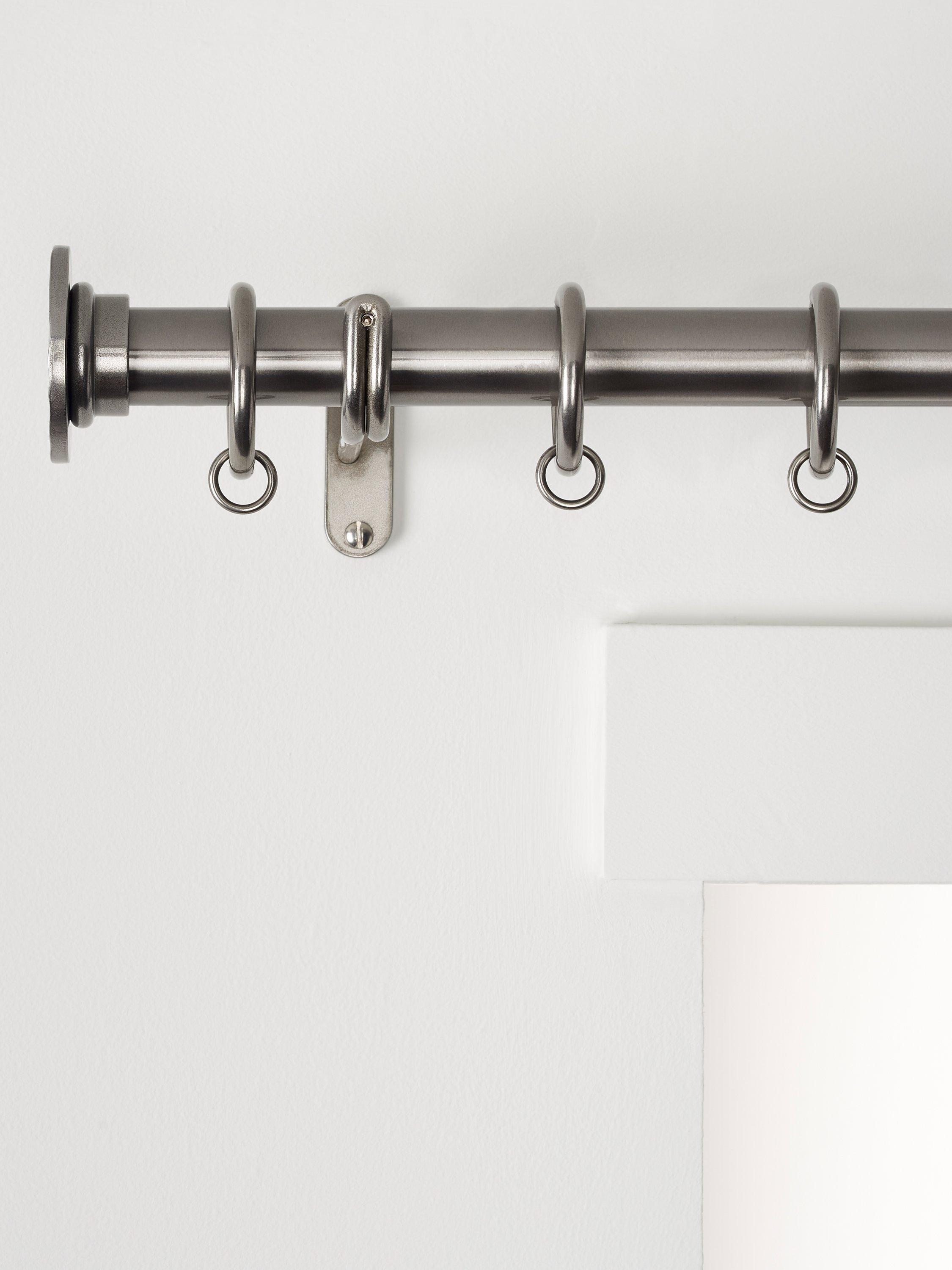 John LewisSelect Classic Curtain Pole with Rings and Hammered Disc Finial, Wall Fix, Dia.25mm