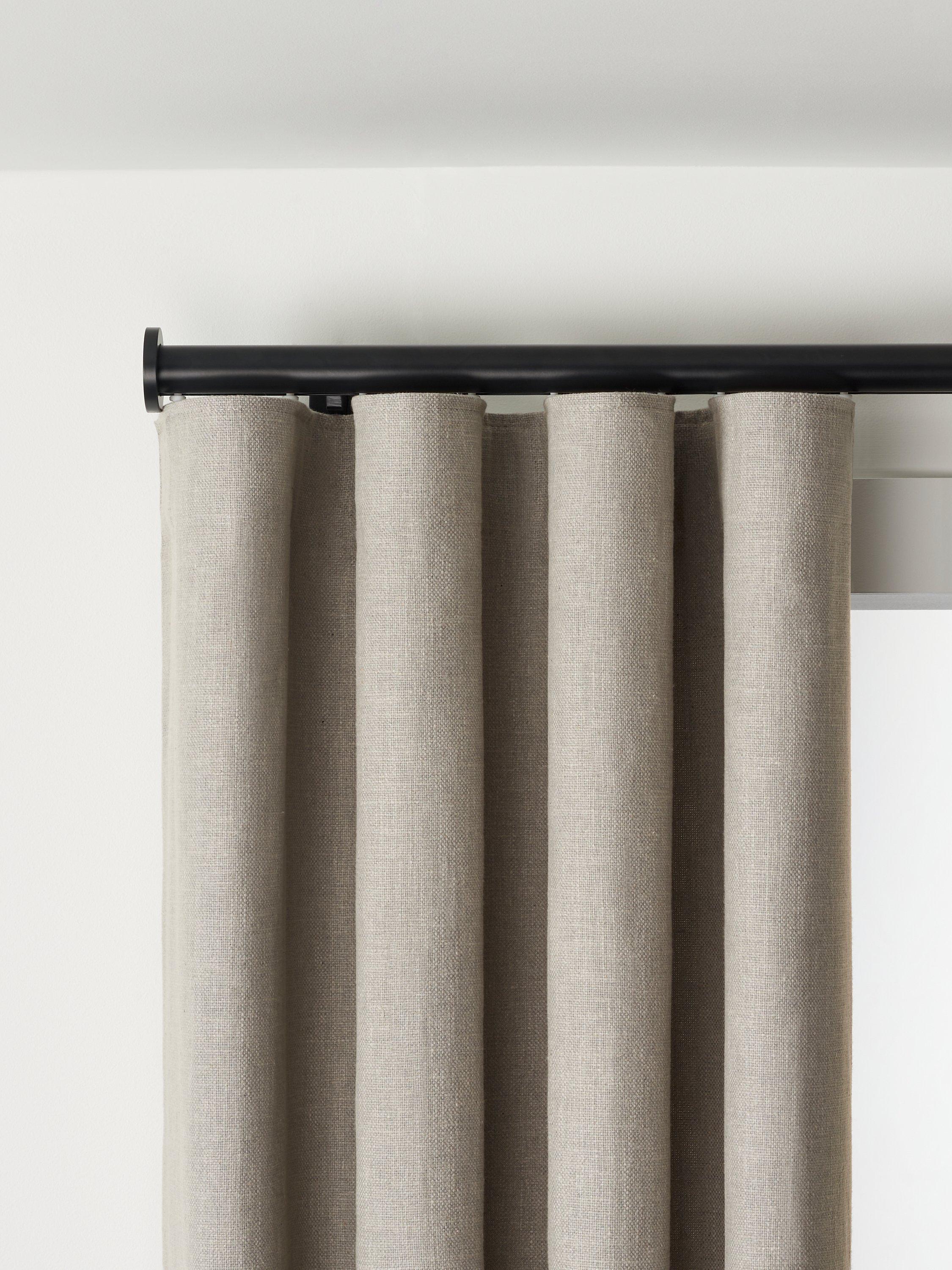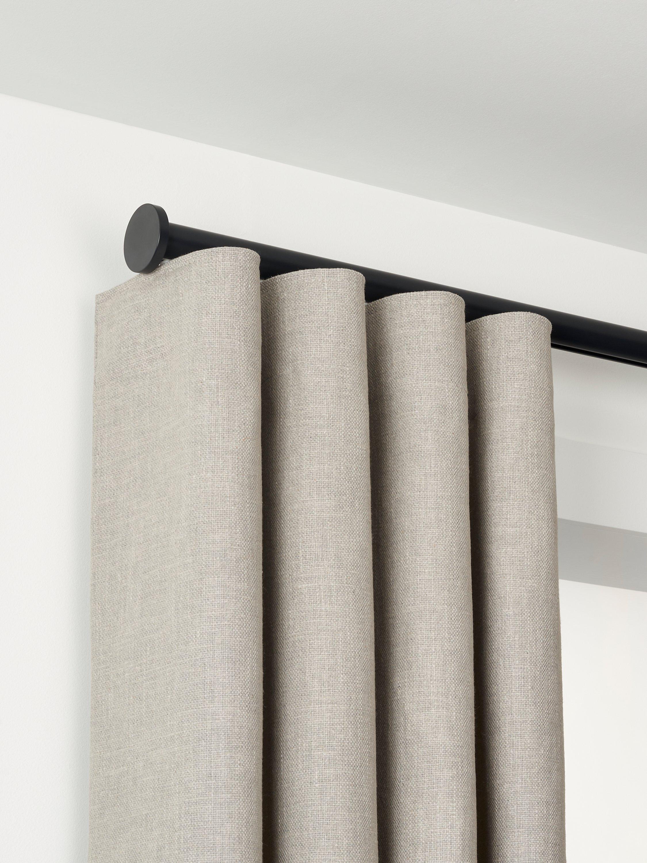 This particular version is our 30mm, wall-fix curl gliding pole with a disc finial. The gliders run smoothly in the pole channel, minimising noise as you open and close your curtains. It’s suitable for hanging ‘S’ shape curtains with a curl heading style. If you pop into any of our shops and ask a Partner about our ‘Designed for You’ service they can help you create the perfect pair of curtains with this particular heading.