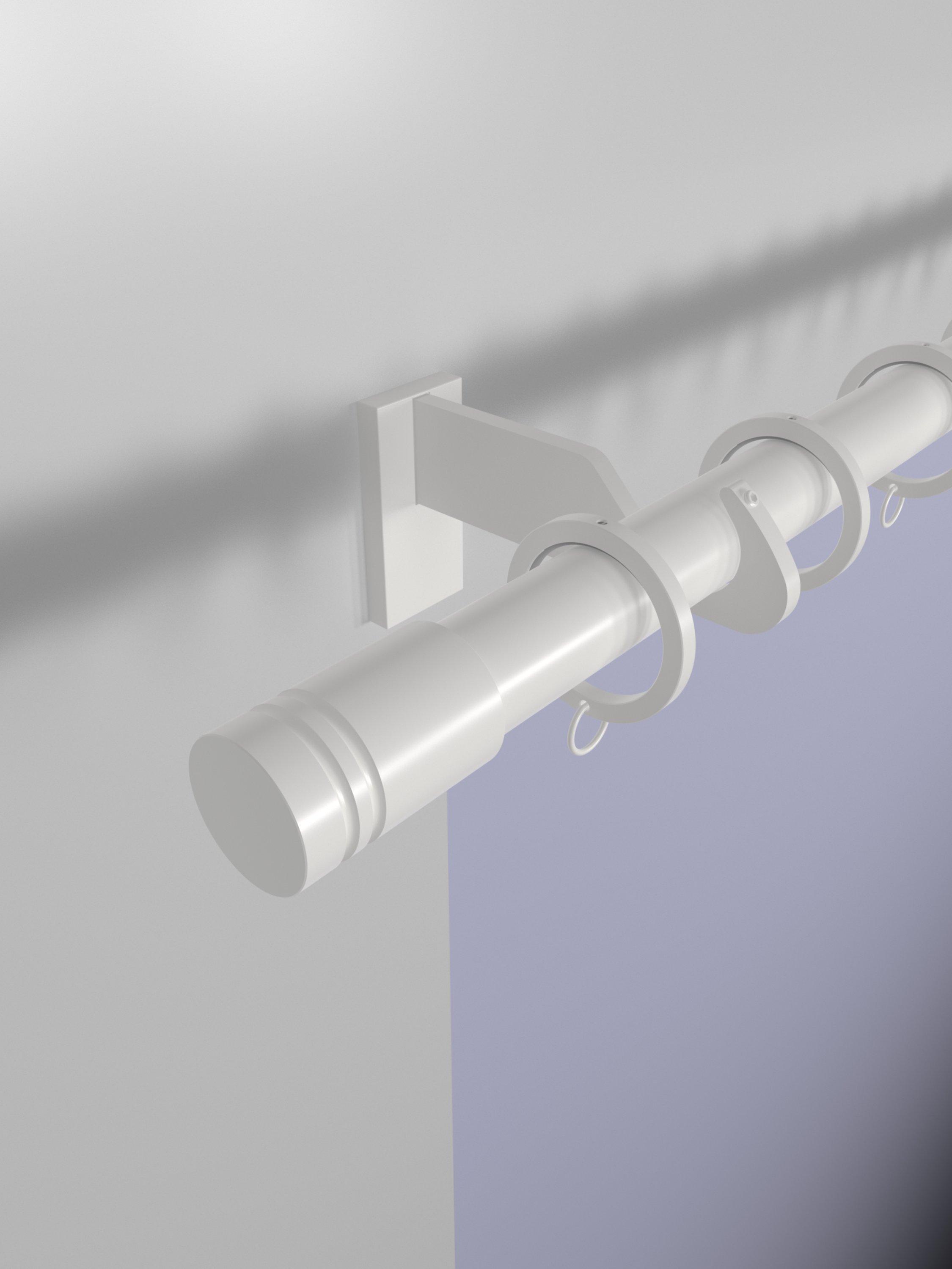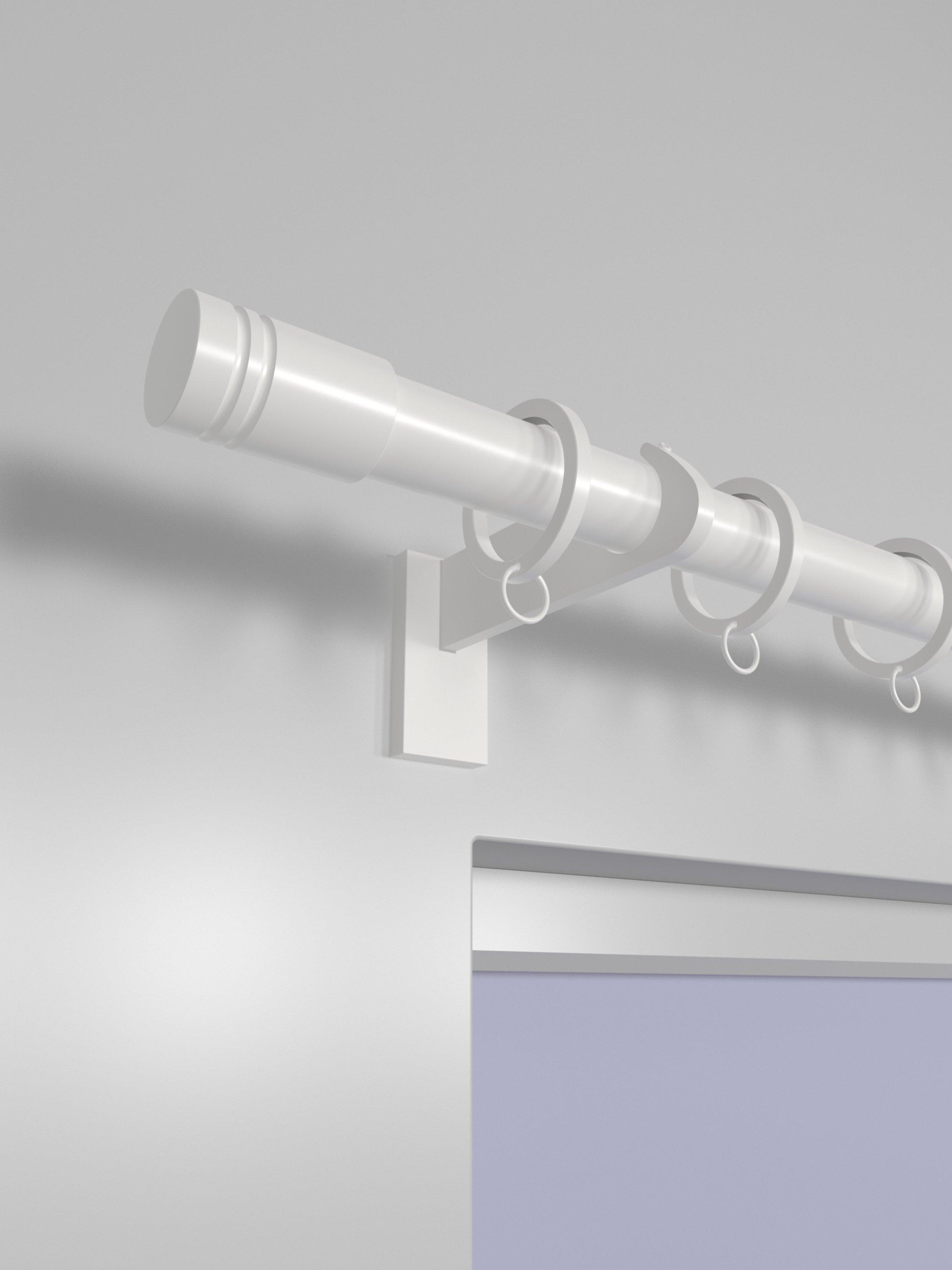 John LewisSelect Curtain Pole with Rings and Barrel Finial, Wall Fix, Dia.25mm, Satin Chalk