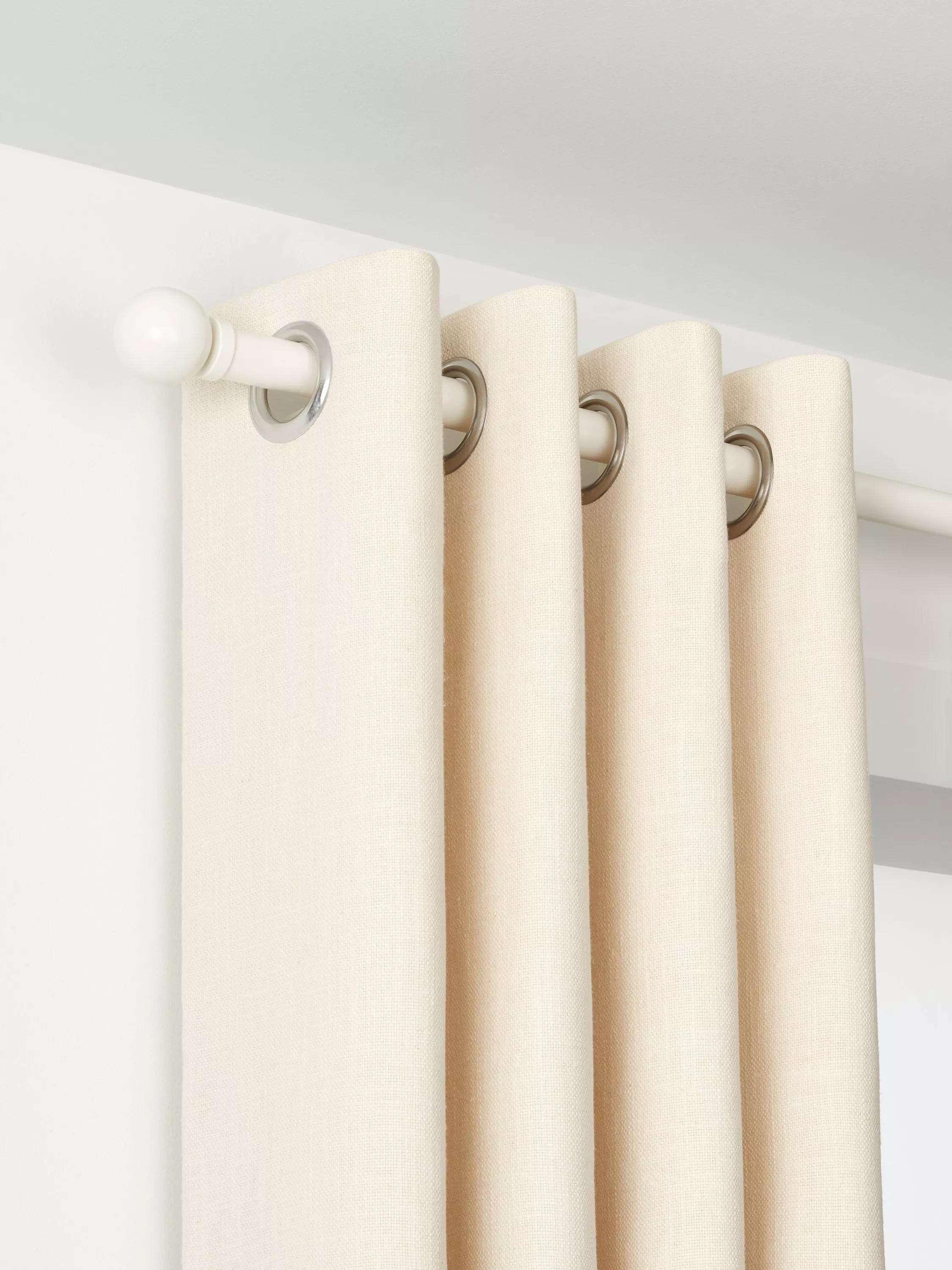 This particular version is our 25mm, wall-fix eyelet curtain pole with a ball finial. As the name suggests it's suitable for hanging eyelet curtains only.