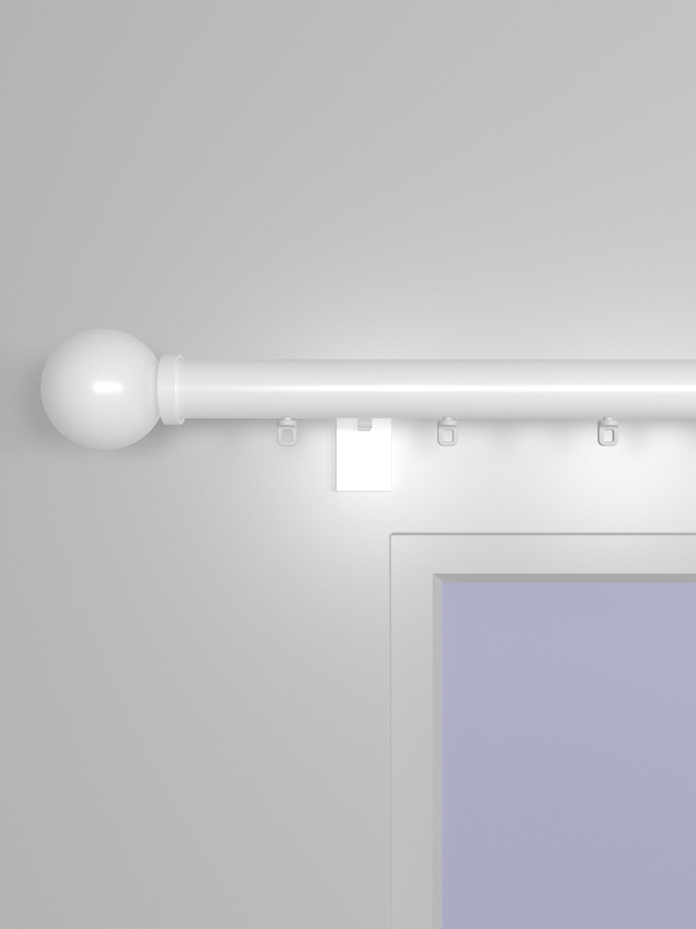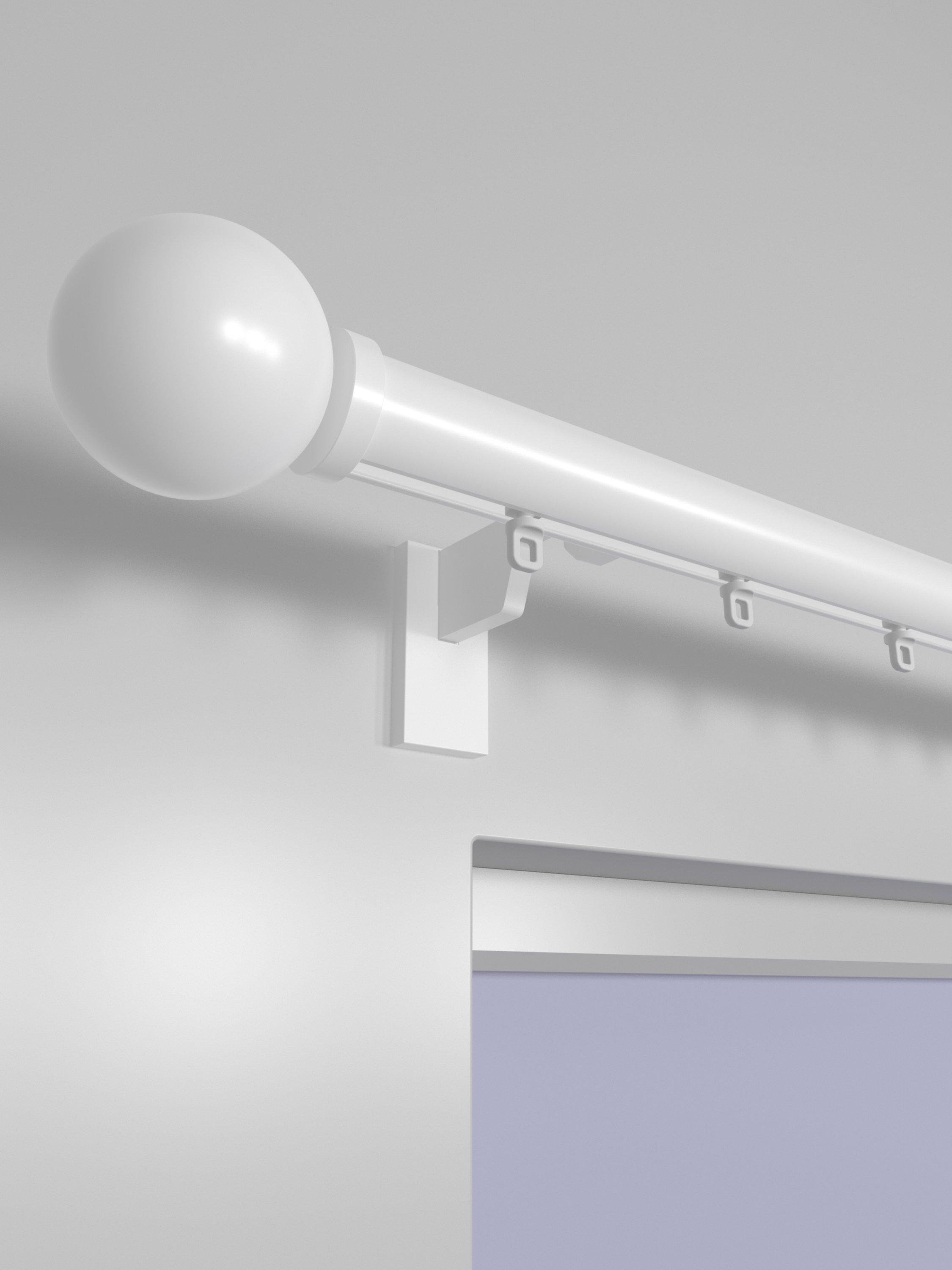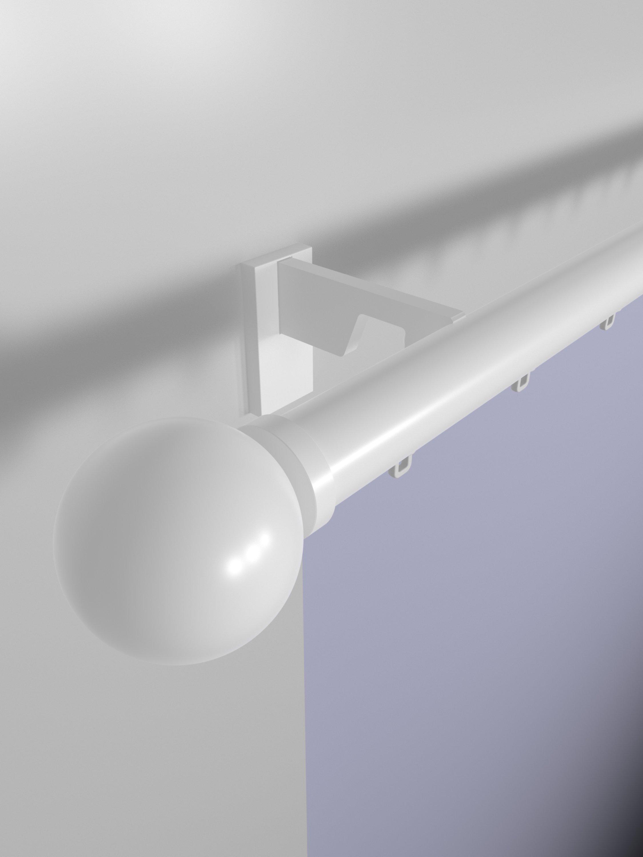 This particular version is our 30mm, wall-fix gliding curtain pole with a ball finial. It's suitable for hanging curtains with any pleated heading style. The gliders are designed to run smoothly in the pole channel, minimising noise as you open and close your curtains.