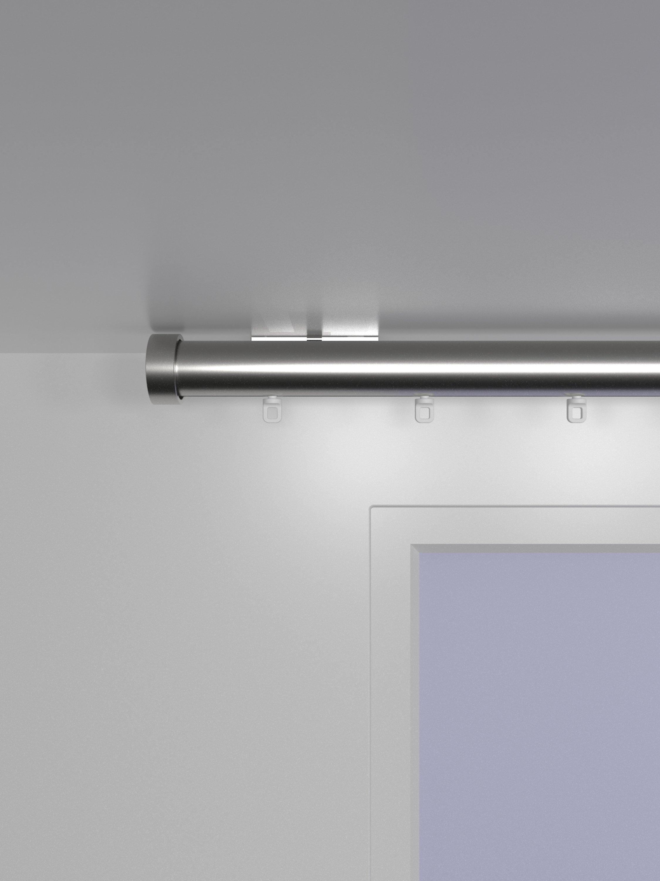 John LewisSelect Gliding Curtain Pole with Stud Finial, Ceiling Fix, Dia.30mm, Brushed Steel