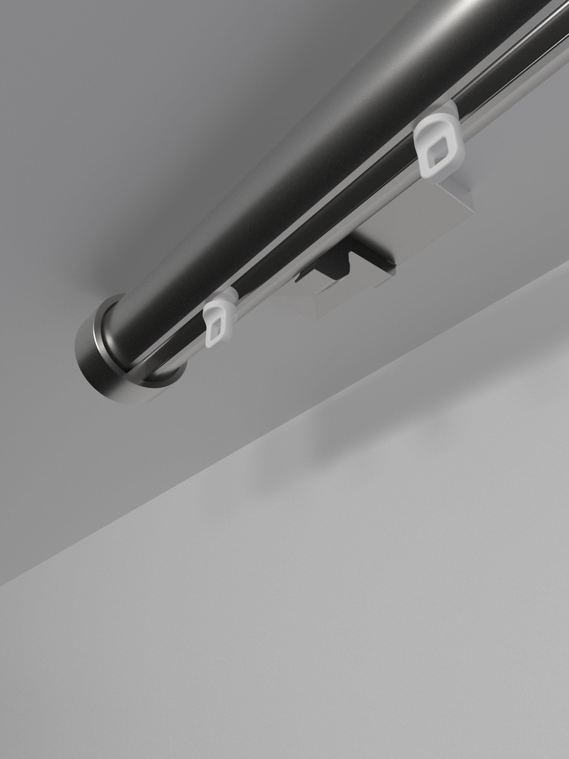 This particular version is our 30mm, ceiling-fix gliding curtain pole with a stud finial. It’s designed to be fitted flush to the ceiling and is suitable for hanging curtains with any pleated heading style. The gliders are designed to run smoothly in the pole channel, minimising noise as you open and close your curtains.