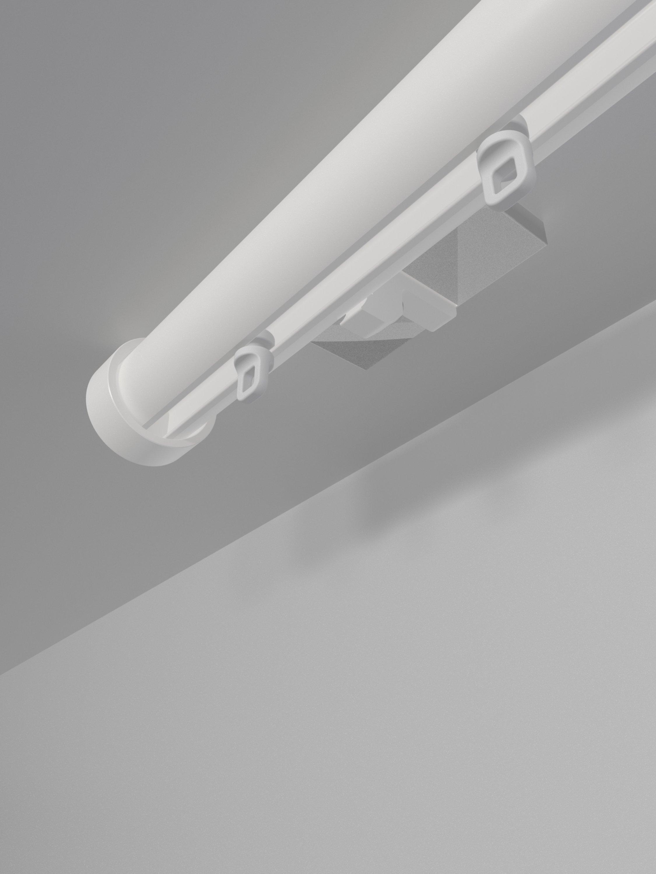 This particular version is our 30mm, ceiling-fix gliding curtain pole with a stud finial. It’s designed to be fitted flush to the ceiling and is suitable for hanging curtains with any pleated heading style. The gliders are designed to run smoothly in the pole channel, minimising noise as you open and close your curtains.