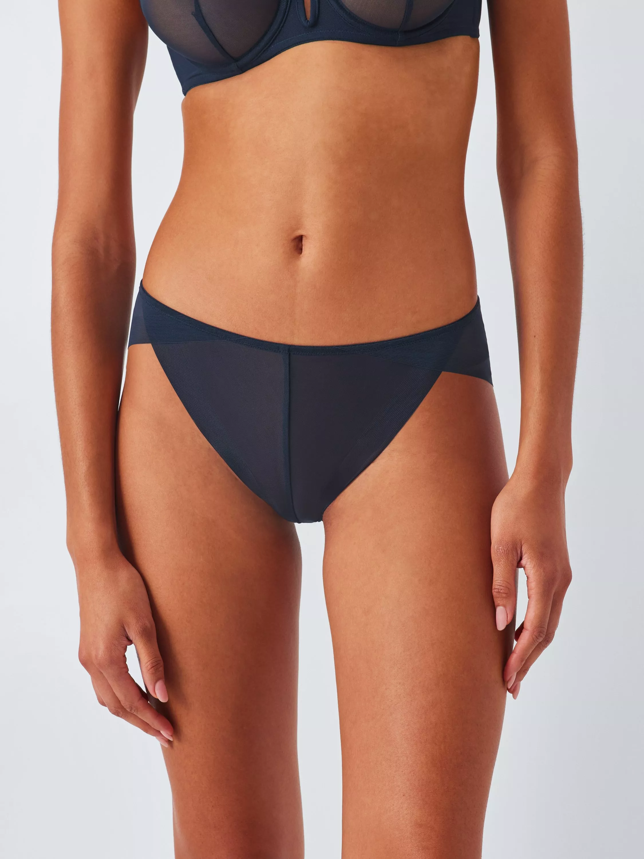 Brazilian-cut knickers with a high line to the hip, elongating the legs. Subtle banding wraps along the legline.