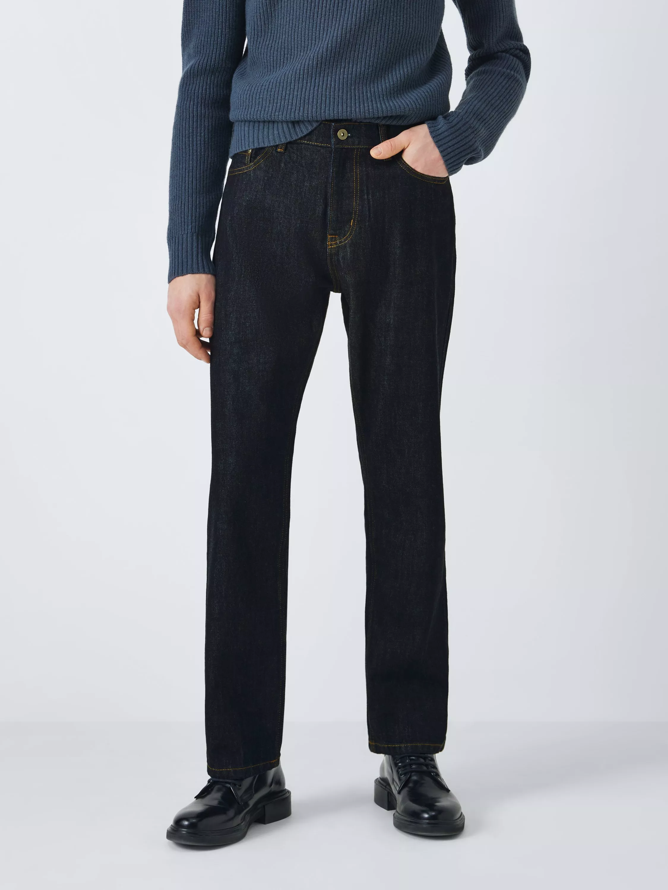 Regular fit jeans in easy-to-style selvedge denim with a clean, finished look. Styled with comfortable V-shaped belt loop details at the back and a zip fly fastening. A classic five-pocket design with two front pockets, two back pockets and a coin pocket.