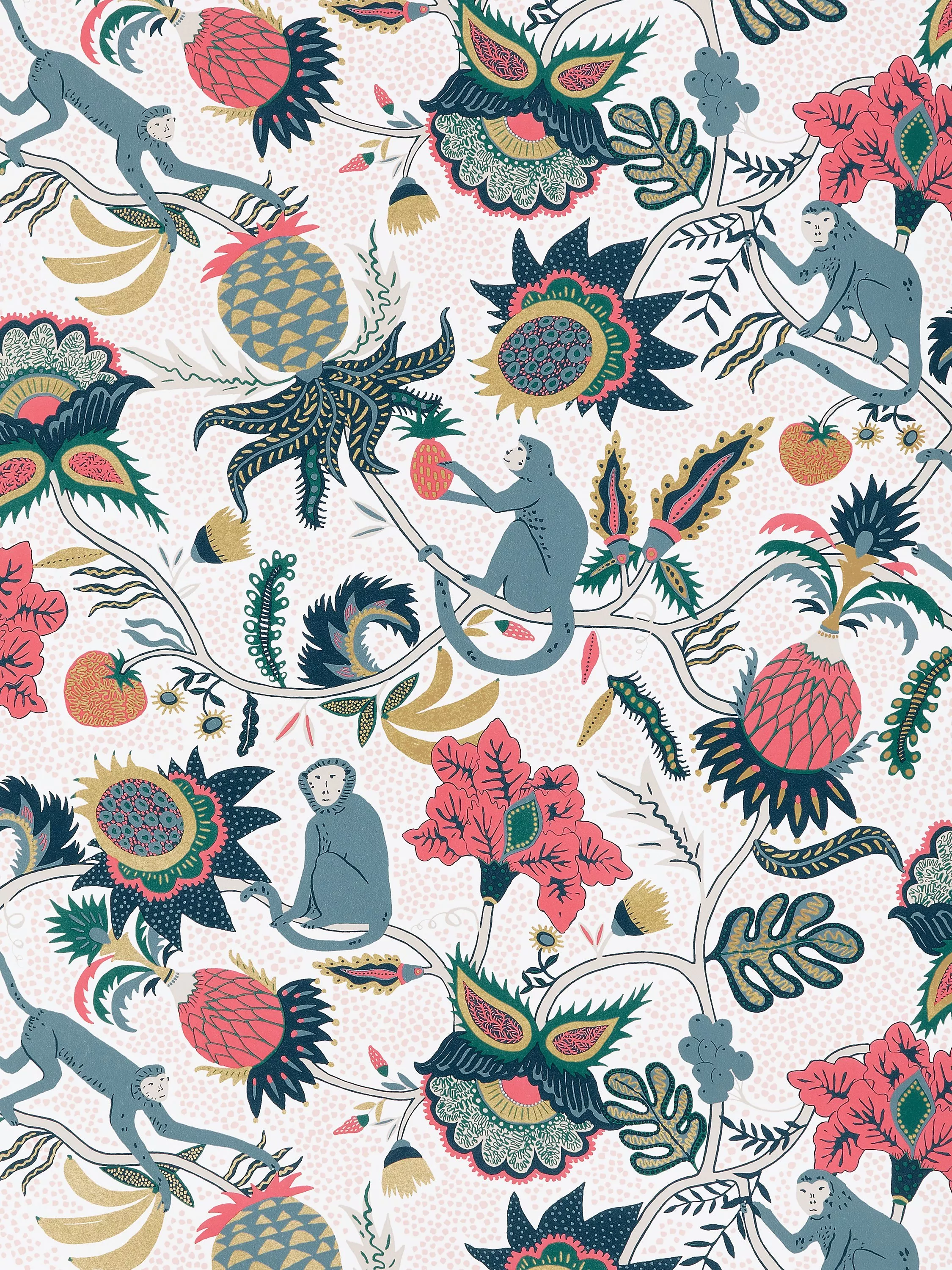 This eclectic design was inspired by Frida Kahlo's rich and colourful heritage and her many beloved monkey pets. This paper has beautiful metallic highlights within the print.