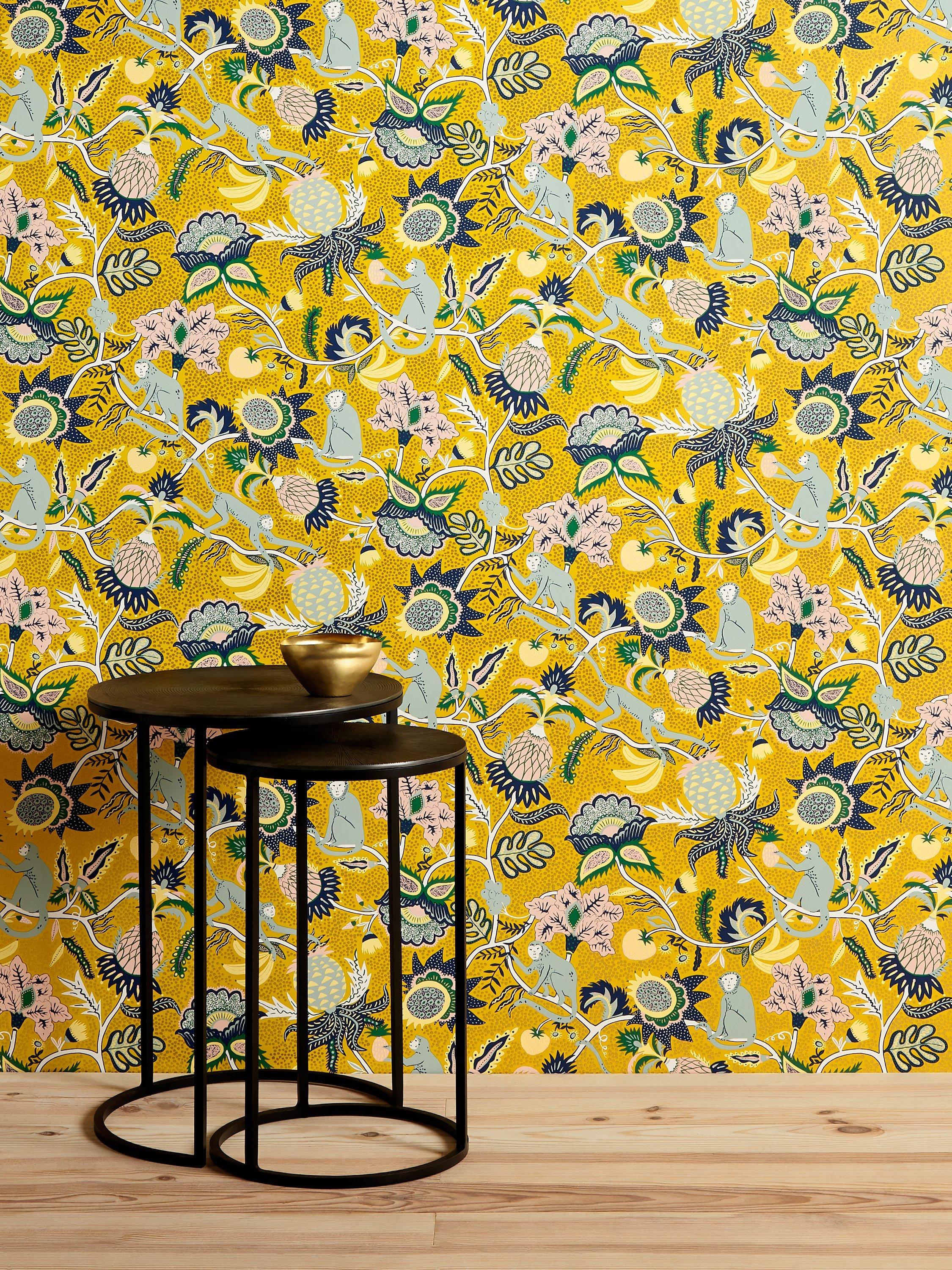 This eclectic design was inspired by Frida Kahlo's rich and colourful heritage and her many beloved monkey pets. This paper has beautiful metallic highlights within the print.