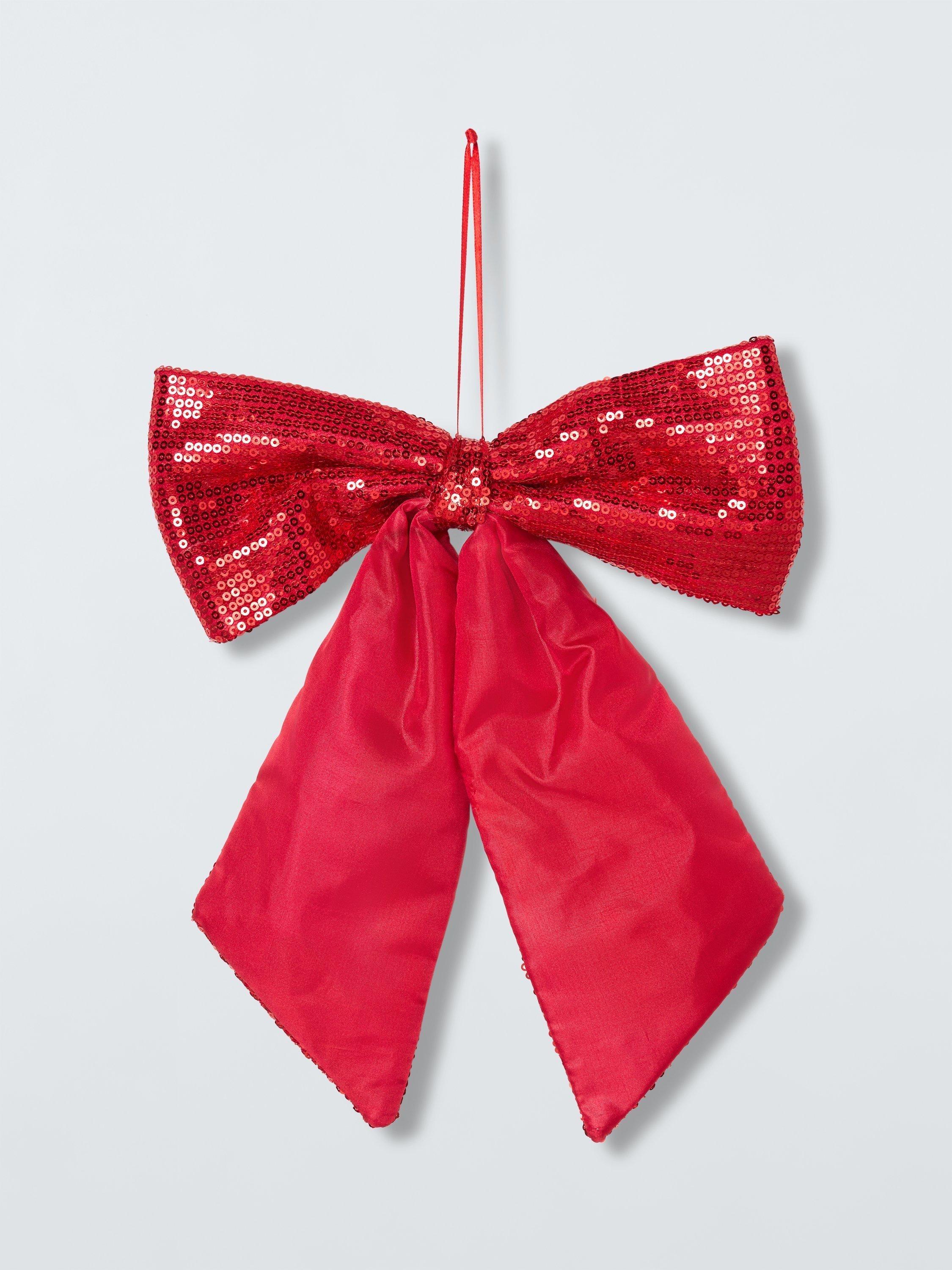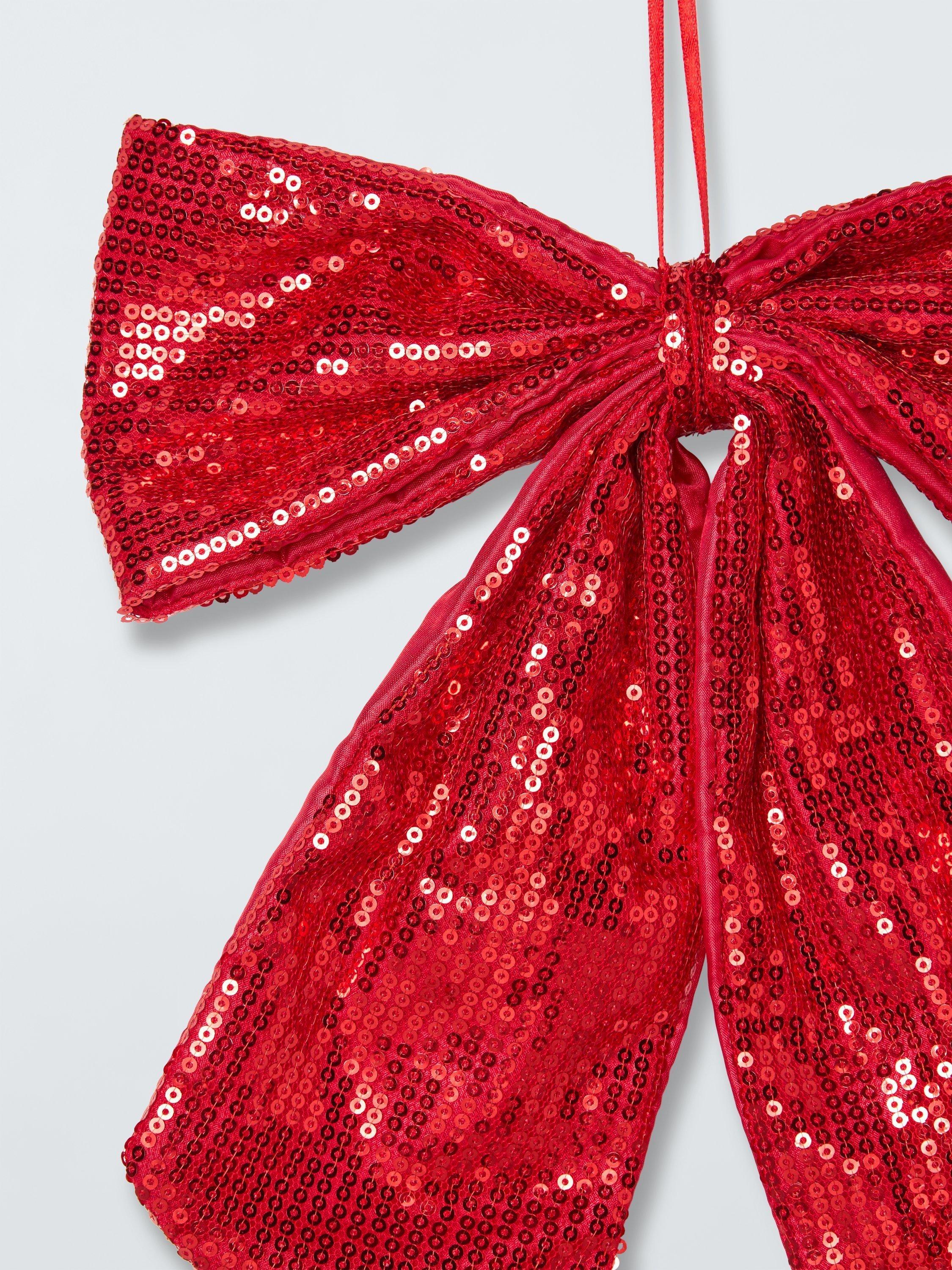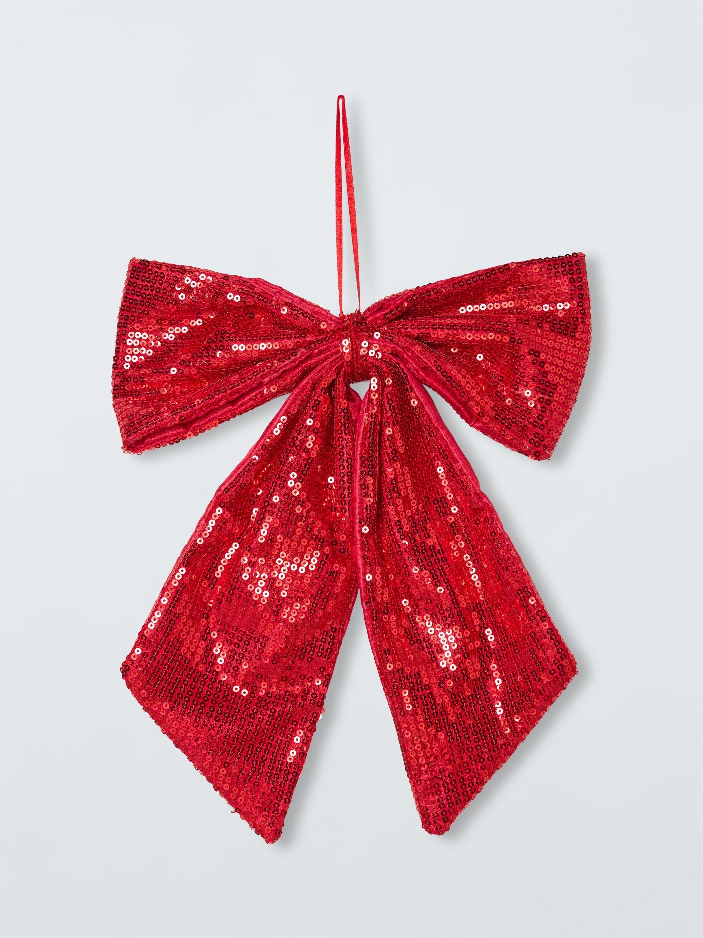 Use this red sequinned bow to trim trees, wreaths, garlands, swags, or even larger gifts.