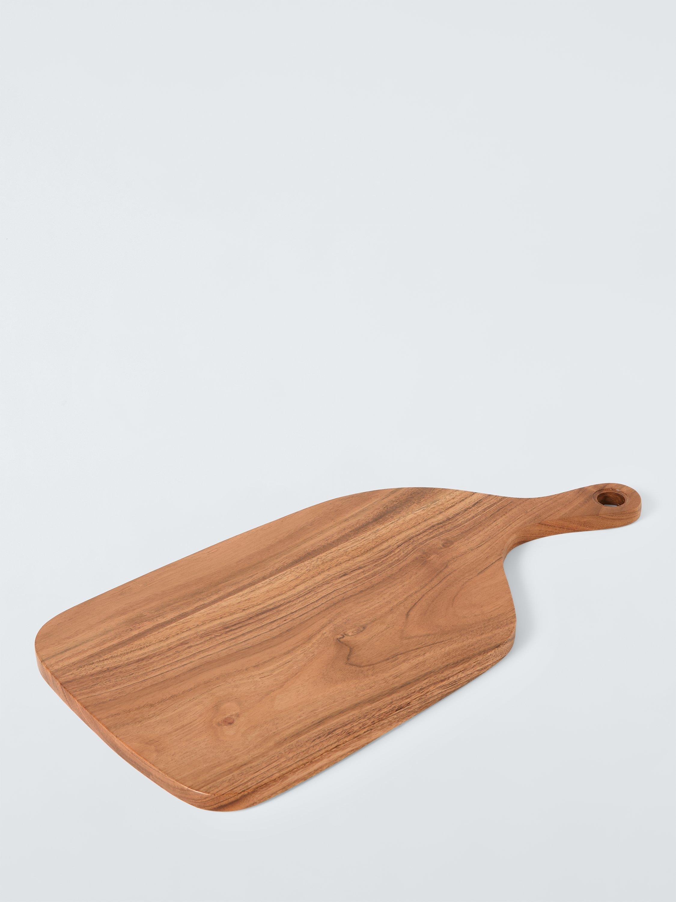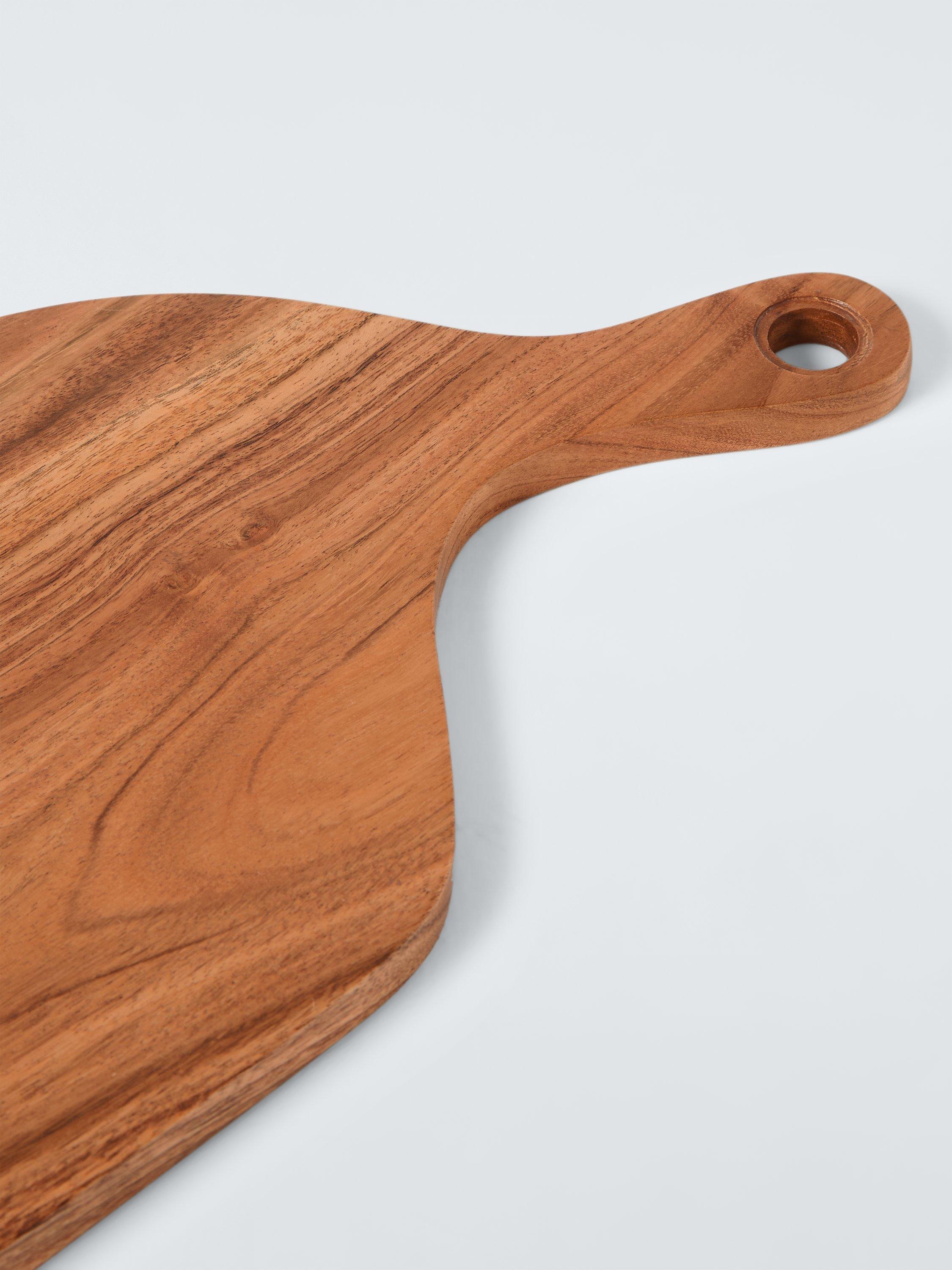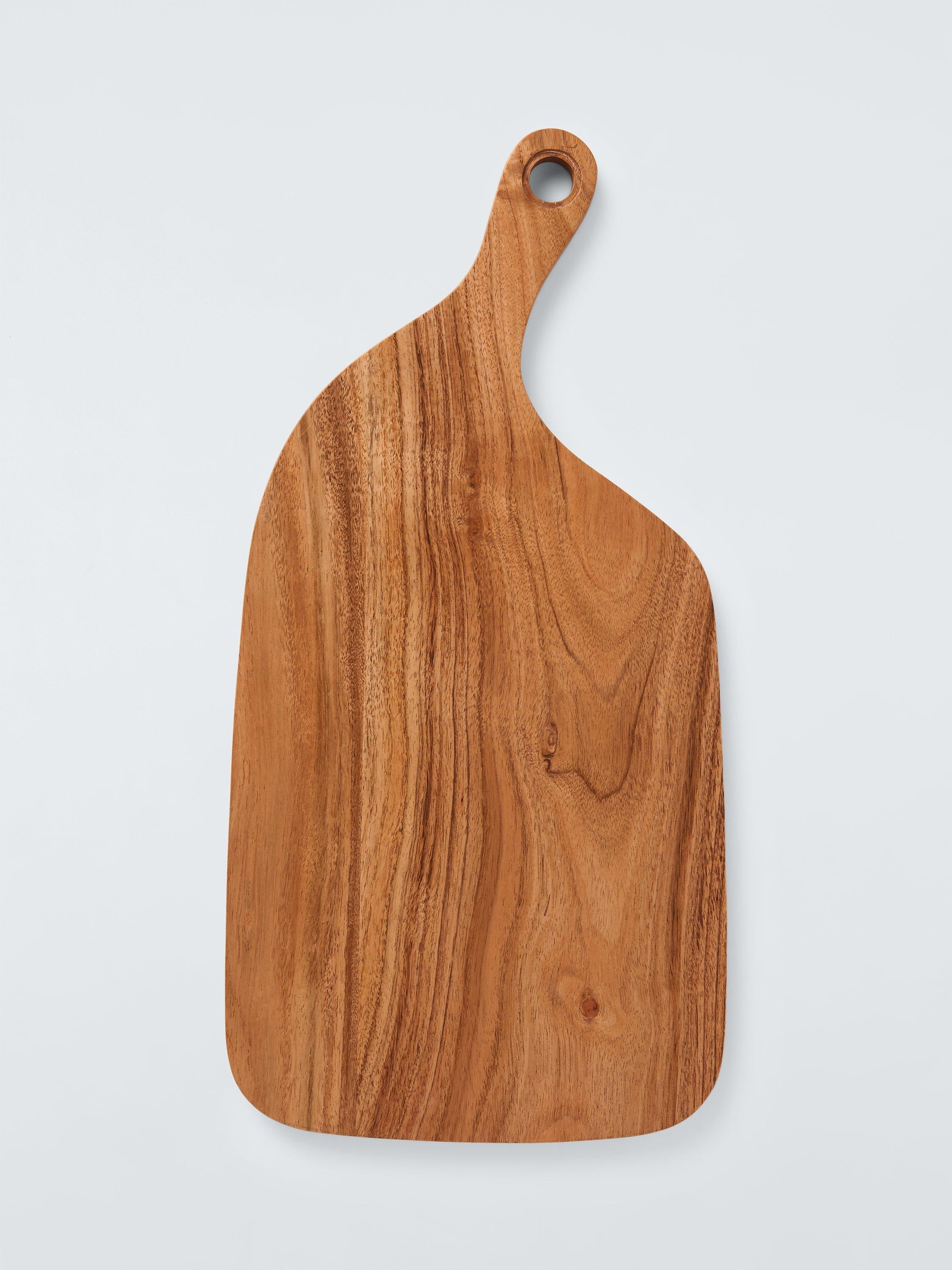 Serving board with an asymmetrical handle. Made of acacia wood, loved for its warm tones and natural patterns.