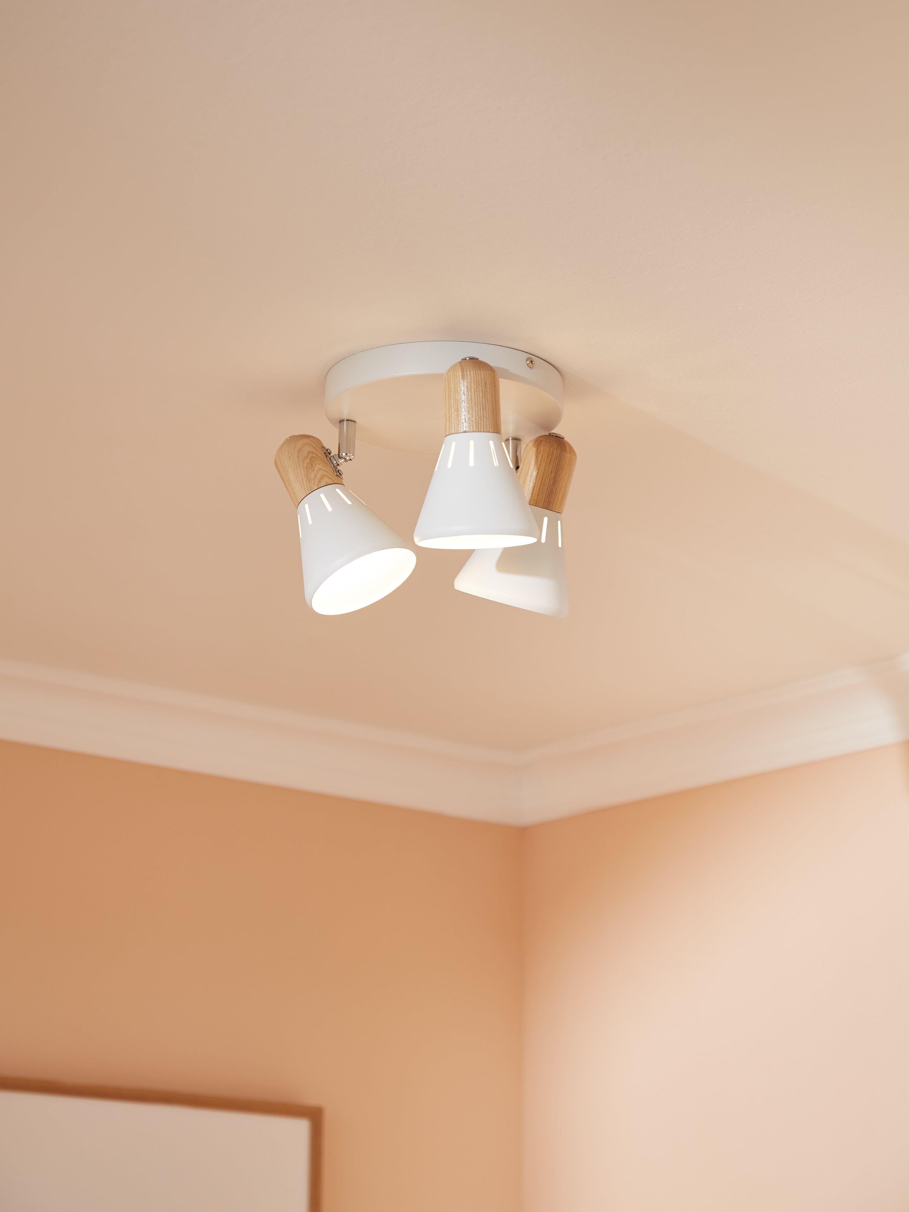 Designed to hold 3 SES LED bulbs for a brighter and more energy-efficient light output, this spotlight ceiling plate has a smart, contemporary feel. Made from metal with accents of light wood, its 3 spotlights can be adjusted to cast light exactly where required.