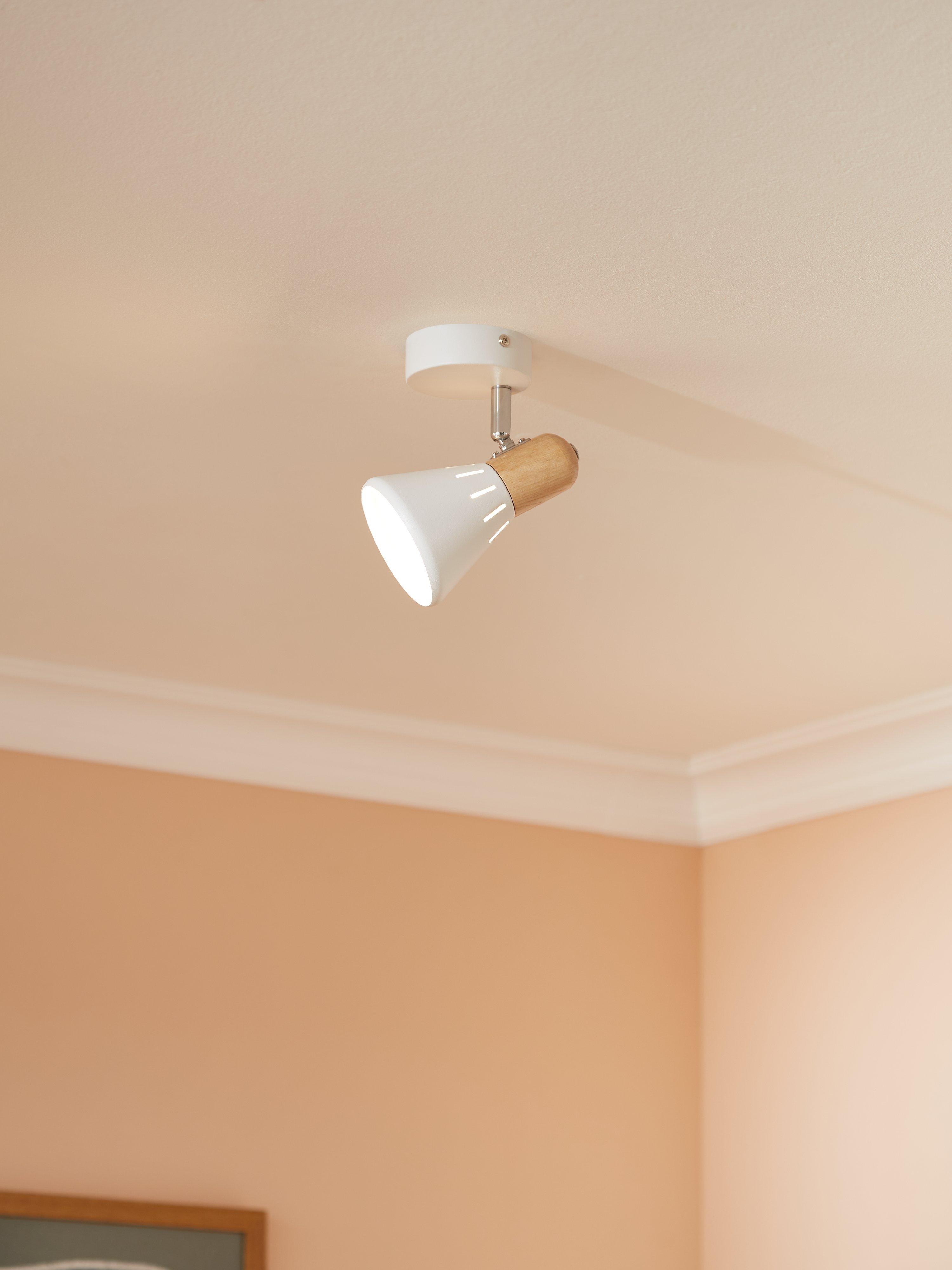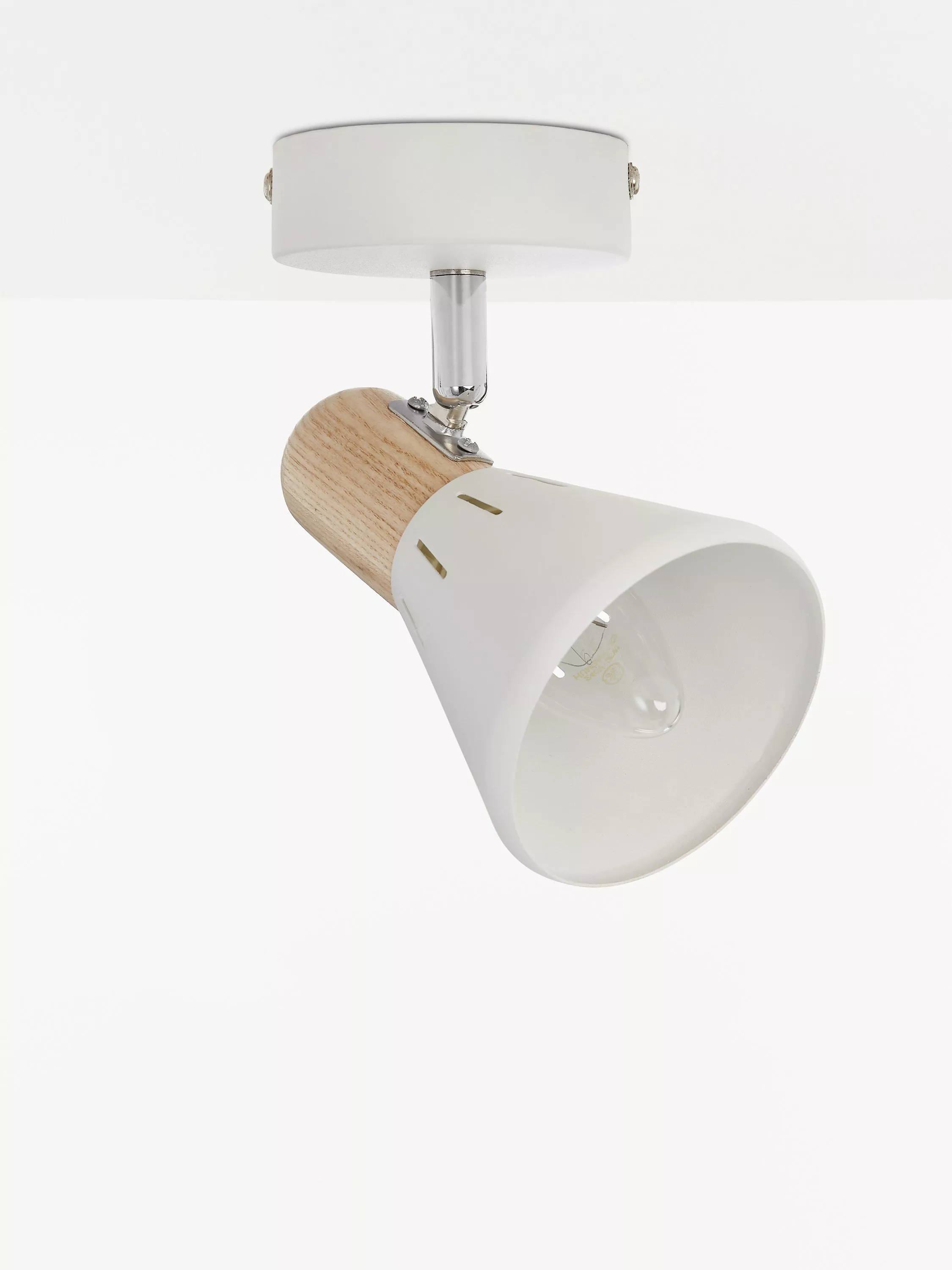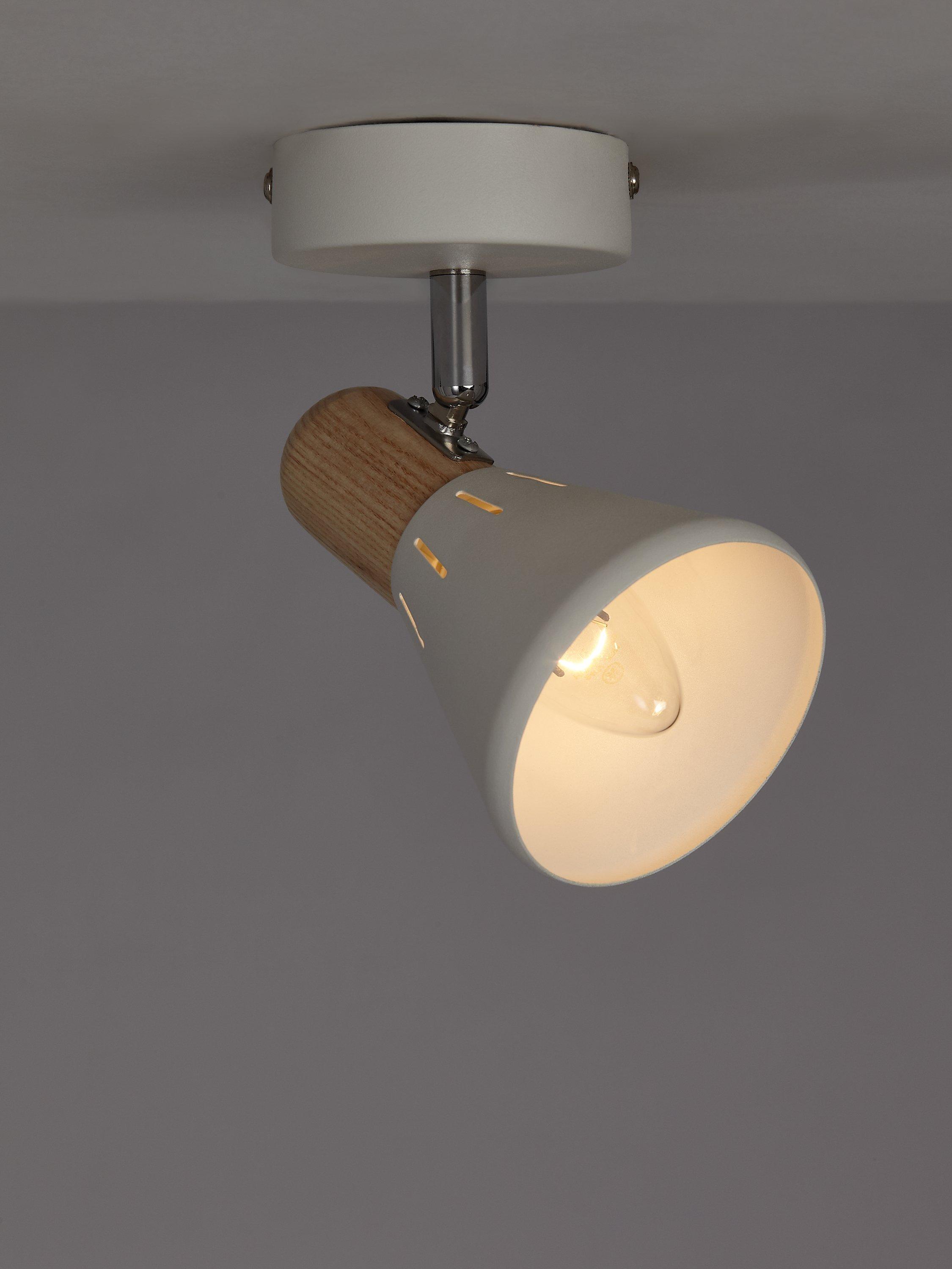 Designed to hold an SES LED bulb for a brighter and more energy-efficient light output, this single spotlight has a smart, contemporary feel. Made from metal with accents of light wood, it can be adjusted to cast light exactly where required.